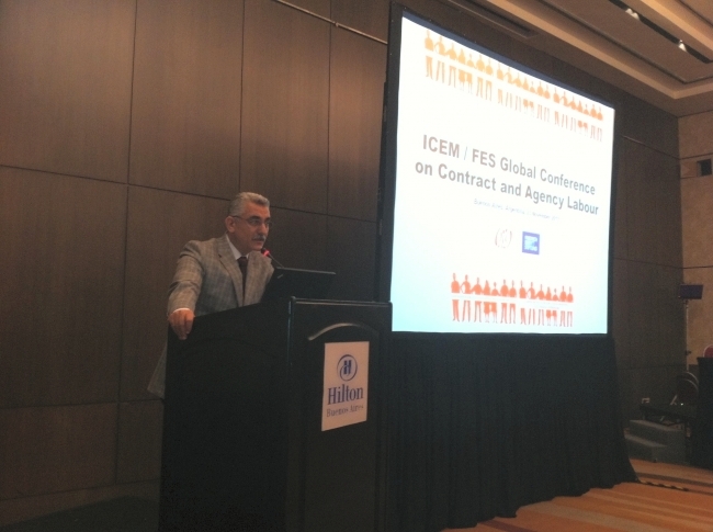 Dünyanın dört bir yanından gelen ICEM'e üye sendikaların delegeleri 24-26 Kasım arasında yapılan ICEM Kongresi öncesinde 23 Kasım 2011 tarihinde Buenos Aires'te uluslararası işçi hareketinin en büyük sorunlarından biri haline gelen taşeron işçiliği tartıştı.
