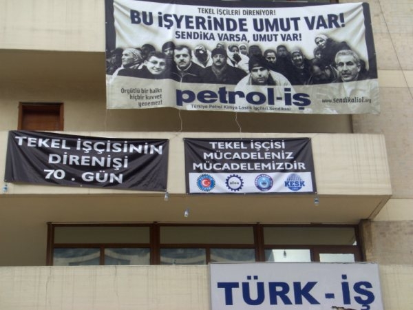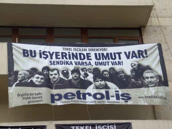 Tekel işçilerine dayanışma pankartı