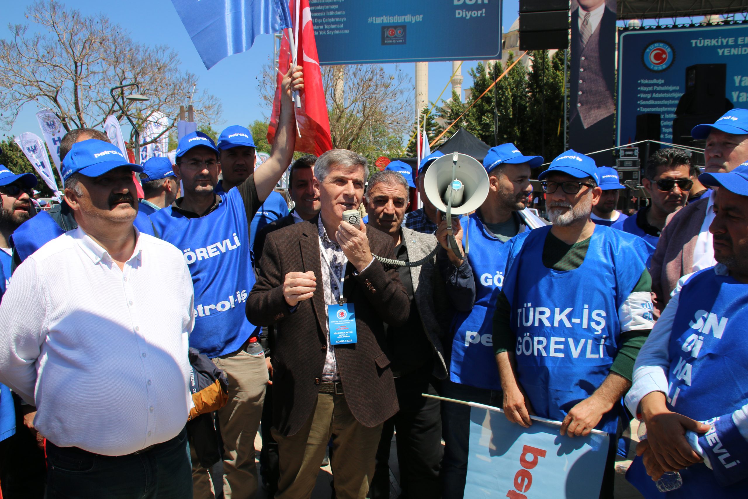 Ramazan Ağar’ın konuşmasının ardından kürsüye Türk-İş Genel Başkanı Ergün Atalay çıktı. Ergün Atalay, tüm emekçilerin 1 Mayıs Emek ve Dayanışma Günü’nü kutladı.