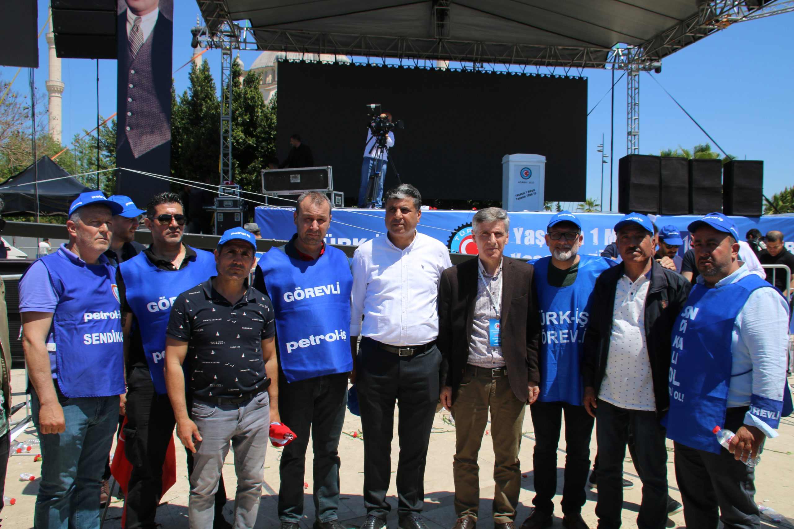 Sendikamız Genel Başkanı Süleymanı Akyüz, Genel Sekreteri Salih Akduman, Genel Mali Sekreteri Erhan Yakışan ile Genel Örgütlenme ve Eğitim Sekreteri Niyazi Recepkethüda da Adana’daki 1 Mayıs programına katıldılar.