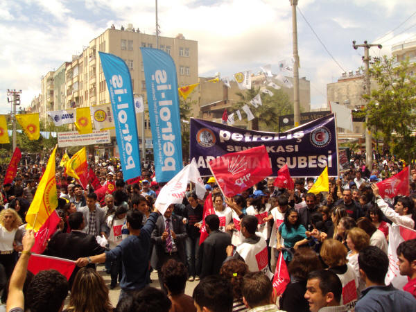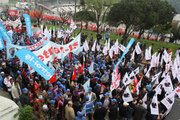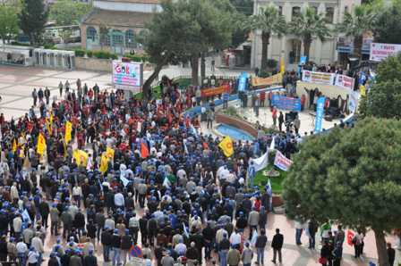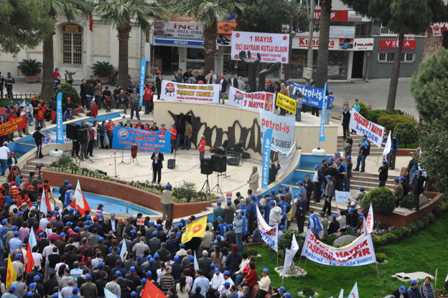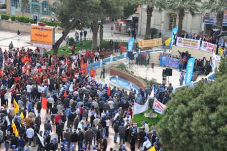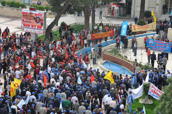 İş, ekmek, özgürlük, barış ve demokrasi, savaşsız, sömürüsüz bir dünya, insan onuruna yakışır bir yaşam için alanları dolduran kitleler alanlarda taleplerini haykırdılar.