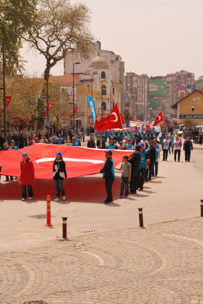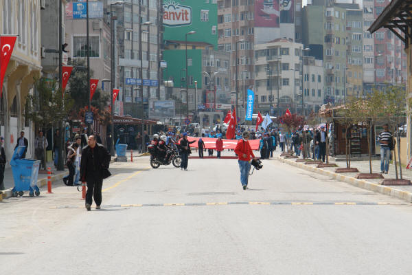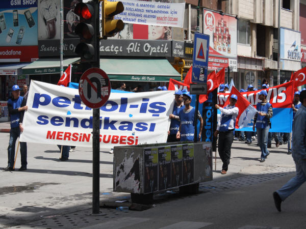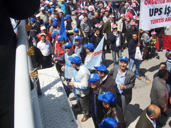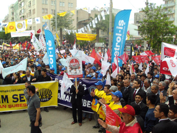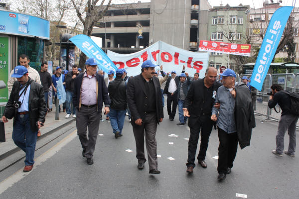 İstanbul’da Türk-İş’e bağlı sendikalar İnönü Stadyumu’nun önünde toplanarak Gümüşsuyu’ndan Taksim Meydanı’na doğru kortej oluştururken, DİSK, meslek odaları ve kadın kurtuluş hareketi mensupları Şişli Cumhuriyet Caddesi’nden, KESK Tarlabaşı Bulvarı’ndan, Hak-İş de Mete Caddesi’nden miting alanına yürüdü. 1 Mayıs Platformunun pankartındaki ortak slogan “ Emek, Barış, Demokrasi ve Özgürlük” tü. Dört büyük kortejde bunun dışında da ortak sloganlar vardı: “Yaşasın 1 Mayıs, Biji Yek Gulan, Kurtuluş Yok Tek Başına Ya Hep Beraber Ya Hiç Birimiz, İşçilerin Birliği Sermayeyi Yenecek, Yaşasın Halkların Kardeşliği, 1 Mayıs’ta 1 Mayıs Alanındayız.”
