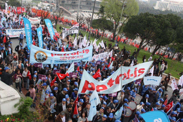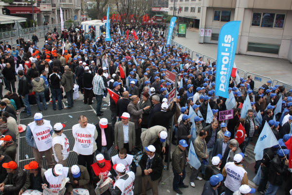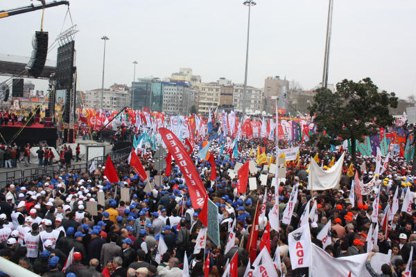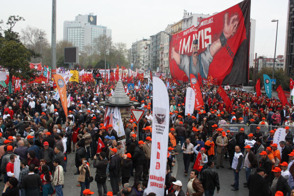 İstanbul’da, Türk-İş, DİSK, Hak-İş, Memur-Sen, KESK konfederasyonlarına bağlı sendikalara üye işçiler, TMMOB, TTB, TEB gibi meslek odalarına bağlı kuruluşlara üye meslek sahipleri, siyasi parti üyeleri, lise ve üniversite gençliği, kadınlar, işsizler, yoksullar adeta Taksim Meydanı’na aktı. Alana sığmayan kitlelerin büyük bir bölümü kutlamalara Taksim Meydanı’na çıkan caddelerde katıldılar.
