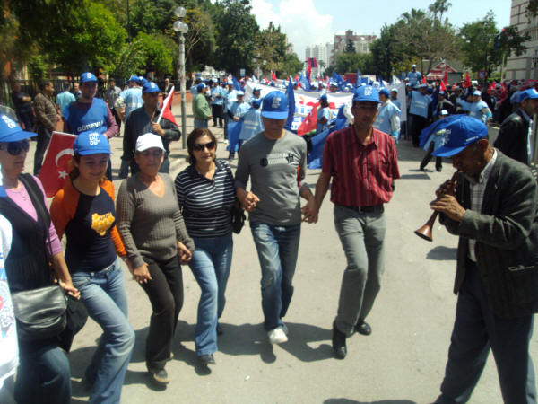 “Biz, Arap halklarının demokrasi mücadelesini destekliyor, onlara yapılan tüm anti demokratik müdahaleleri kınıyoruz. 1 Mayıs Birlik, Mücadele ve Dayanışma Günümüz Kutlu Olsun.”