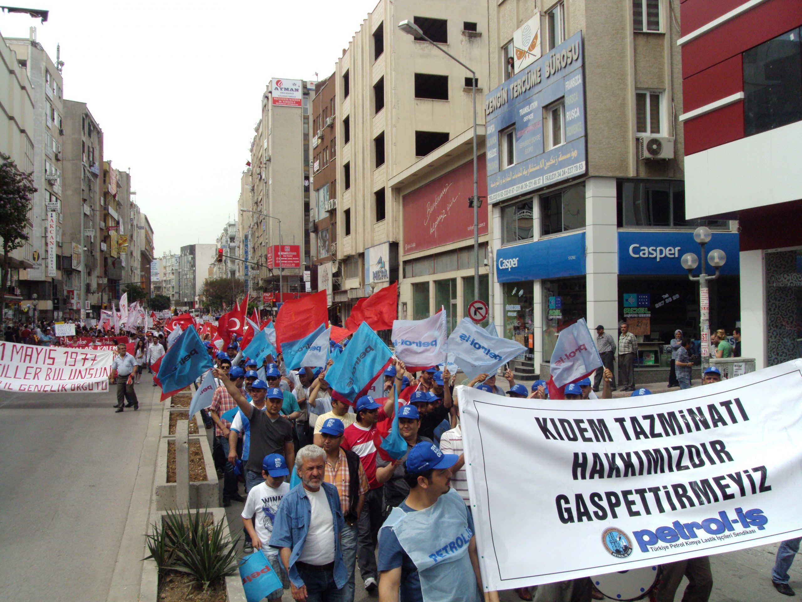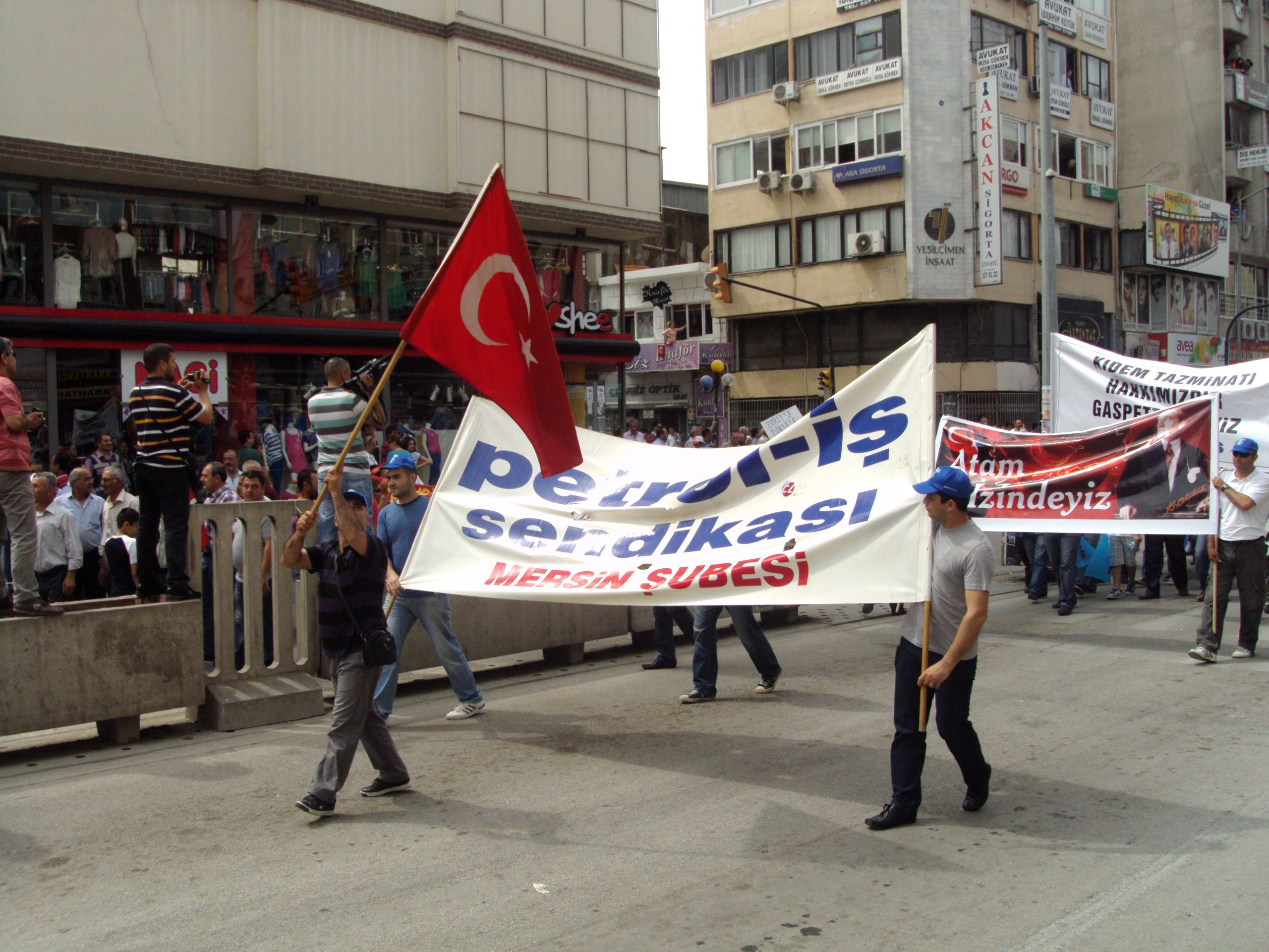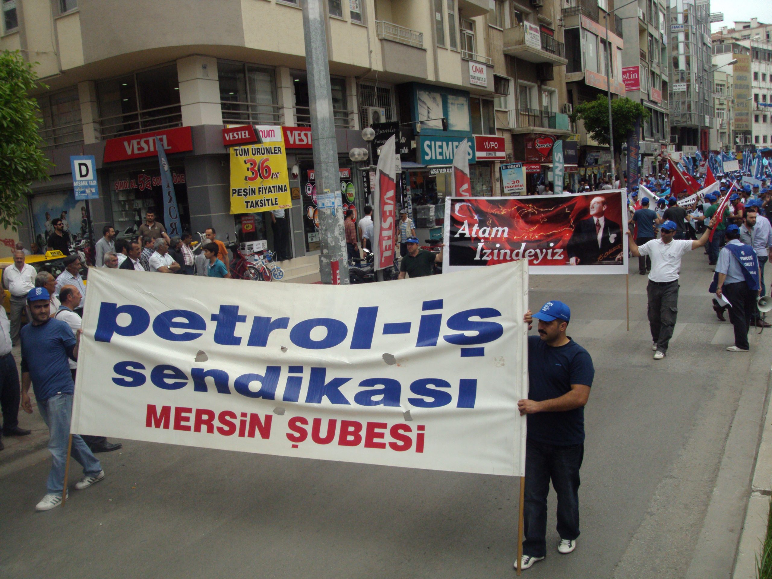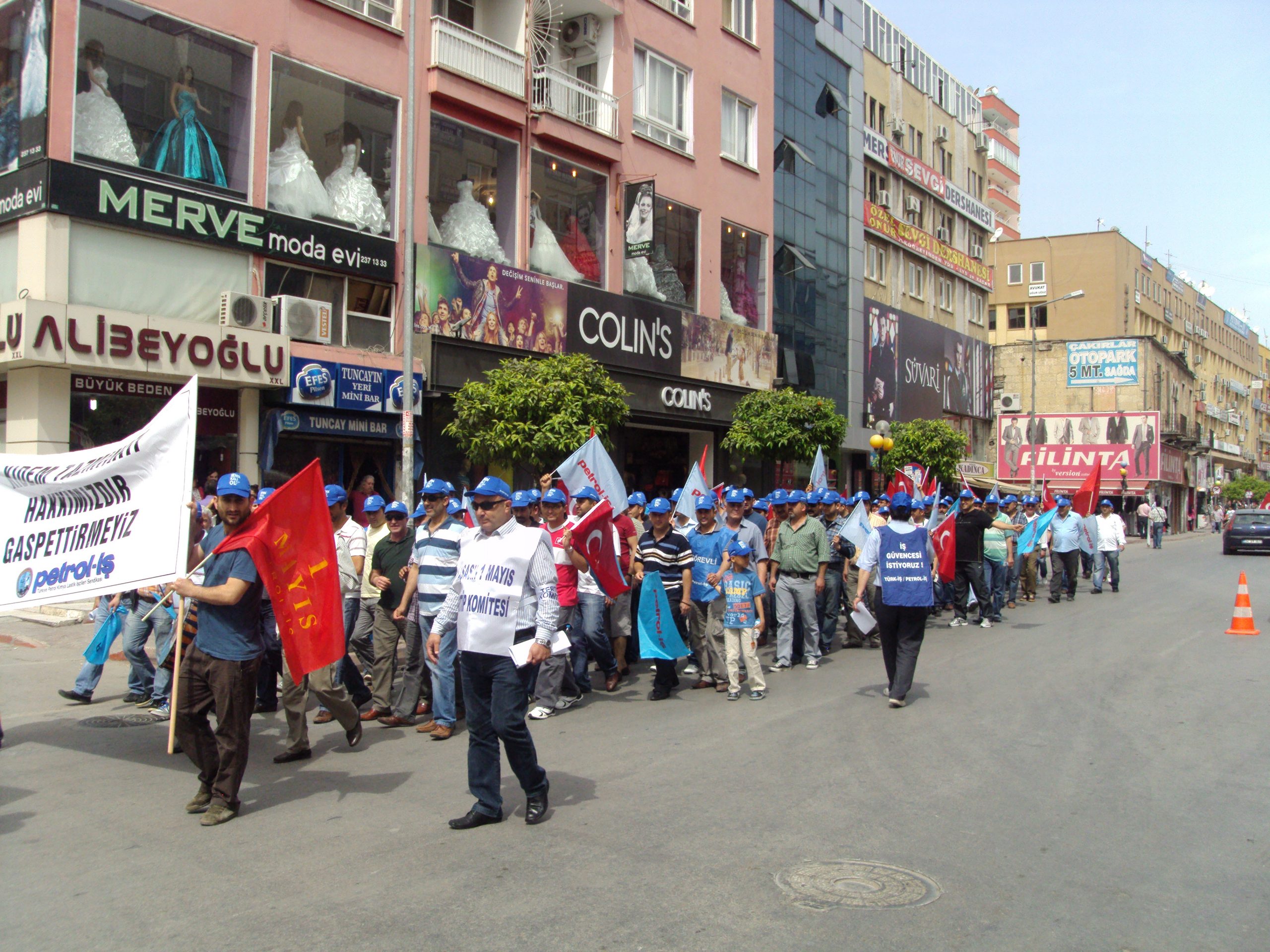 Dünya işçilerinin Birlik Mücadele ve Dayanışma Günü 1 Mayıs Mersin’de de sendika, meslek odası, siyasi parti, sivil toplum kuruluşları ve gençlik örgütlerinin, binlerce işçinin, emekçinin, işsizin yoksulun, öğrencinin katılımıyla kutlandı. Tertip Komitesi’nde Şube Başkanımız Yunus Murat Marangoz’un da yer aldığı 1 Mayıs kutlamaları bayram havasında geçti. Petrol-İş üyeleri 1 Mayıs’a bu yıl daha geniş katılım sağladı.