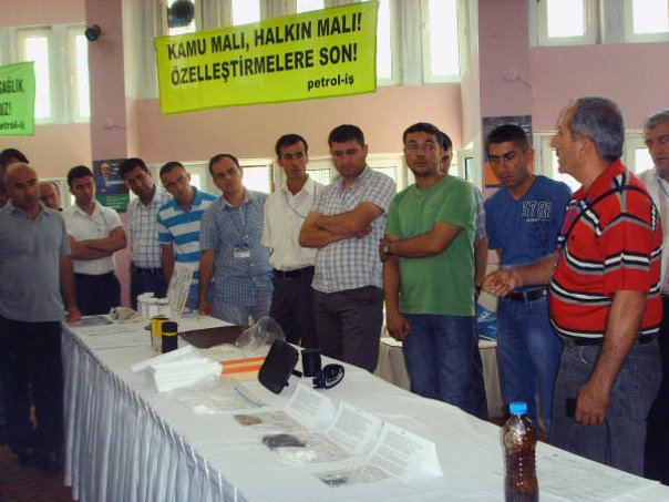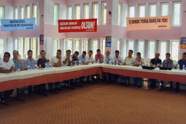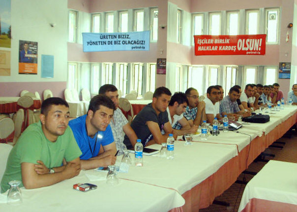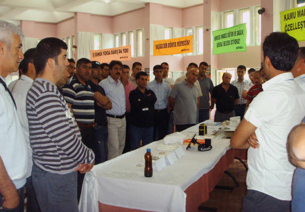 Aktif Üye Eğitimleri’nin 3. Kademesini bitirdik. Daha önce ödev yaparak son aşamaya katılmaya hak kazanan üyelerimiz sertifikalarını aldılar. Üçüncü kademe eğitimler için bölge değiştirmenin daha iyi olacağını belirten üyelerimizin taleplerine uygun olarak, eğitim yerini değiştirdik ve daha mütevazi bir otele sahip olan Şile’de yaptık. Üyelerimiz 3. Kademe eğitime iki grup halinde davet edildiler. Toplam 103 üyemizin katıldığı eğitimlerimiz 4-5 Haziran ile 8-9 Haziran 2010 tarihlerinde yapıldı. Eğitim servisimizin aktardığı teorik konuların yanı sıra, bu kez genel merkez yöneticilerimiz de arkadaşlarımızla buluştular. Genel Başkan Mustafa Öztaşkın ile Genel Örgütlenme ve Eğitim Sekreteri Nimetullah Sözen sertifika alacak olan arkadaşlarımızın siyasete, örgüte ve işyerlerine dair sorularını cevapladılar. Böylece gelecek yıllarda örgütün her kademesinde aktif birer üye olarak mücadele yürütmelerini umut ettiğimiz üyelerimiz Sendikanın en üst kademesinde yer alan yöneticileriyle birebir görüşme ve tartışma olanağı buldular. Üçüncü kademe eğitimlerimizde bir de kendi açımızdan ilk kez yaptığımız ve geleneksel hale getirmeyi hedeflediğimiz bir etkinliğimiz daha oldu: İkinci kademe eğitime gelenlerin hepsine sendika uzmanı arkadaşımız Zafer Aydın tarafından yazılmış “Kanunsuz Bir Grevin Öyküsü Kavel 1963” adlı kitabını hediye etmiştik. Bu kademede Zafer dostumuz bizi kırmadı ve bizzat gelerek kitabı anlattı, Kavel direnişinin önemini aktardı ve kitabı okuyanlarla tartıştı. Okudukları kitabın yazarı ile tanışma olanağı bulmaları üyelerimizi de çok ilgilendirdi ve ufuklarının açılmasına katkıda bulundu. Yine ikinci kademe biterken talep ettiğimiz “ürettiğiniz bir mamul maddeyi getiriniz” çağrımıza pek çok arkadaşımızın uymuş olması, zengin bir Petrol-İş’in Ürettikleri sergisini açabilmemizi sağladı. Kürsüye çıkıp iki cümle okumaktan bile çekinen arkadaşlarımızın, kendi ustalık alanlarını aktarırkenki özgüvenlerini, coşkularını ve heyecanlarını görmek de bizleri çok sevindirdi. Umut ediyoruz ki, bundan sonra da sertifika alan tüm arkadaşlarımızla gelecekte de değişik vesilelerle buluşma imkânı buluruz.