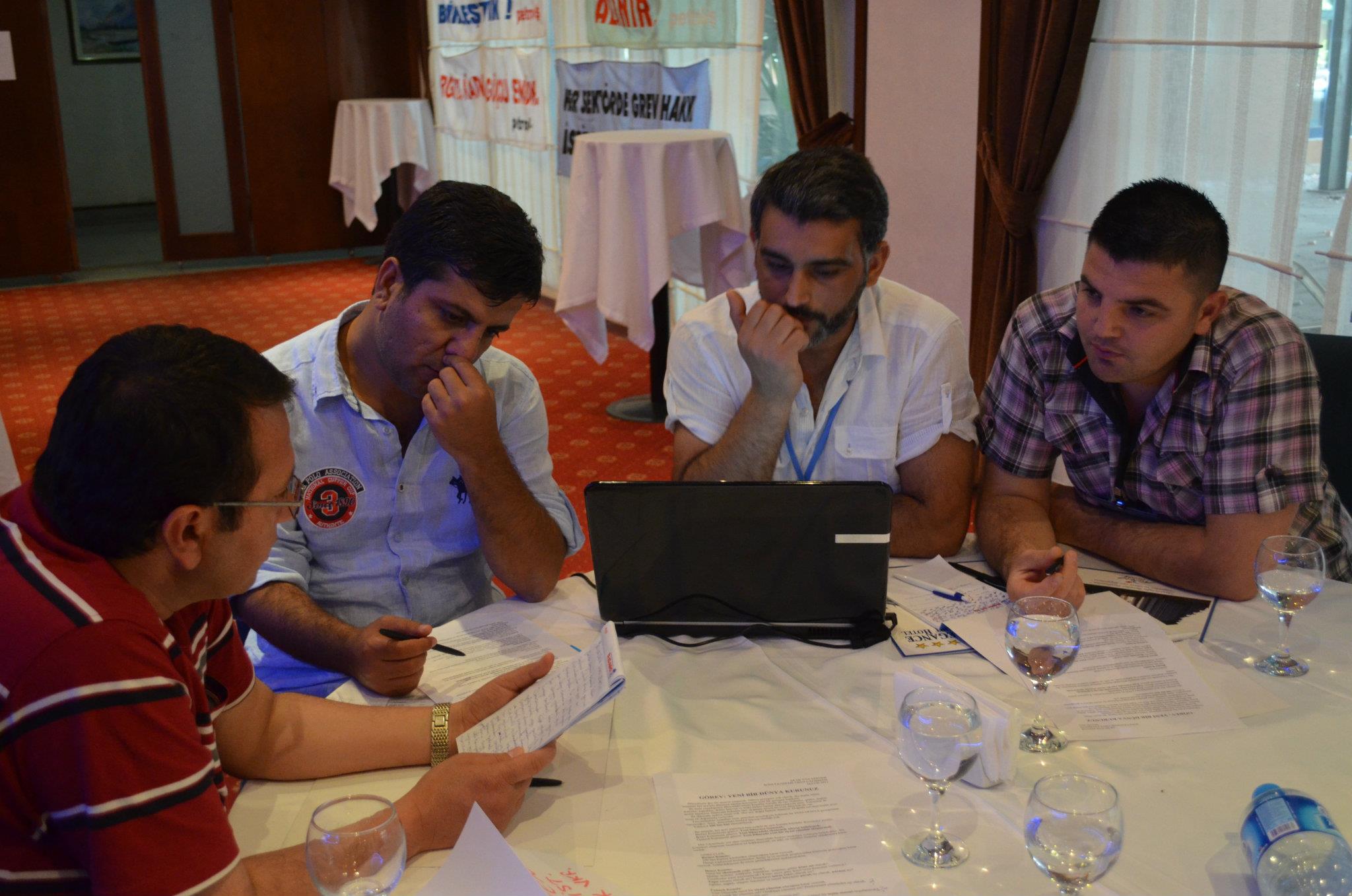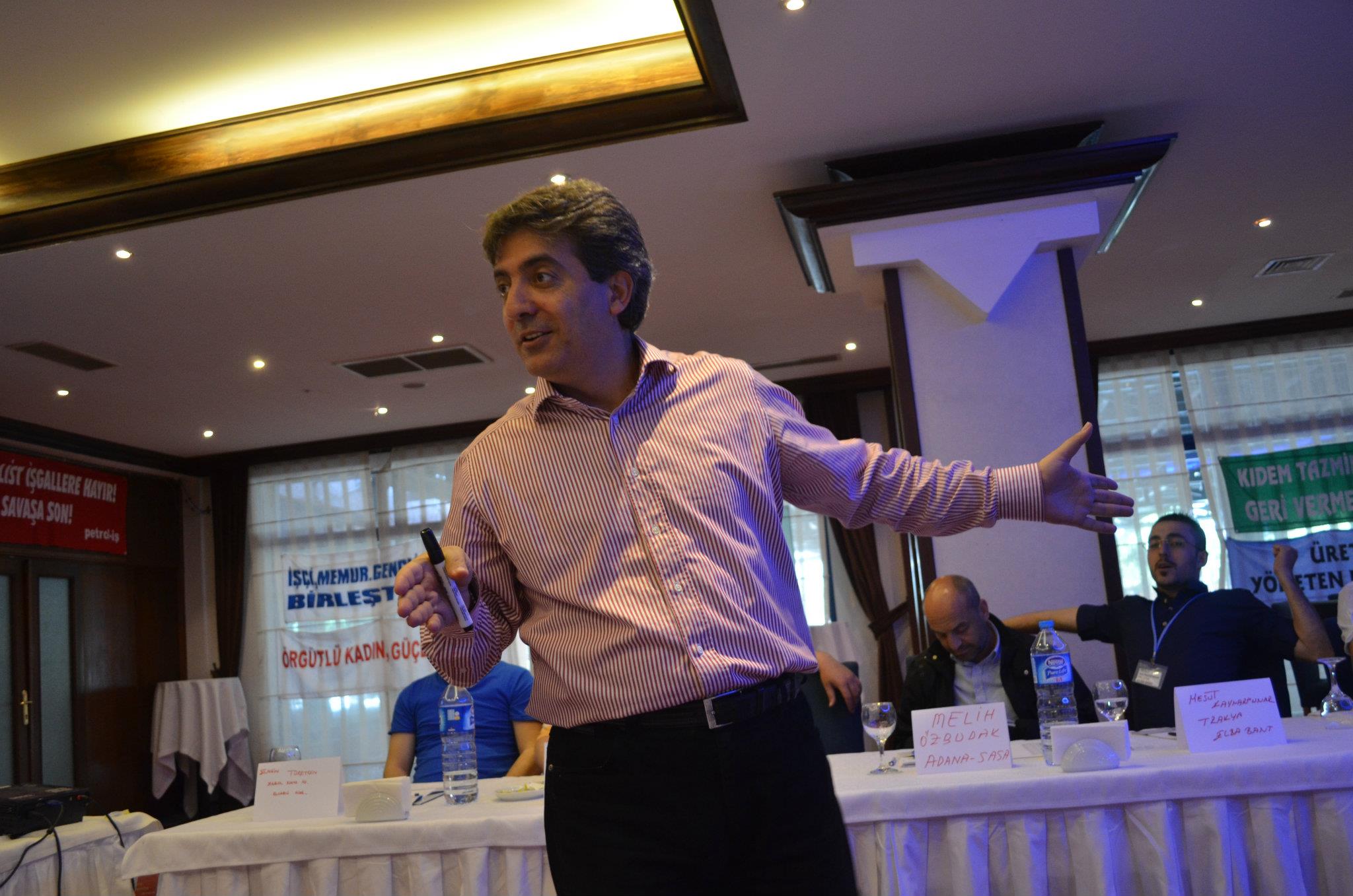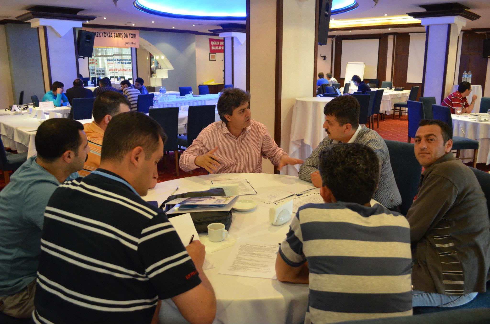 Katılımcıların, kendi ilgi alanlarına göre ihtiyaç duyacakları bilgileri nasıl edineceklerini öğrendikleri Aktif Üye Eğitiminin son kademesinde üyelerimiz Merkez Yönetim Kurulu ile de birlikte oldular. İki gün süren programın yarım günü MYK ile karşılıklı soru cevaplara ayrıldı. Üyelerimiz, sertifika öncesinde akıllarına takılan tüm soruları serbestçe sorma imkânı buldular. Türk-İş’in mevcut durumundan Hükümet uygulamalarına, kıdem tazminatından ağır işçilik hükümlerine varıncaya kadar her türden soruyu doğrudan muhataplarına iletebildiler.