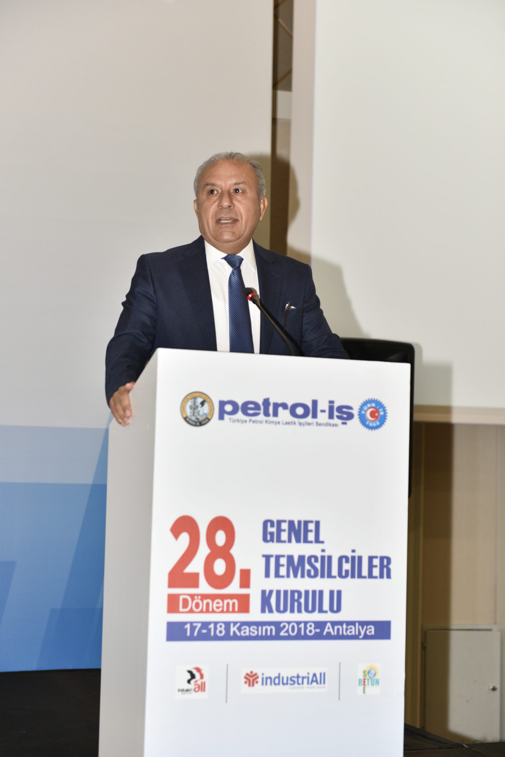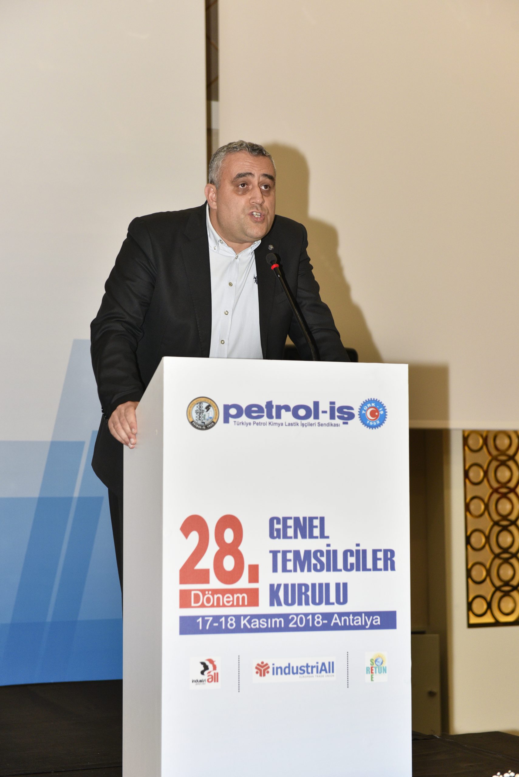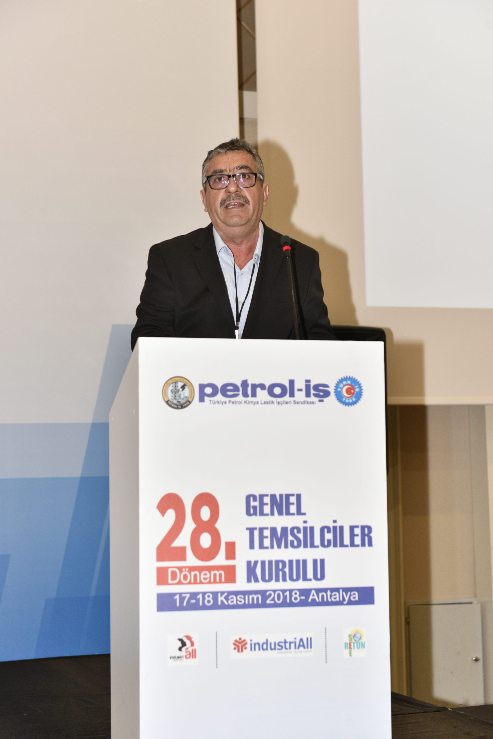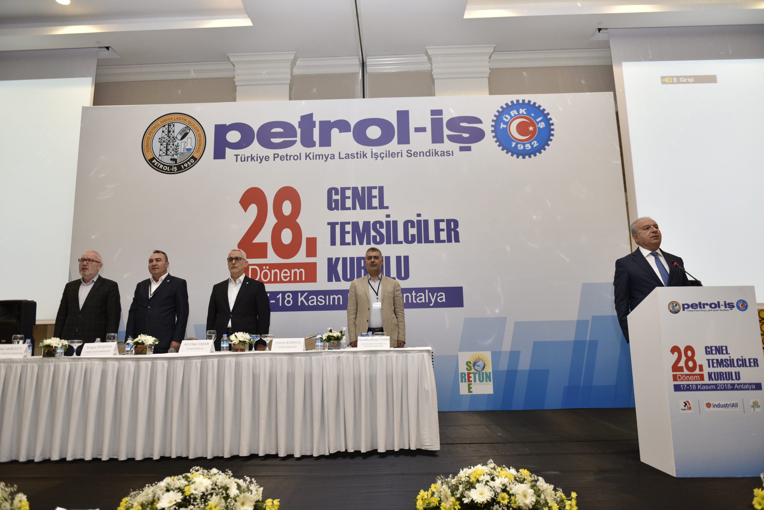 Petrol-İş Sendikası 28. Dönem GENEL TEMSİLCİLER KURULU, 17-18 Kasım 2018 tarihinde Antalya’da, 500’ün üzerinde üyenin katılımıyla toplandı. Her faaliyet döneminde yapılan ve Petrol-İş’in merkez yöneticilerini, merkez denetim ve disiplin kurulu üyelerini; sendikamızın 16 şubesinin örgütlü olduğu işyerlerindeki tüm temsilcileri, şube yöneticilerini, denetim ve disiplin kurulu üyelerini bir araya getiren Genel Temsilciler Kurulu, dünya ve Türkiye’deki gelişmeleri, emeğin ve sendikal hareketin gündemini, sendikamızın örgütsel konularını değerlendirdi. Sendikamızın genel merkez yöneticileri, şube başkan ve yöneticileri ile örgütlü olduğumuz tüm işyerleri baştemsilci ve temsilcilerinin, sendika uzmanlarının, gazetecilerin katıldığı toplantıda, dünyada ve ülkemizde yaşanan siyasi, sosyal ve ekonomik gelişmeler, dünya ve Türkiye sendikal hareketinin bugünkü durumu ve atılması gereken adımlar üzerinde ayrıntılı tartışmalar yürütüldü. Genel Temsilciler Kurulu, örgütlü olduğumuz işyerlerinde yaşanan sorunları da gündemine alarak izlenecek politika ve stratejileri saptadı. Sendikalaştıkları için işlerinden atılan ve altıncı ayını geride bırakan Flormar Direnişi de toplantıda ayrıntılı olarak değerlendirilirken, Flormar işçileri de söz alarak direnişteki kararlılıklarını yinelediler.