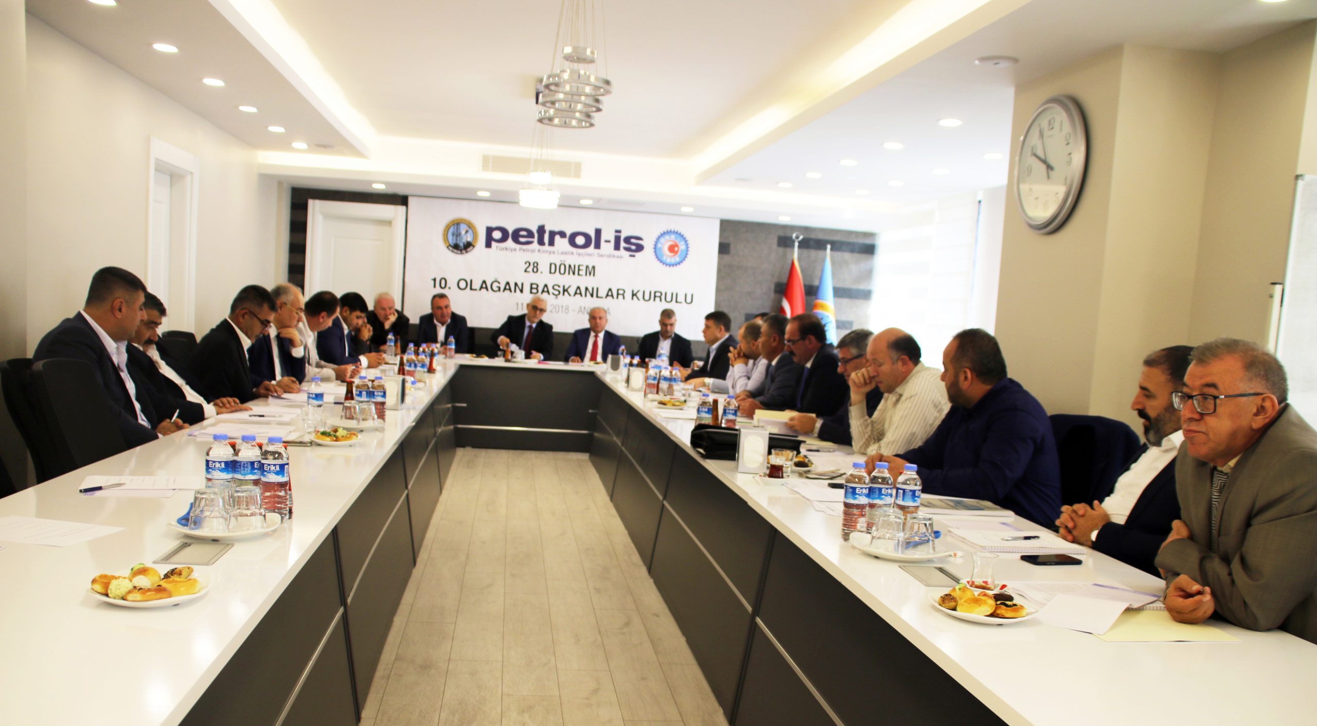 Petrol-İş Sendikası 28. Dönem 10. Olağan Başkanlar Kurulu, 11 Ekim Perşembe günü Genel Başkan Ali Ufuk Yaşar’ın açış konuşmasıyla başladı.Başkanlar Kurulu’na, Petrol-İş Sendikası merkez yöneticileri, merkez denetim kurulu üyeleri ve şube başkanları katıldı.