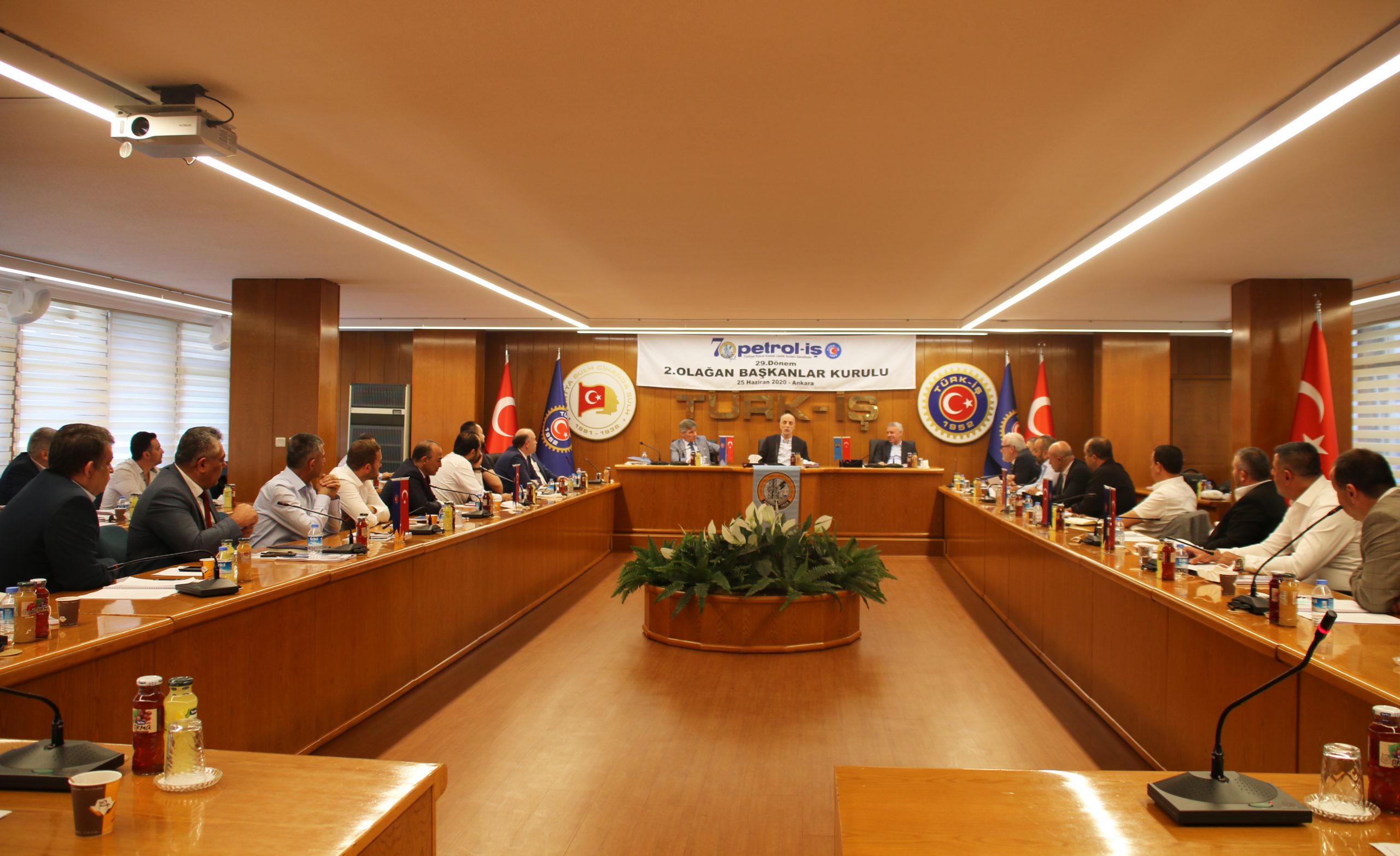 Sendikamızın her dört ayda bir toplanan, Merkez Yönetim, Denetim, Disiplin Kurulları ve şube başkanlarının katılımıyla yapılan Başkanlar Kurulu, 29. Dönem 2. Olağan Toplantısını 25 Haziran(Bugün) tarihinde gerçekleştiriyor. Ankara’da, konfederasyonumuz Türk-İş’in Genel Merkezi’nde yapılan Başkanlar Kurulumuz oldukça yoğun bir gündem ile toplandı.