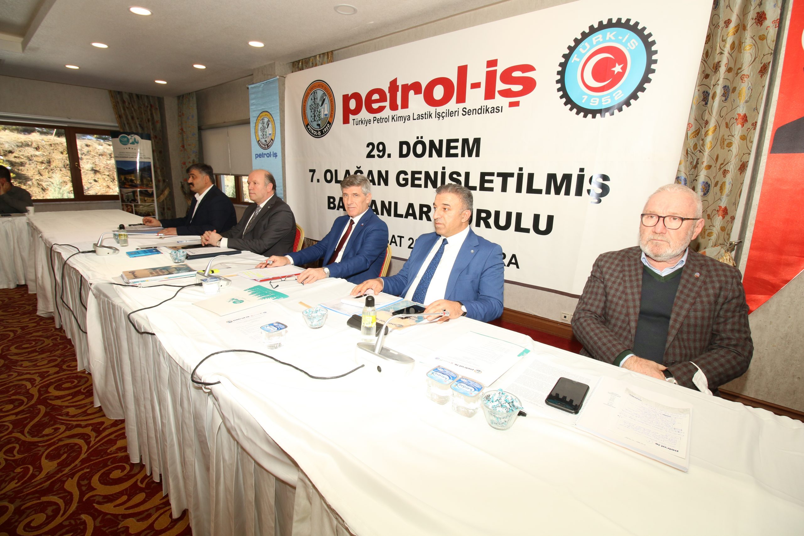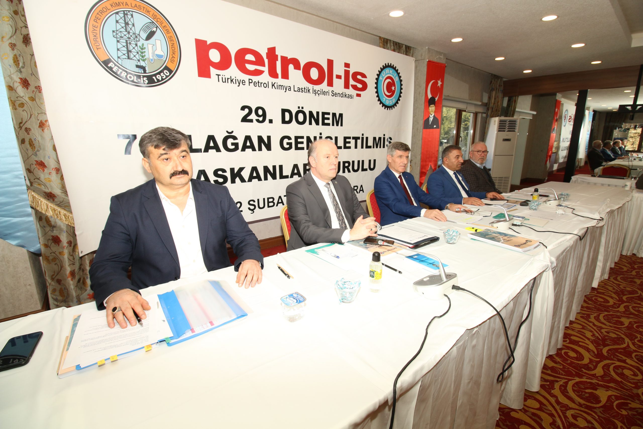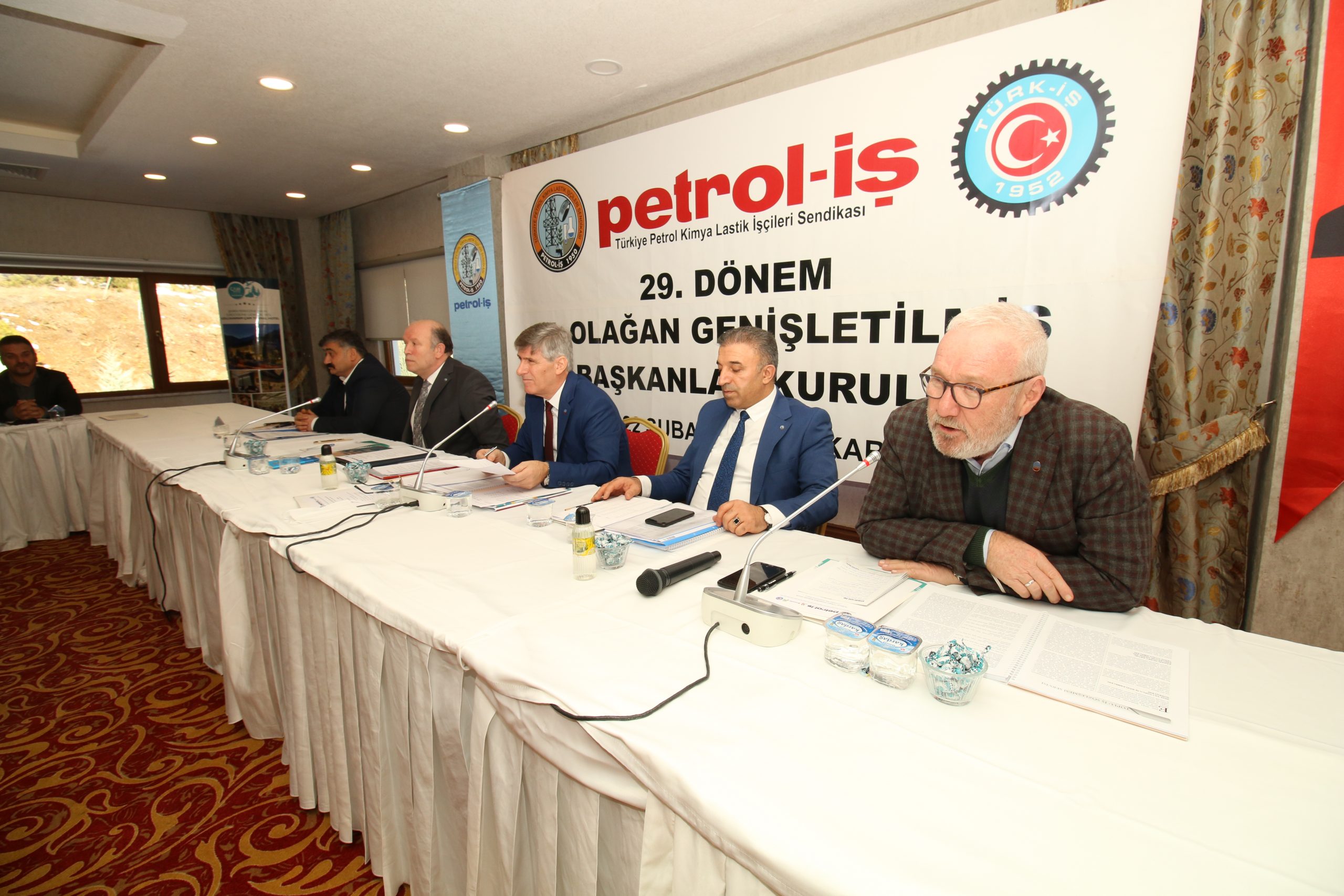 İki gün süren Genişletilmiş Başkanlar Kurulu’na, Petrol-İş Sendikası merkez yöneticileri, merkez denetim ve disiplin kurulu üyeleri, şube başkanları ve şube başkan yardımcıları katıldı. Başkanlar Kurulu’nda ülkedeki güncel siyasi ve toplumsal gelişmeler, emekçileri ilgilendiren başlıklar ve Petrol-İş’in örgütsel gündemleri değerlendirildi.