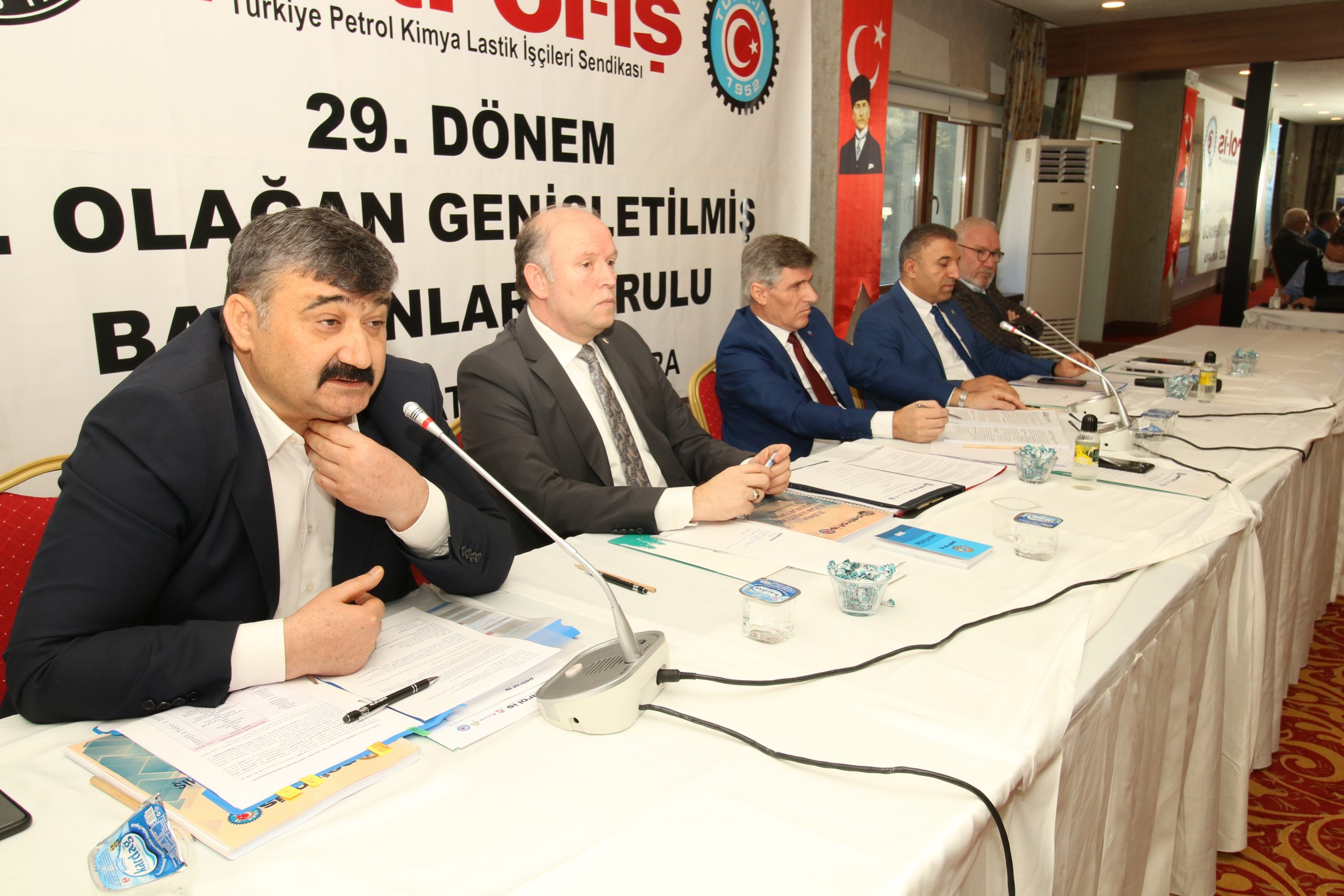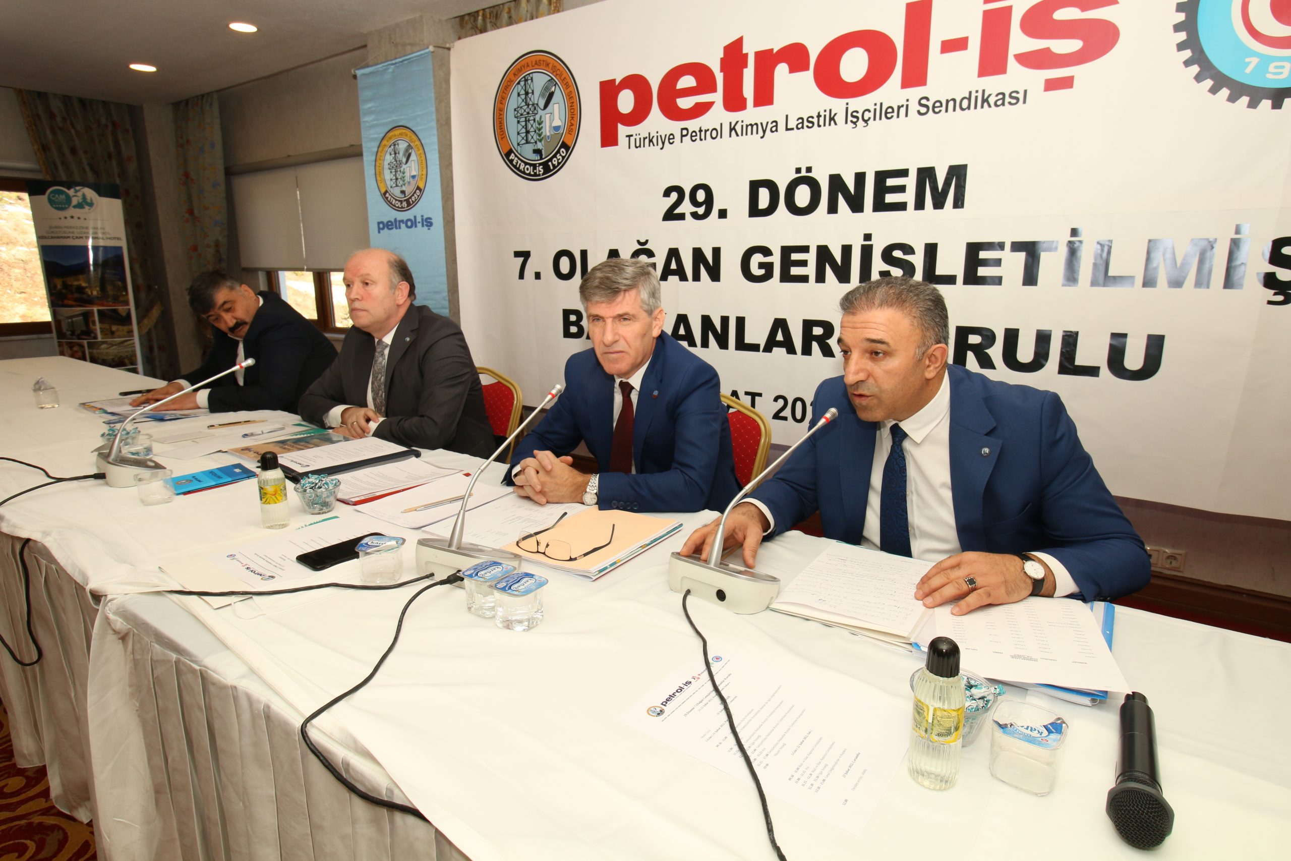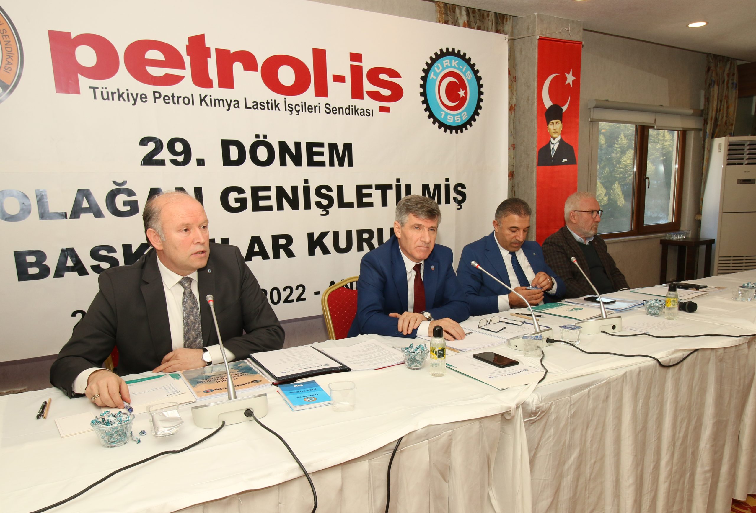 İki gün süren Genişletilmiş Başkanlar Kurulu’na, Petrol-İş Sendikası merkez yöneticileri, merkez denetim ve disiplin kurulu üyeleri, şube başkanları ve şube başkan yardımcıları katıldı. Başkanlar Kurulu’nda ülkedeki güncel siyasi ve toplumsal gelişmeler, emekçileri ilgilendiren başlıklar ve Petrol-İş’in örgütsel gündemleri değerlendirildi.