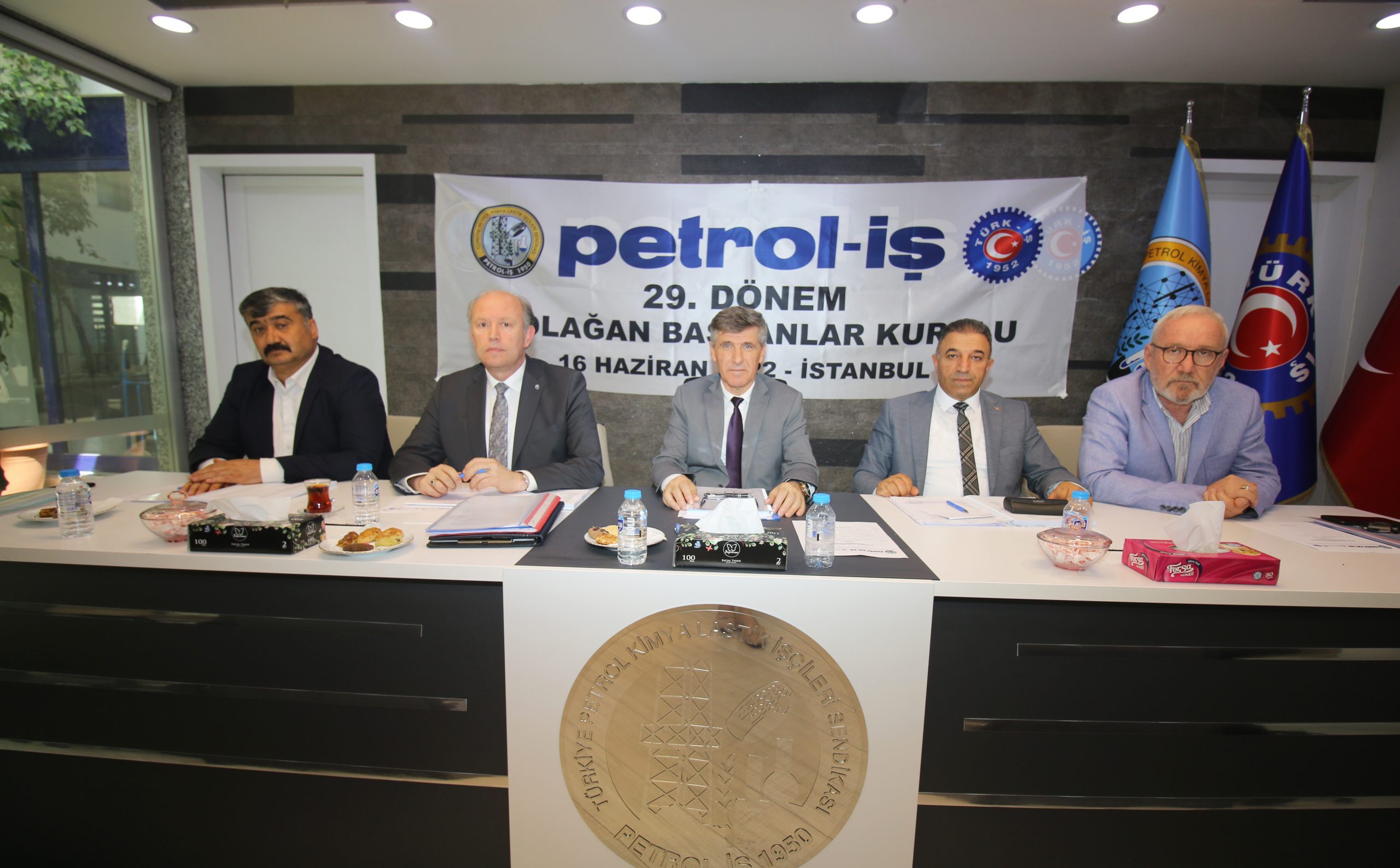 Sendikamızın her dört ayda bir toplanan, Merkez Yönetim, Denetim ve Disiplin Kurulları ile Şube Başkanlarının katılımıyla yapılan Başkanlar Kurulu, 29. Dönem 8. Olağan Toplantısını 16 Haziran tarihinde gerçekleştirdi. İstanbul’da, Petrol-İş Genel Merkezi’nde yapılan Başkanlar Kurulu toplantısı yoğun bir gündem ile toplandı.