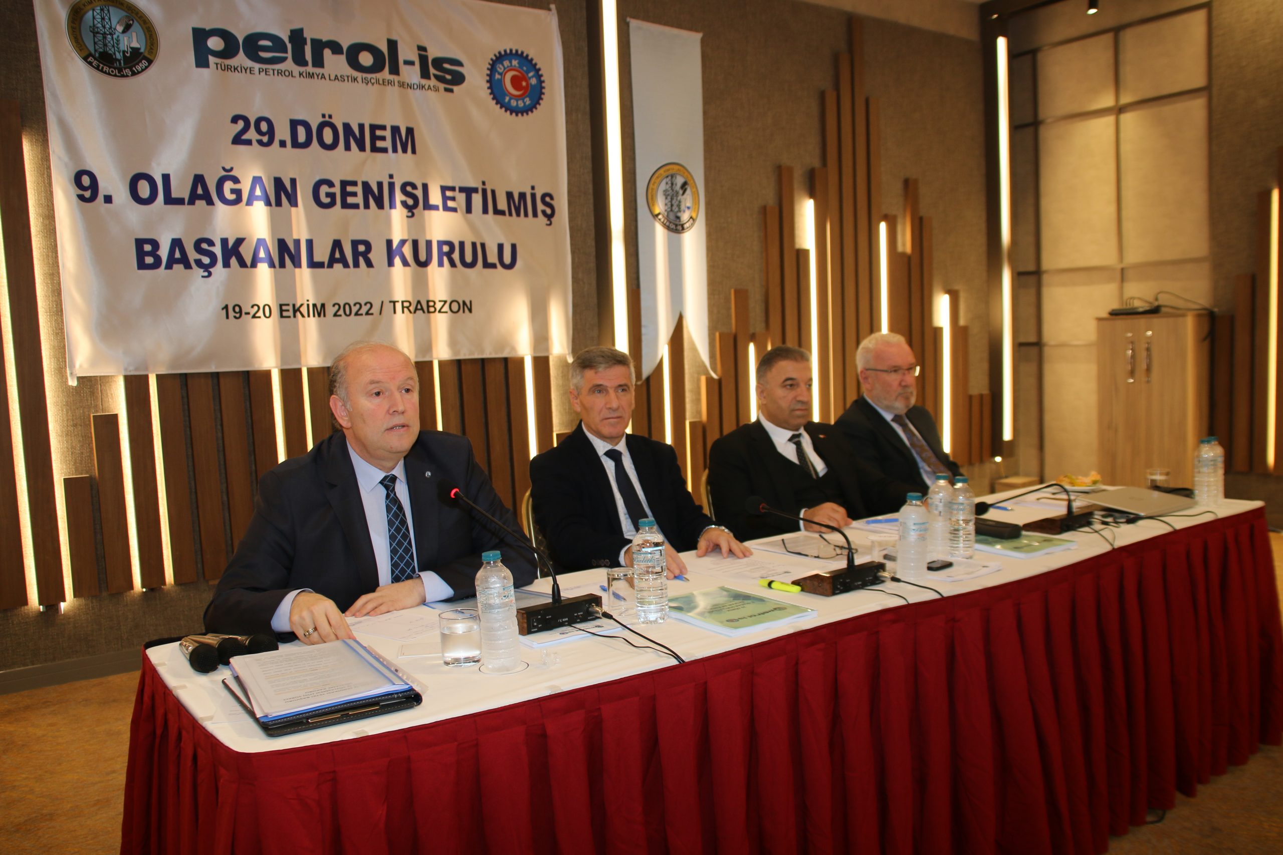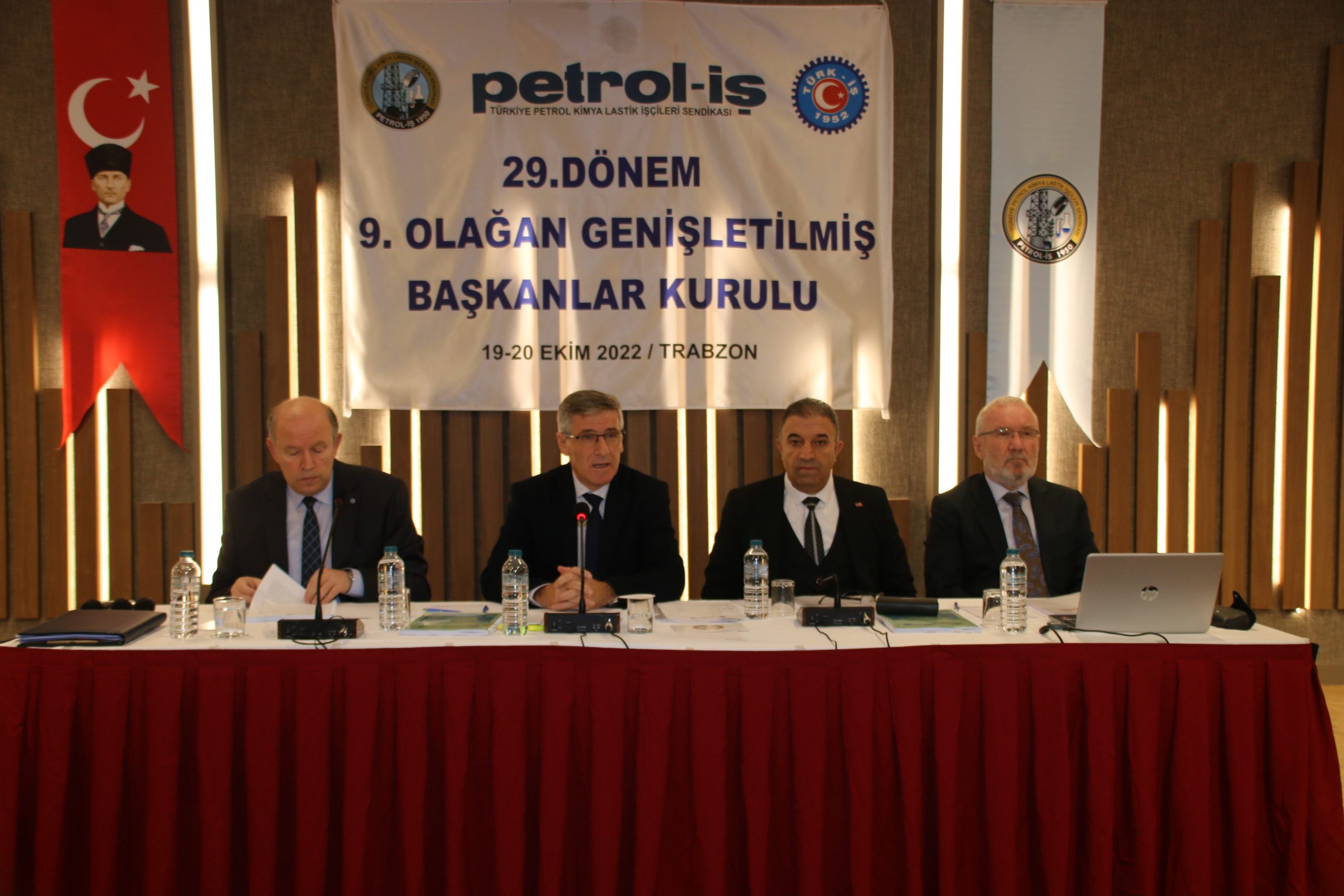 Sendikamız 29. Dönem 9. Olağan Genişletilmiş Başkanlar Kurulu 19-20 Ekim 2022 tarihinde Trabzon’da toplandı. Toplantıda ülkemizde yaşanan güncel gelişmeler, emeğin gündemini oluşturan başlıklar ile Petrol-İş’in idari ve örgütsel yapısı değerlendirildi.
