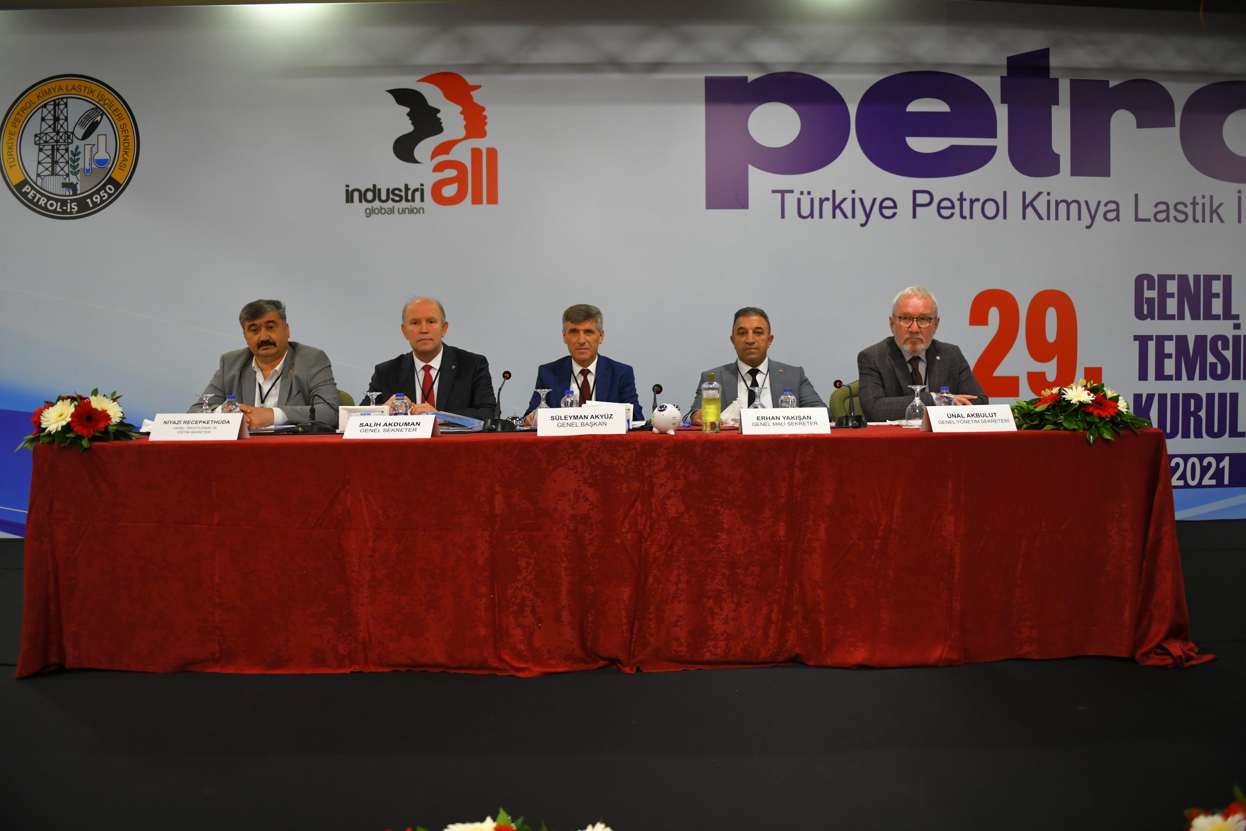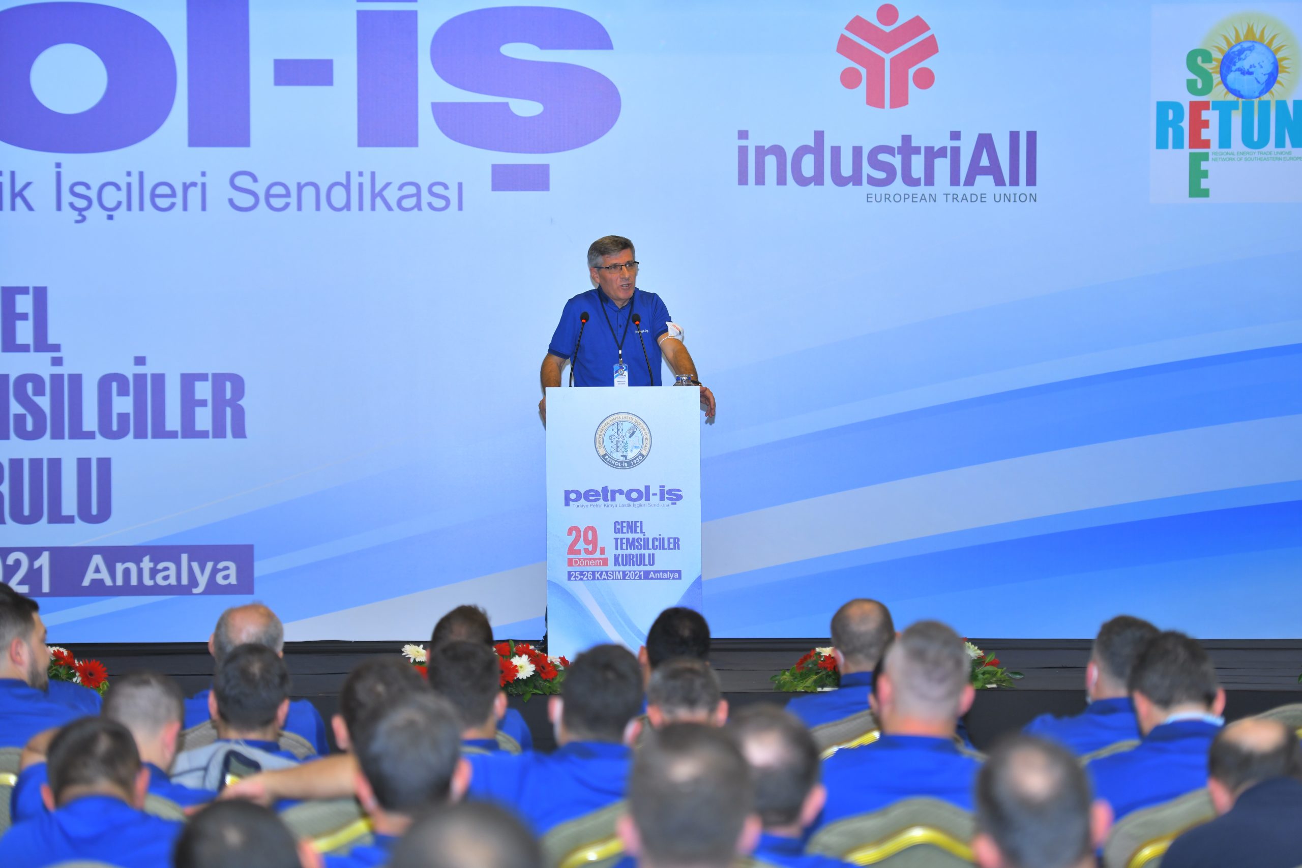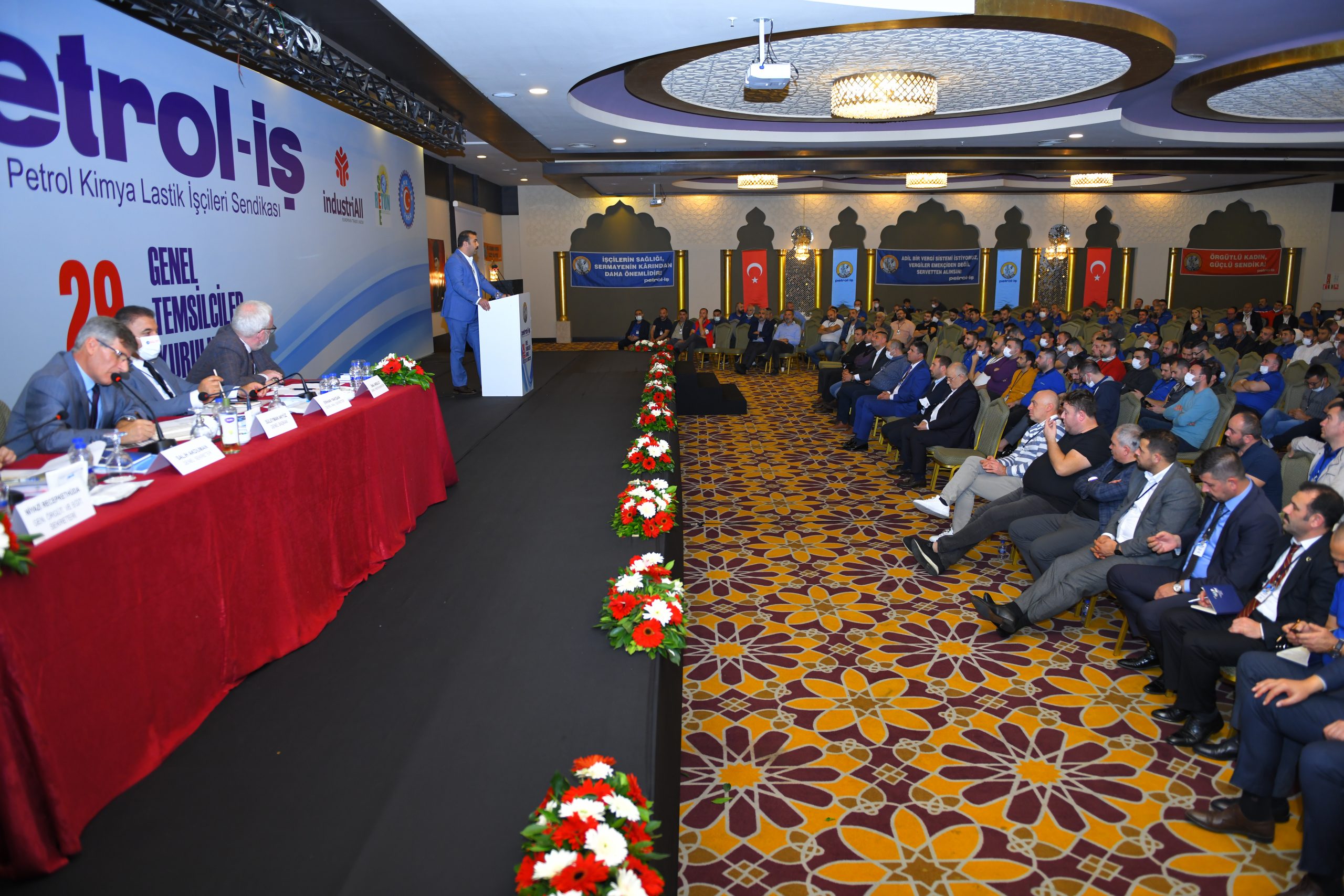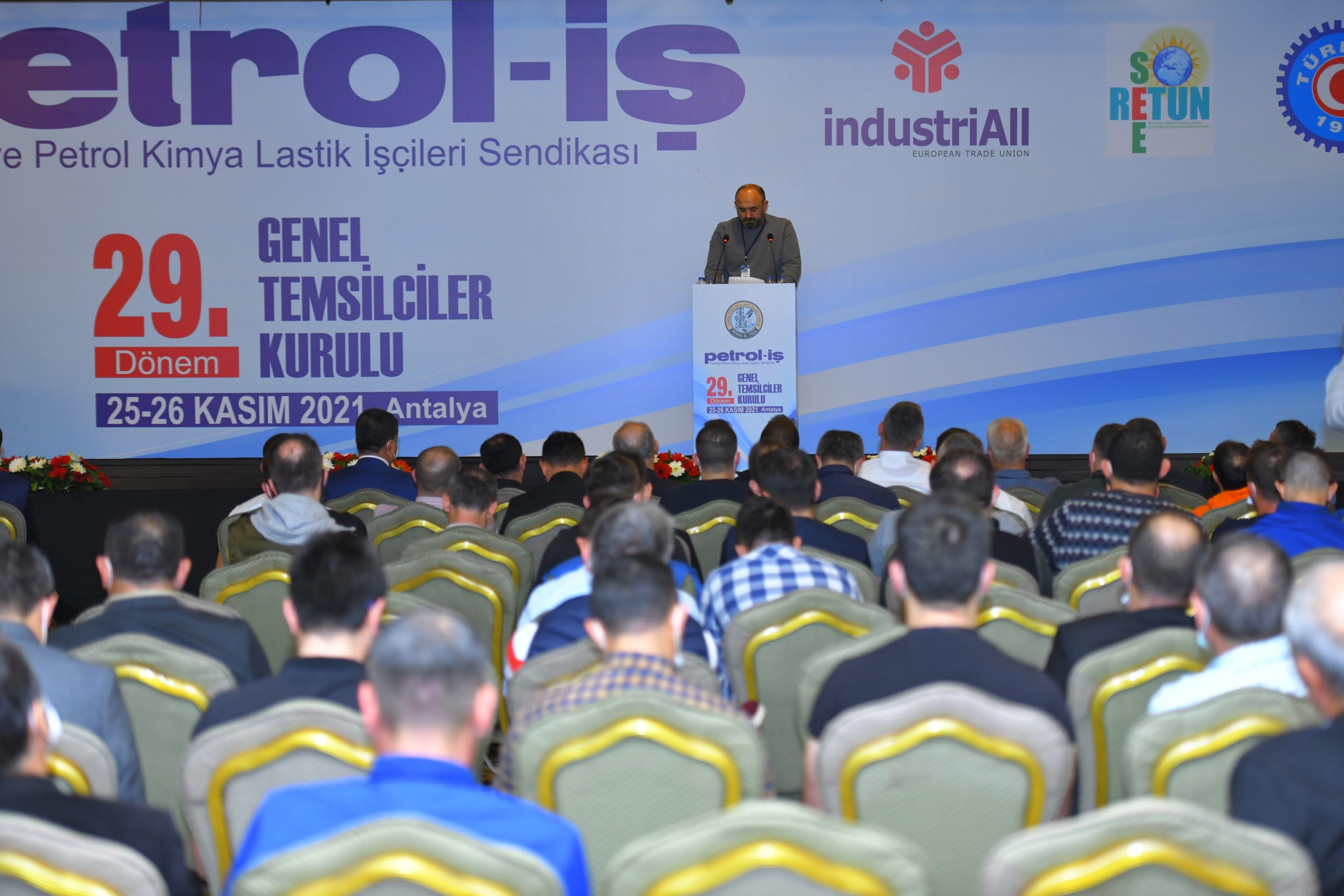 Petrol-İş Sendikası 29. Dönem GENEL TEMSİLCİLER KURULU, 25-26 Kasım 2021 tarihinde Antalya’da 500’i aşkın kişinin katılımıyla toplanmıştır. Her faaliyet döneminde yapılan ve Petrol-İş’in merkez yöneticilerini, merkez denetim ve disiplin kurulu üyelerini; sendikamızın 18 şubesinin örgütlü olduğu işyerlerindeki tüm temsilcileri, şube yöneticilerini, denetim ve disiplin kurulu üyelerini bir araya getiren Genel Temsilciler Kurulu, dünya ve Türkiye’deki gelişmeleri, emeğin ve sendikal hareketin gündemini, sendikamızın örgütsel konularını değerlendirmiştir. Kurul, bu değerlendirmeler ışığında, aşağıda yer alan karar, görüş ve önerileri kamuoyuna iletmeyi uygun bulmuştur: