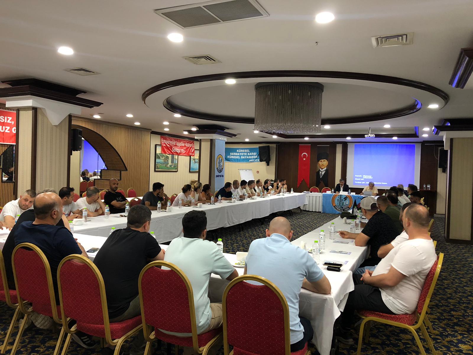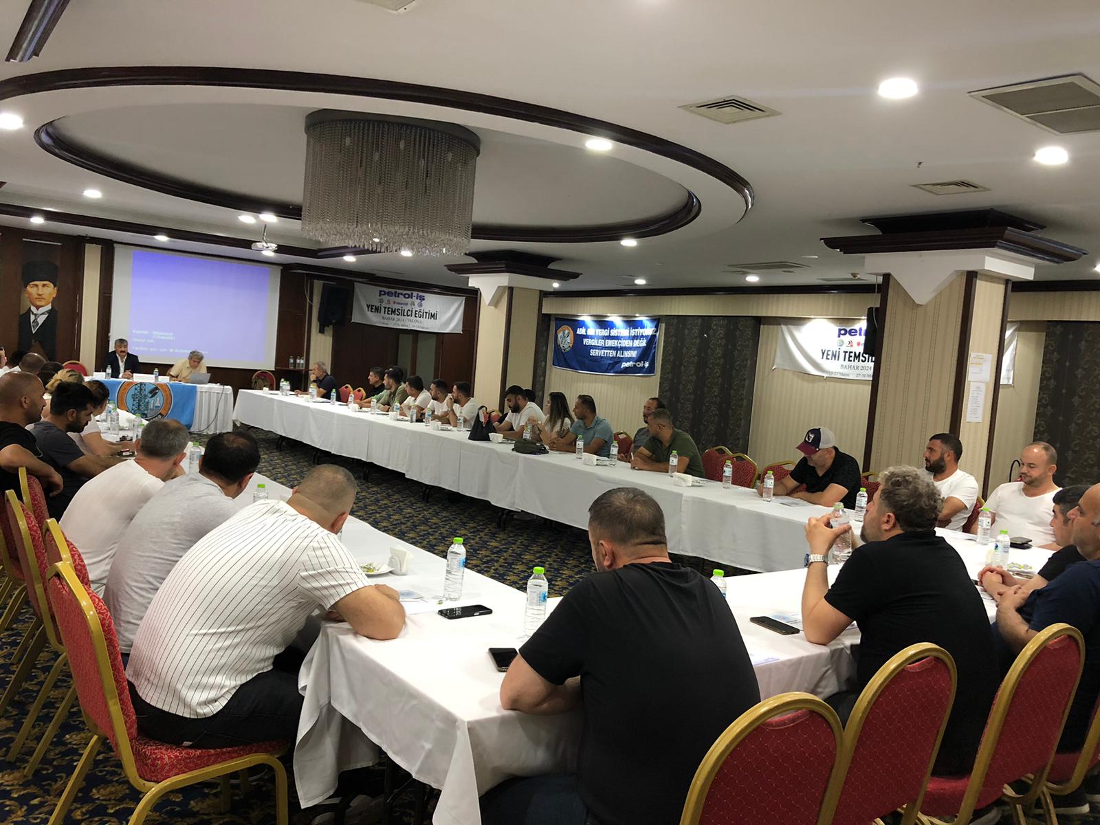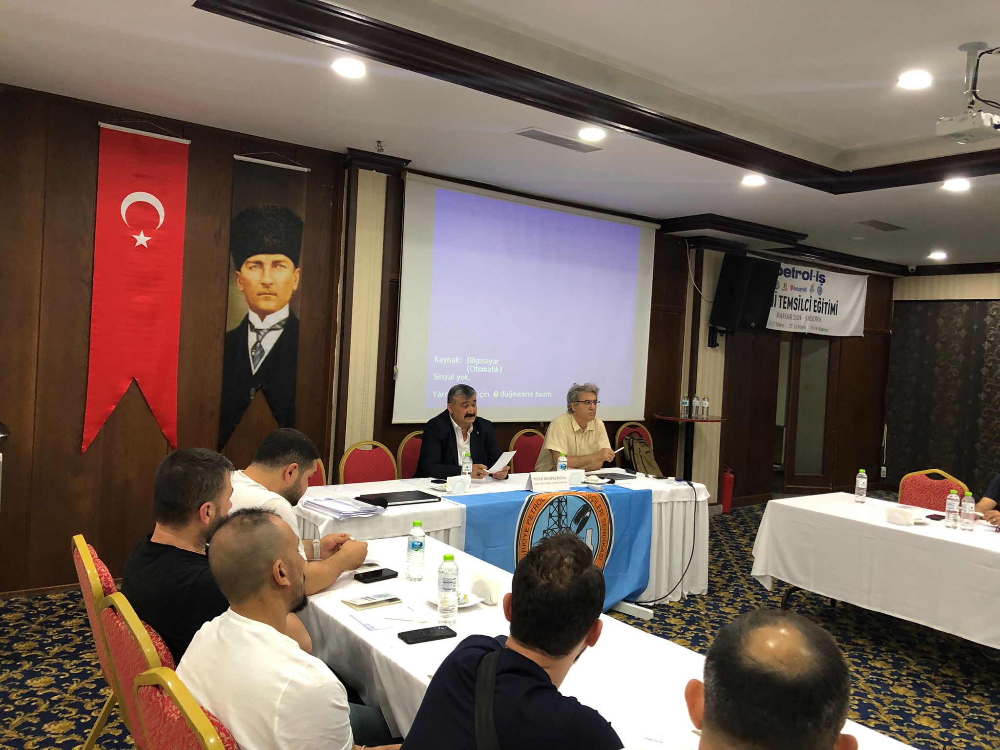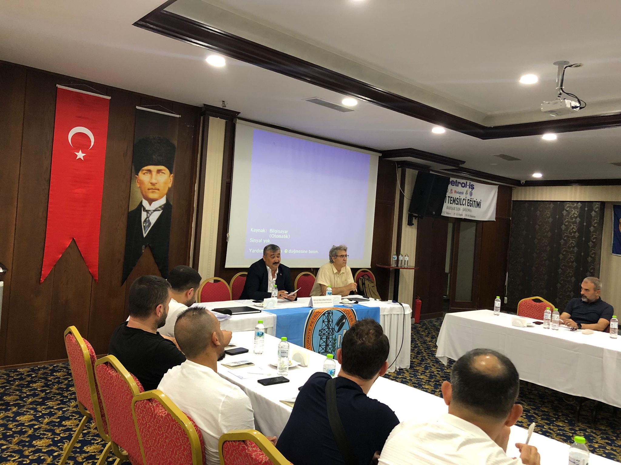 Niyazi Recepkethüda’nın konuşmasının ardından Yeni Temsilci Eğitimi, sendikamız Eğitim Uzmanı Erhan Kaplan’ın açış dersiyle devam etti. Eğitim süresince sendikal aidiyet, sendikal bağlılık, ortak hareket etmenin önemi, sendikal bağlılık, işçi sınıfı tarihi, Petrol-İş’İn tarihi ve emek mücadelesindeki yeri gibi birçok başlık ele alınıyor.