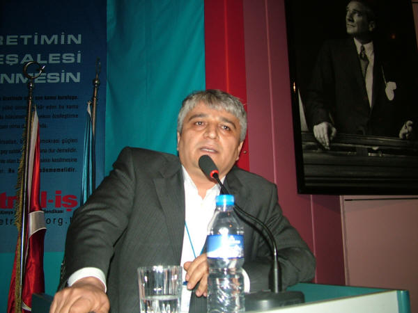 İstanbul 1 Nolu Şube Başkanlığına Reşat Tüysüz yeniden seçildi İstanbul 1 Nolu Şubemizin Petrol-İş Genel Merkezi Konferans Salonu’nda 21 Şubat tarihinde yapılan 3. Olağan Genel Kurulu’nda Şube Başkanlığına yeniden Reşat Tüysüz seçildi. İstanbul 1 Nolu Şube İdari Sekreterliğine Nihat Can, Şube Mali Sekreterliğine de Hasan Hüseyin Özkan seçildiler. Şube Yönetim Kurulu’nun diğer Asil üyeleri de Yılmaz Akay, Mehmet Gönül, Ahmet Akın ve Ayrettin Konuk’tan oluştu. Şube Denetim Kurulu Asil Üyeliklerine Şirin Akay, Osman Sayım ve Recep Recepoğlu seçilirken Şube Disiplin Kurulu Asil üyeliklerine de Selçuk Kırat, Gültekin Öztemel ve Öznur Öztürk seçildiler. İstanbul 1 Nolu Şube Başkanımız Reşat Tüysüz ile İdari Sekreterimiz Cemal Zıpır’ın hazırladığı iki listenin yarıştığı Şube Genel Kurulu’nda seçimleri Reşat Tüysüz’ün listesi kazandı. Sendikamız Genel merkez yöneticilerinin de katıldığı Şube Genel Kurulu 21 Şubat, Pazar günü saat 10.30’da başladı. Şube İdari Sekreteri Cemal Zıpır’ın genel kurulu açış konuşmasından sonra Şube Başkanı Reşat Tüysüz Yönetim Kurulu adına bir konuşma yaptı. Tüysüz’un konuşmasından sonra divan oluşturuldu. Genel Başkanımız Mustafa Öztaşkın Divan Başkanı olurken, Başkan yardımcılıklarını ise İzmir Şube Başkanımız A. Gani Gündoğdu, Bursa Şube Başkanımız Nuri Han, Batman Şube Başkanımız M. Mesut Tekik ve Adana Şube Başkanımız Ahmet Kabaca yaptı. Örgütsüzlük bizim örgütlülüğümüzü de tehdit ediyor Genel Kurul’da bir konuşma yapan Öztaşkın, Tekel işçilerinin direnişinden, 4 Şubat Dayanışma Grevine, Türkiye’deki örgütlenme oranlarından sendikal hareketin durumuna, Petrol-İş’in örgütlenme kampanyasından, sendikamız işkolunda yer alan örgütsüz işyerlerinekadar bir çok soruna değinerek, bu konularda izlenmesi gereken politikaları anlattı. Türkiye sendikal hareketinin dibe vurduğunu, Petrol-İş’in de sınıra dayandığını söyleyen Öztaşkın, genel merkez yöneticilerinden, uzmanlara, şube yöneticilerinden temsilci ve aktif üyelere kadar örgütlenme konusunda herkese görev ve sorumluluk düştüğünün altını çizdi. Öztaşkın’un Genel Kurul’da yaptığı konuşma şöyle: “Değerli konuklar…Sendikamızın İstanbul 1 Nolu Şubesi Genel Kurulu’nun değerli delegeleri…değerli işçi arkadaşlarım…Tekel işçileri tam 69 gündür Ankara’da direnişlerini sürdürüyorlar. Tekel işçilerinin eylemi herşeyden önce özelleştirme politikalarının bir sonucudur. Ve Tekel işçileri 69 gündür tarih yazıyorlar, destan yazıyorlar. Tekel işçilerinin eylemi Türkiye işçi sınıfı tarihindeki en önemli eylemlerden bir tanesidir. Bu eylemi gerçekleştiren başta Tekel işçilerini yürekten kutluyorum. Ardından Tek-Gıda-İş Sendikası’nı, bütün eksiklerine rağmen Türk-İş yönetimini ve bu eylemleri son günlerde emeğin genel bir eylemine dönüştürme çabası içerisinde olan DİSK, KESK, Kamu-Sen ve diğer bütün emek, meslek ve siyasi örgütleri ve bu eylemi destekleyen herkesi yürekten kutluyorum” dedi. İşçi sınıfının gücü görüldü Bu eylem üzerinde çok konuşulması gereken bir eylemdir ve asıl konuşma ve değerlendirmeler bu eylem bittikten sonra yapılacaktır. Bu eylemde neler yaşandı? Hangi kazanımlar elde edildi veya işçi sınıfı hareketinin, sendikal hareketin eksiklikleri neydi? Bunlar bir bir konuşulacak ve sorgulanacak. Ama bugün için biz bu eylemin olumlu yönlerini öne çıkarmak durumundayız. Size onlarca hatta yüzlerce Tekel eyleminin olumlu yönlerini ve kazanımlarını sayabilirim. Herşeyden evvel işçi sınıfı mücadelesinin ve sendikal mücadelenin, örgütlü mücadelenin ne olduğunu kamuoyu bir kez daha gördü. İşçilerin gücünü gördü. Bu kadar düşük örgütlenme oranına rağmen işçilerin gücünü gördü. Örgütlü gücü, sendikaların gücünü net bir şekilde gördü. Ve sendikaların toplumsal istikrar için, toplumsal dönüşümler için, toplumsal muhalefet için siyasi iktidarın yaptığı uygulamaları tersine çevirmek için ne kadar önemli olduğu bu eylemde bir kez daha ortaya çıktı. İşçi muhalefetinin ne demek olduğunu kamuoyu gördü. 7 yıllık AKP iktidarı dönemlerinde emek karşıtı politikalar izlenmiştir. Ve bu iktidar kendisine karşı gelen herkesi bir biçimde susturmaya çalışmıştır. Onlar üzerinde psikolojik baskılar uygulamıştır. Ve hatta kendisinden olmayan, kendisine muhalefet eden kişi ve kurumları bir biçimde bitirmenin yol ve yöntemlerini, hatta cezalandırmanın yol ve yöntemini denemiştir. Hatta son günlerde askeri bile ne duruma getirdiği tartışılırken bir tek dişini geçiremediği, o baskısını, her türlü psikolojik ve diğer baskıları gerçekleştiremediği kesim işçiler olmuştur, Tekel işçileri olmuştur. İşte işçi muhalefeti dediğimiz, işçi direnişi dediğimiz olay budur. Siyasi iktiranın uygulamalarına boyun eğmemek, onun karşısında dik durmak ve kazanımlarını korumak için mücadele edebilmektir. Özelleştirmenin sonuçları bir kez daha sorgulandı İşte herkesin sustuğu, sindirildiği, susturulduğu, hatta cezaevlerine gönderildiği bir ortamda işçilerin direnişi şanlı bir direniştir. Bununla beraber özelleştirmenin sonuçları bir kez daha Tekel işçileri üzerinden sorgulanmıştır. Bugün özelleştirmenin en hızlı savunucuları bile Türkiye’de özelleştirmelerin yanlış yapıldığını, eğer böyle özelleştirmeye devam edilirse önümüzdeki günlerdeki özelleştirmelerin yapılamayacağını söylemeye başlamışlardır. Ve biz bu eylemde emeğin birleştirici gücünü bir kez daha gördük. Sanki yeni keşfedilmiş gibi emekçi açılımı gibi kavramlar ortaya atılmaya çalışıldı. K