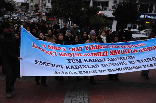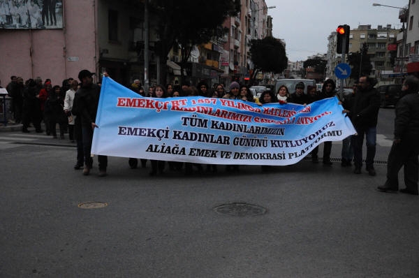 Bu gün 8 Mart 2011. Ben Aliağa’da bir fabrikada çalışan bir kadın işçiyim. Tarlada pamuk toplayan, okulda eğitim veren, fabrikada kumaş dokuyan, büroda çalışan evde ailesini var eden, iş bulmak için kapılarda bekleyen, tüm emekçilerden biriyim. Bugün hala, torbalara, sözleşmelere, dudak aralarına doldurularak bizlere dayatılan esnek çalışma koşullarına karşı, gözünü ekmeğimize, çocuğumuzun sütüne dikmiş vahşi sömürgenlere karşı direnmek ve bu onurlu direnişlerimizin bedelini bir şekilde ödemek durumunda kalıyoruz. Bursa’da bir tekstil fabrikasında, üzerlerine kilitlenen kapıdan kaçamadıkları için yanarak ölen emekçi kardeşlerimizin ödediği gibi. Belki biz emekçiler, her zaman yanan ateşin üzerinden el ele, yürek yüreğe atlamadığımız için güzel günlere varamıyoruz. Bugün, her şeyi yeniden düşünme, tek yürek ve tek bilek olma günüdür artık.