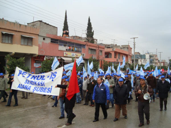 Adana Emek Platformu olarak ”Krize, işten atılmalara, işsizliğe, yoksulluğa, özelleştirmelere ve savaşlara karşı” düzenlenmiş olan mitinge Petrol-İş Adana Şubesi olarak üyelerimizle birlikte katılarak destek verdik. Mimar Sinan Açık Hava Tiyatrosu kavşağından başlayan yürüyüş coşkulu bir şekilde miting alanı olan Uğur Mumcu Meydanına kadar sürdü. Miting alanında yapılan konuşmalar ve basın açıklamasının ardından sona erdi.