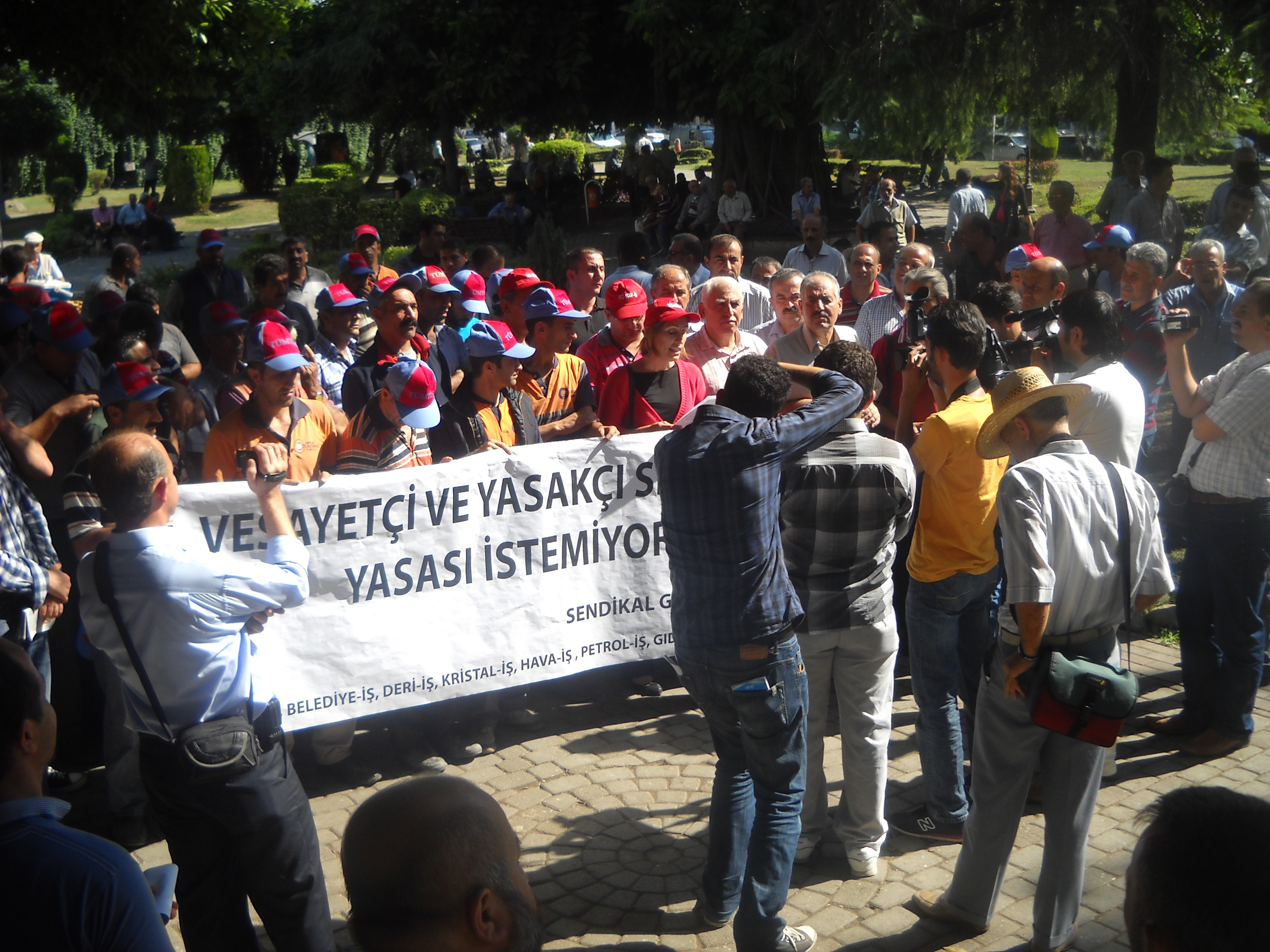 Adana İnönü Parkında toplanan Sendikal Güçbirliği platformu üyesi sendikaların yönetici ve işçileri, TBMM de görüşülen Sendikalar ve Toplu İş Sözleşmesi Kanunu’nu protesto etmek amacıyla basın açıklaması ve ardından oturma eylemi yapıldı. Yapılan açıklamada işverenler tarafından sipariş verilerek hazırlatılan bu yasayı Sendikal güç birliği olarak asla kabul edilmeyeceği kamuoyuna duyurulmuştur.