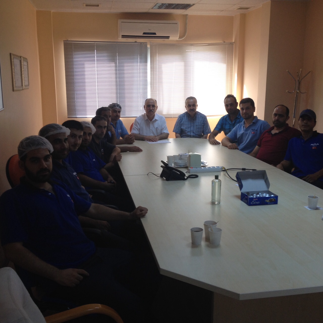 Adana Şube Başkanımız Abdül Mecit Dönmez ve Başkan yardımcımız Cemalettin Çetinkıran yeni örgütlendiğimiz Alpla işyerimizde Arefe günü üyelerimizi ziyaret ederek bayramlaştılar.