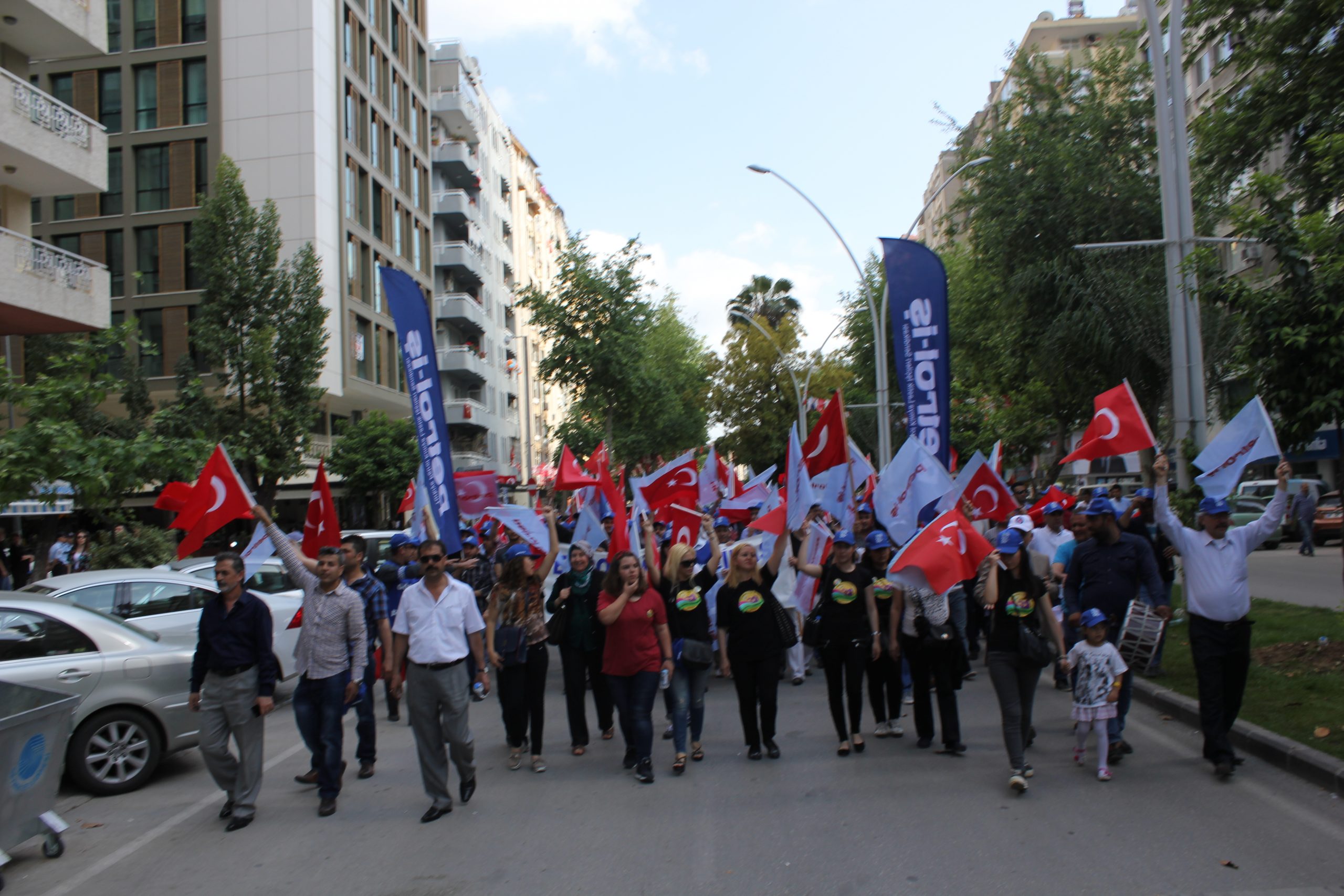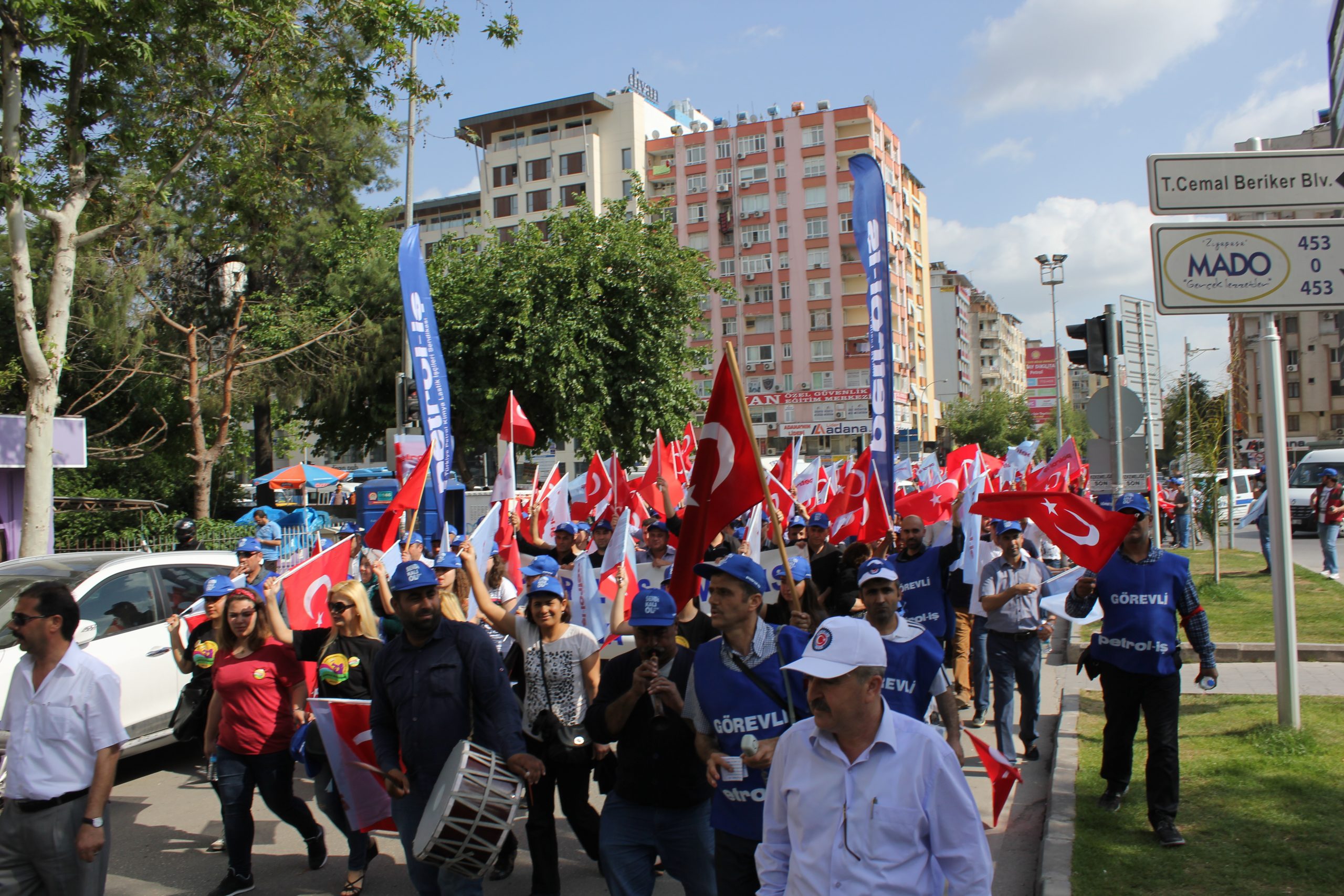 1 Mayıs Birlik, Mücadele ve Dayanışma günü tüm yurtta olduğu gibi Adana’da da yoğun bir şekilde kutlandı. Seyhan Belediyesi önünde saat 15:00’da toplanan işçiler, Ziyapaşa Caddesi’nden sloganlar ve halaylar eşliğinde kutlamanın yapılacağı Uğur Mumcu Meydanı’na kadar yürüdü.