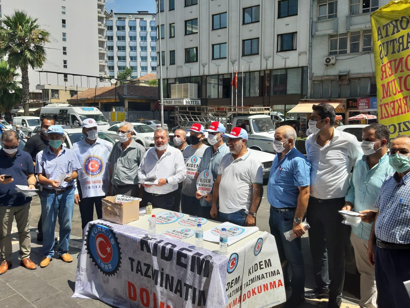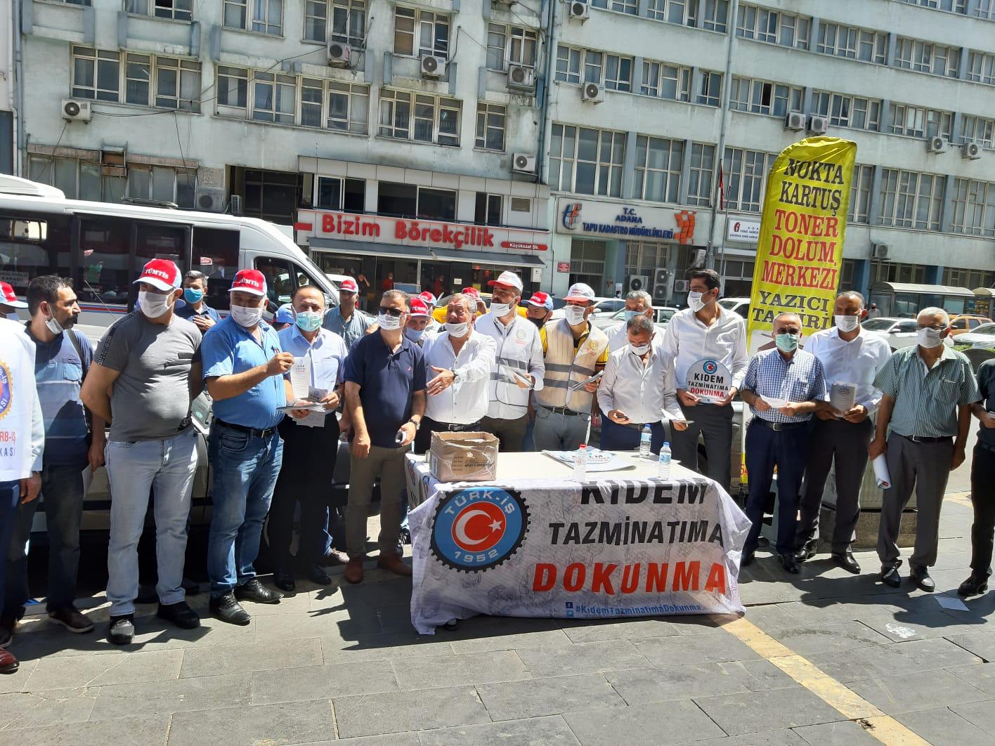 Kıdem tazminatı hakkına sahip çıkmak ve herhangi bir geri gidişe izin vermemek için eylem ve etkinlikler devam ediyor. Türk-İş Adana Bölge Temsilciliği bugün Adana merkezde, bölgedeki Türk-İş’e bağlı sendikaların temsilcileri ile basın açıklaması yaptı, ardından bildiri dağıtımı yapıldı. Adana Şubemiz de basın açıklaması ve bildiri dağıtımına katılarak bu eyleme destek verdi. Saat 11.00’de başlayan etkinlik, Türk-İş’in hazırladığı bildirinin dağıtımının ardından sona erdi.