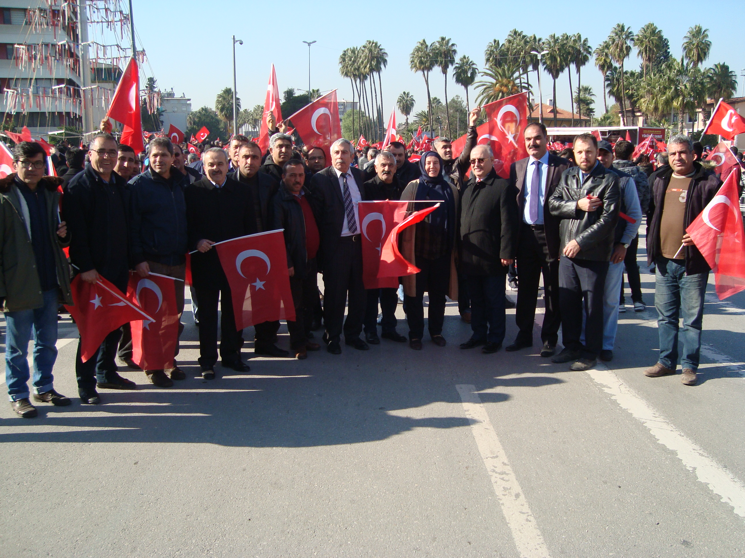 Adana Şube Başkanımız Abdülmecit Dönmez, son dönemde yapılan terör saldırılarını protesto etmek ve güvenlik güçlerimize destek vermek amacıyla 20 Aralık 2016 tarihinde Konfederasyonumuz Türk-İş’e bağlı sendikaların şubeleri, Adana Büyükşehir Belediyesi, siyasi partiler ve çeşitli sivil toplum örgütlerinin düzenlemiş olduğu teröre karşı tepki yürüyüşüne katılarak üyelerimiz ile birlikte destek verdi. Yürüyüşün ardından da  bir basın açıklaması yapıldı. İstasyon Meydanı’nda başlayan yürüyüşe, Atatürk Parkı’nda yapılan basın açıklaması ile son buldu.