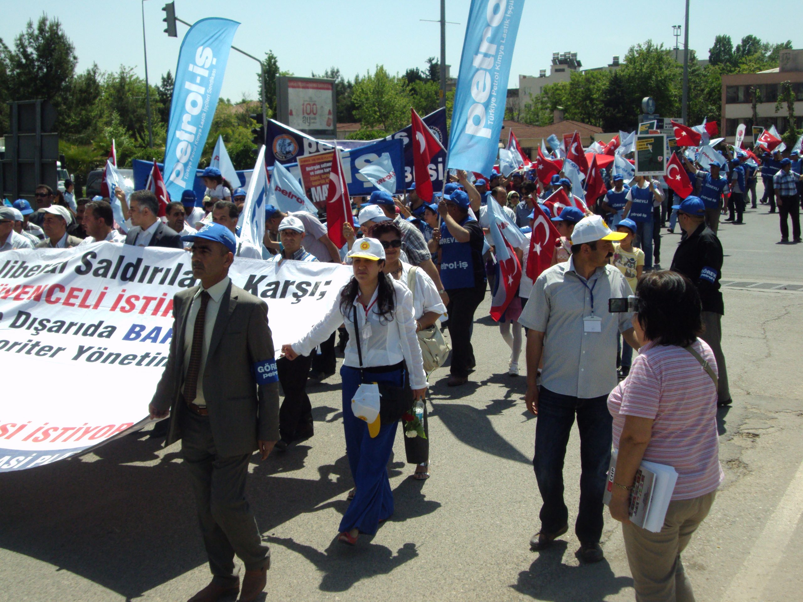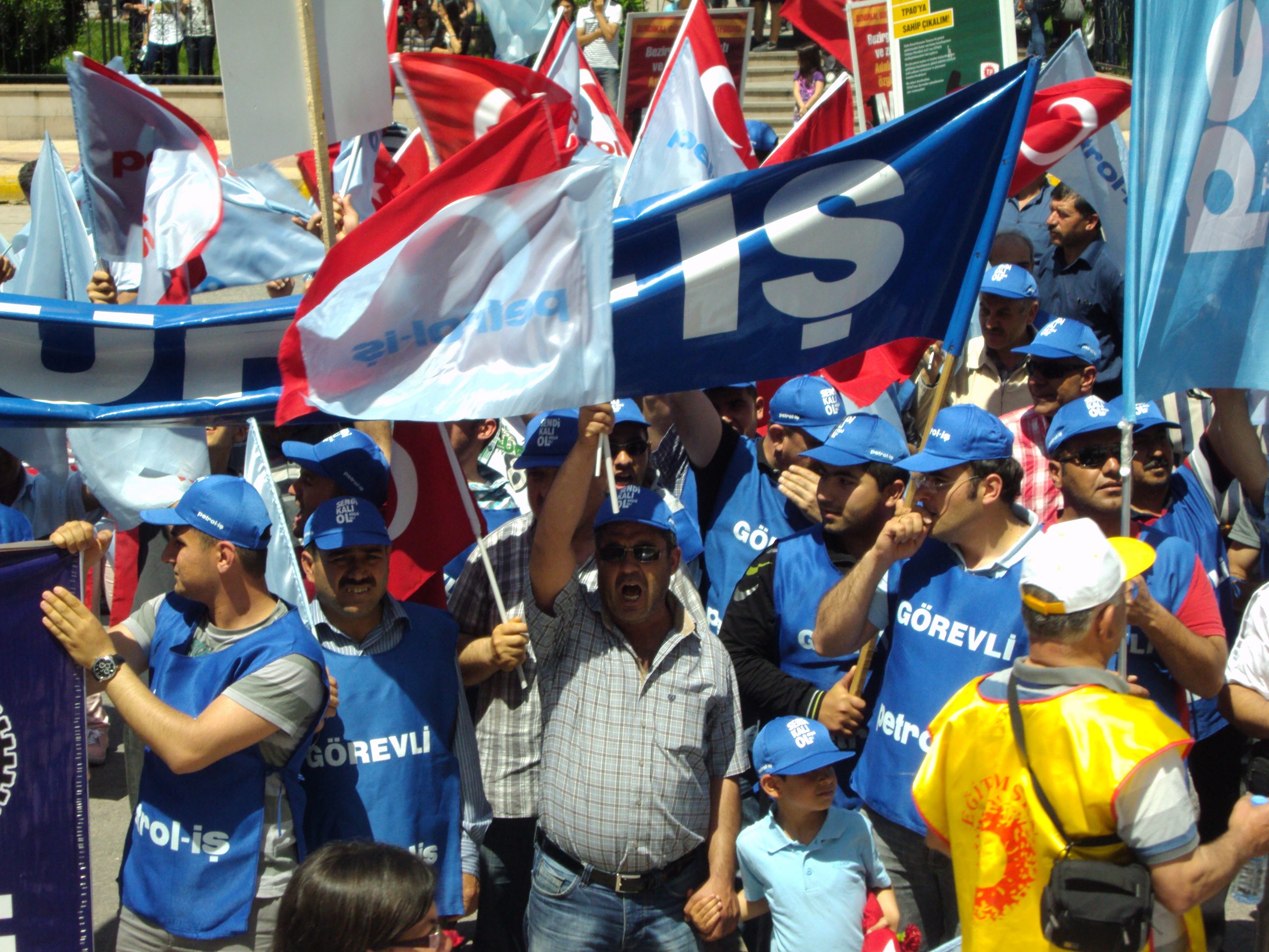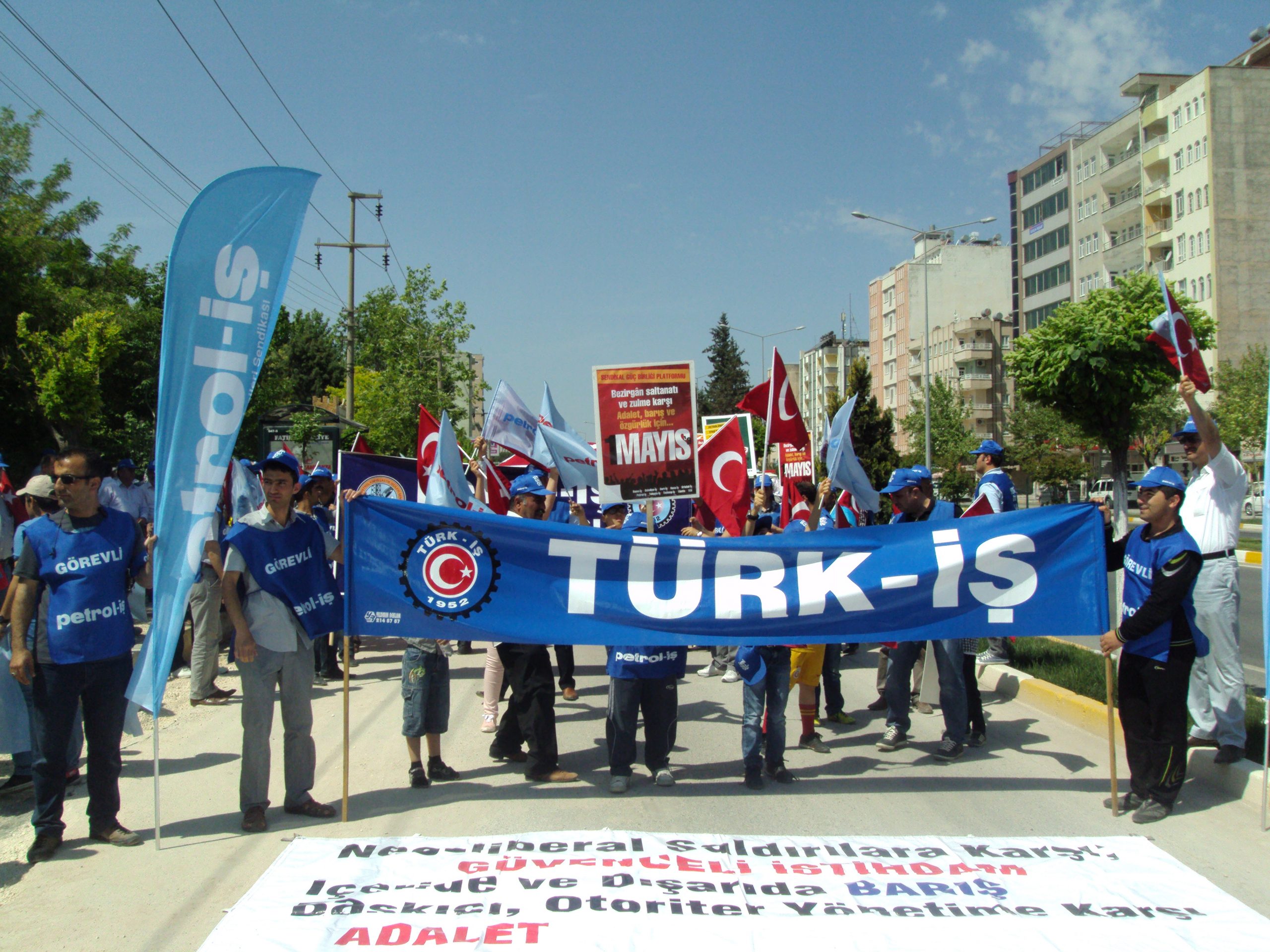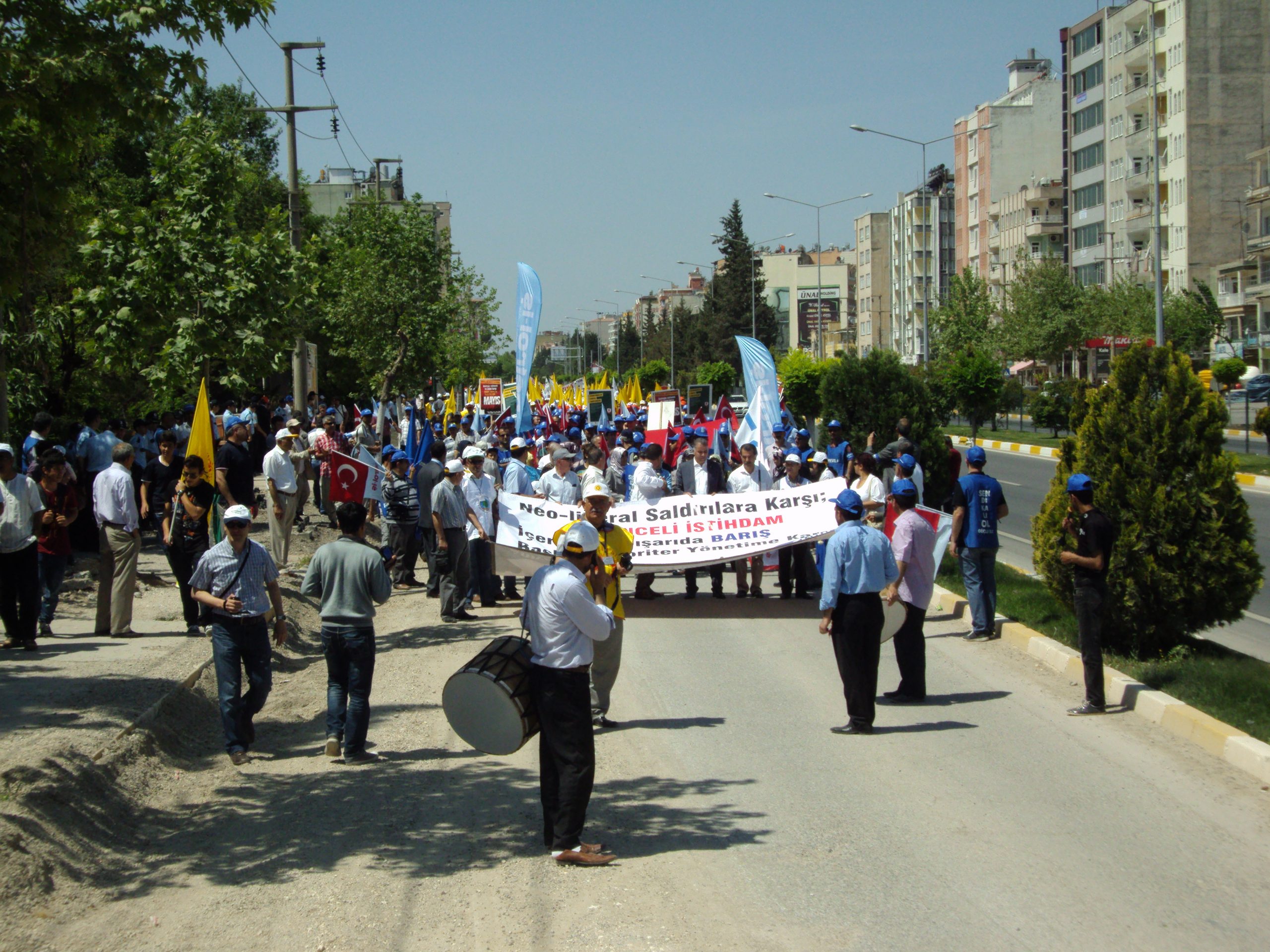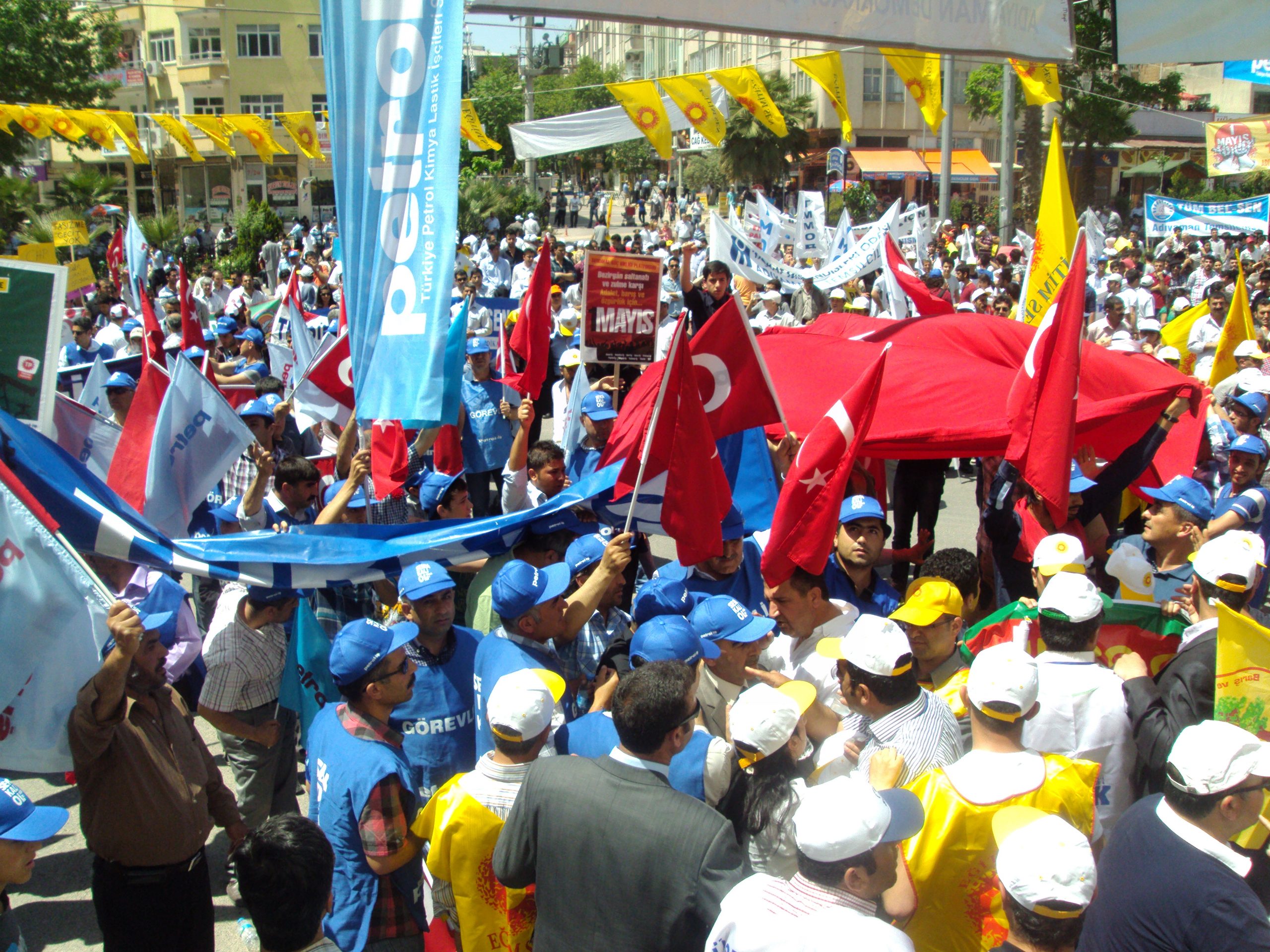 Bu meydanlara hakkı müdaafa günü olan 1 Mayıs’da  AVM şantiyelerinde yanan işçileri anmak için, barajlarda boğulan işçileri anmak için, sigortasız işçinin yetim çocuğunun gözyaşını silmek için, işçinin alınteri kurumadan ücretini verin buyuran yüce önderin mesajını iletmek için. Emeğin hesabını sormak için, alınterinin hesabını sormak için ekmeğini yediğimiz vatanın bayrağı ile 1 Mayıs işçi bayramına Adıyaman Petrol-İş Sendikası olarak katıldık.