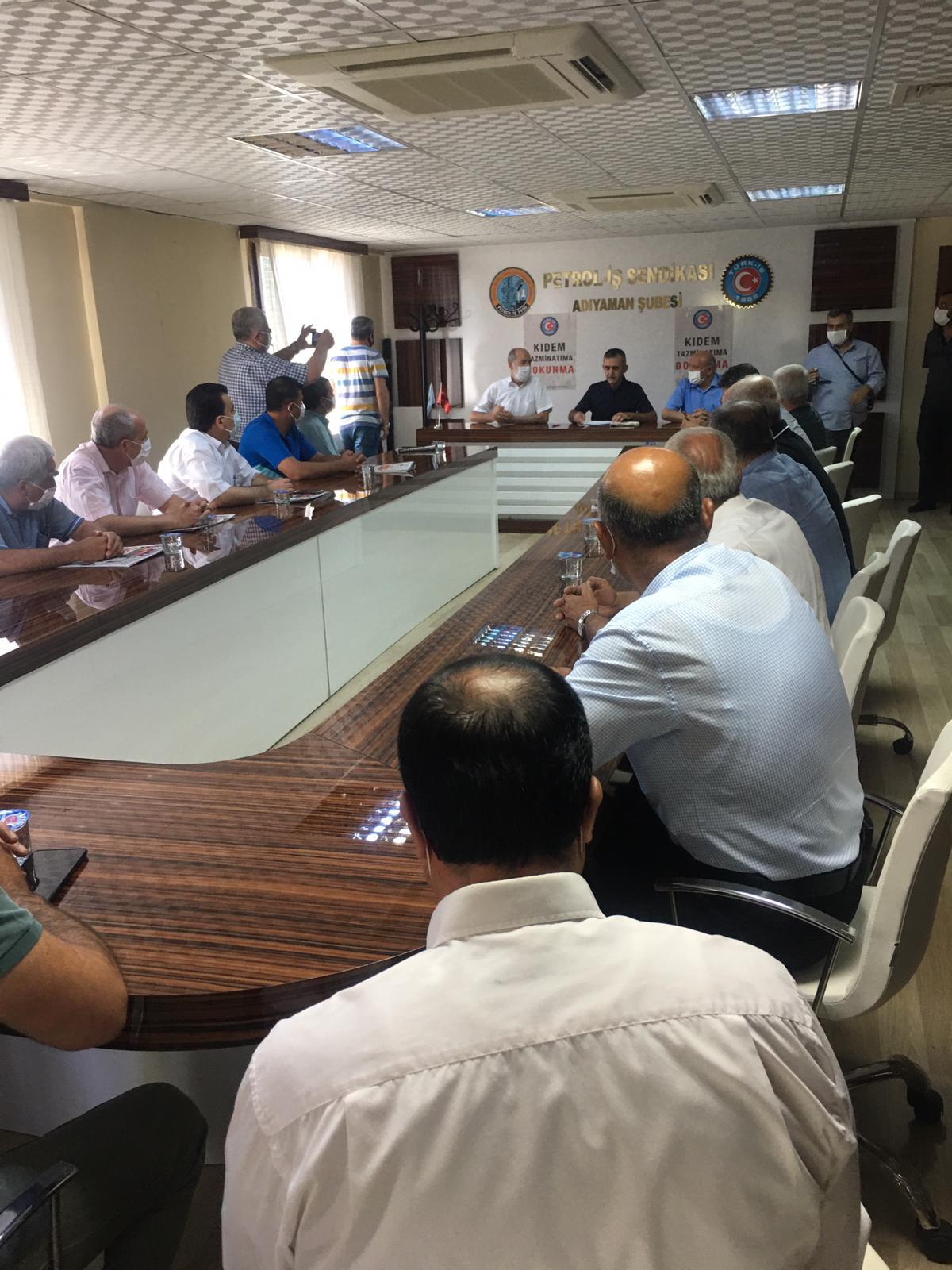 Adıyaman Şubemiz binasında yapılan basın açıklamasını, Şube Başkanımız Ali Tirpan okudu. Açıklamada, kıdem tazminatının işçilerin kırmızı çizgisi olduğu belirtildikten sonra, Türk-İş’in son genel kurullarında kıdem tazminatı ile ilgili aldığı genel grev kararı hatırlatıldı.