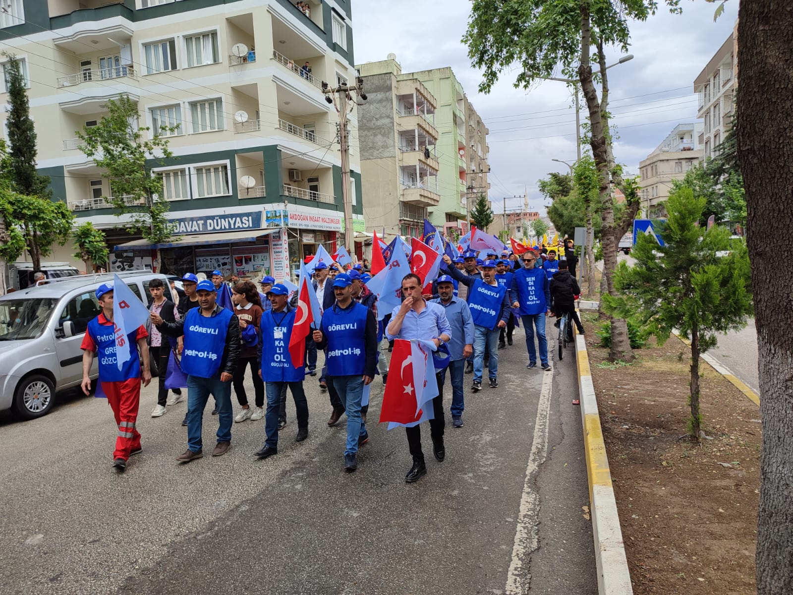 İşçilerin Uluslararası Birlik ve Mücadele Günü 1 Mayıs Adıyaman’da kitlesel bir şekilde kutlandı. Adıyaman Şubemizin de bileşeni olduğu Adıyaman Emek ve Demokrasi Platformu’nun düzenlediği 1 Mayıs mitingi için partiler ve sendikalar, itfaiye önünde toplanarak kortejler halinde miting alanına yürüdü. Yürüyüşte sendikamız Adıyaman Şubesinin kitleselliği dikkat çekti. Adıyaman Şube Yöneticilerimiz ve şubemizin örgütlü olduğu işyerlerinden temsilci ve üyelerimiz 1 Mayıs’a yoğun katılım gösterdiler.