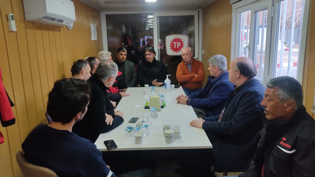 Genel Merkez Yöneticilerimizin deprem bölgesinde örgütlü olduğumuz işyerlerini ziyaretleri devam ediyor. 23 Şubat Perşembe günü sendikamız Genel Başkanı Süleyman Akyüz, Genel Sekreteri Salih Akduman, Genel Mali Sekreteri Erhan Yakışan, Genel Yönetim Sekreteri Ünal Akbulut, Adıyaman Şube Başkanı Mehmet Karaman ve Şube Yönetimi ile birlikte TPAO Adıyaman Bölge Müdürlüğünü ziyaret ederek üyelerimizle biraraya geldiler. Petrol-İş Heyetine IndustriALL Küresel Sendika Genel Sekreter Yardımcısı Kemal Özkan ile IndustriALL Avrupa Genel Sekreteri Luc Triangle de eşlik etti.