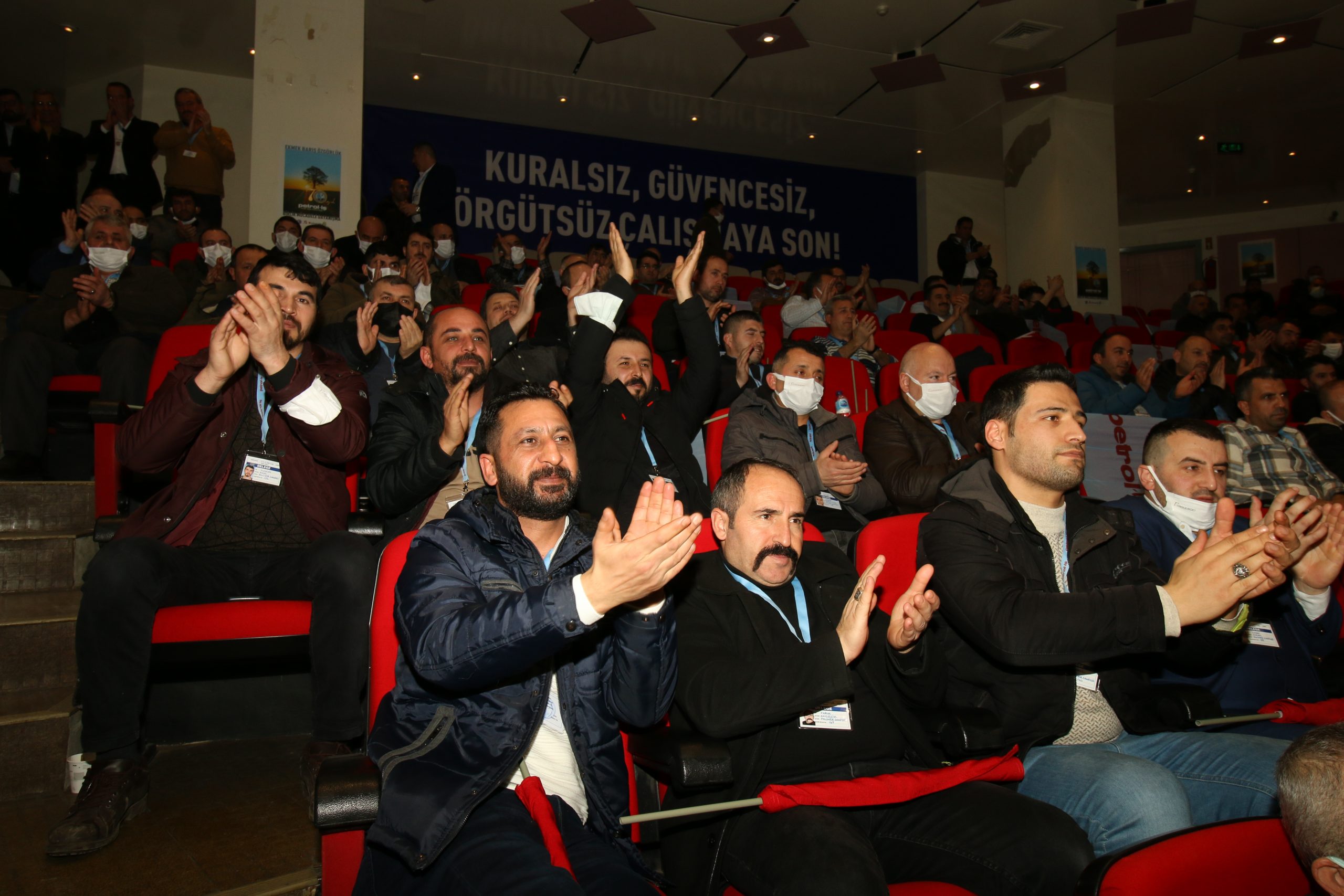 Daha sonra Genel Başkanımız Süleyman Akyüz konuşmasını yapmak üzere kürsüye davet edildi. Genel Kurul katılımcılarını selamlayarak başladığı konuşmasında Genel Başkan, ekonomi başlığı üzerinde ayrıntılı değerlendirmelerde bulundu. Son dönemde etkisini daha çok hissettiren ekonomik bunalım ve artan hayat pahalılığı karşısında emekçilerin alım gücünün günden güne azaldığına dikkat çeken Akyüz, asgari ücrette yapılan iyileştirmenin dahi emekçinin cebine girmeden eridiğini söyledi. Genel Başkanımız Süleyman Akyüz konuşmasının devamında vergi düzenindeki adaletsizlik, pandeminin devam eden etkileri, artan enflasyon oranları gibi ülke ve emek gündemini meşgul eden konular üzerine açıklamalarda bulundu.