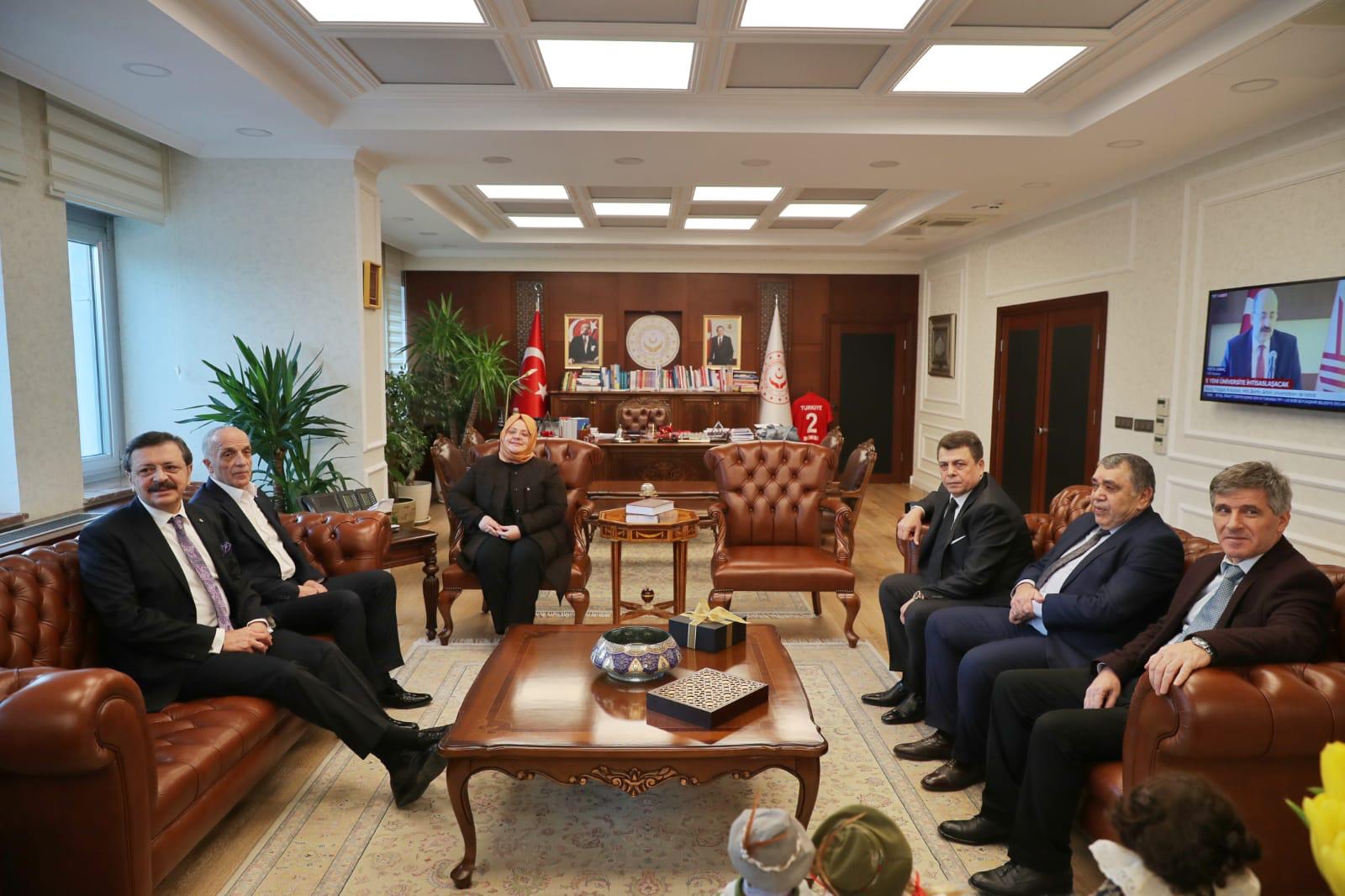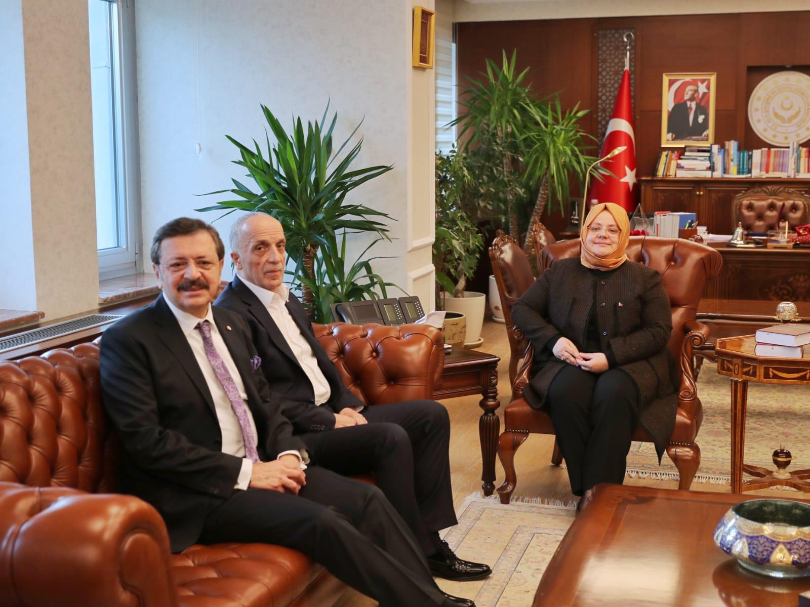 Türk-İş Genel Başkanı Ergün Atalay, Genel Başkanımız Süleyman Akyüz, Türk-İş Genel Sekreteri ve Türk Metal Sendikası Genel Başkanı Pevrul Kavlak, Türkiye Maden İşçileri Sendikası Genel Başkanı Nurettin Akçul ve TOBB Başkanı M. Rifat Hisarcıklıoğlu 23 Ocak Perşembe günü Aile, Çalışma ve Sosyal Hizmetler Bakanı Zehra Zümrüt Selçuk’u makamında ziyaret ettiler.