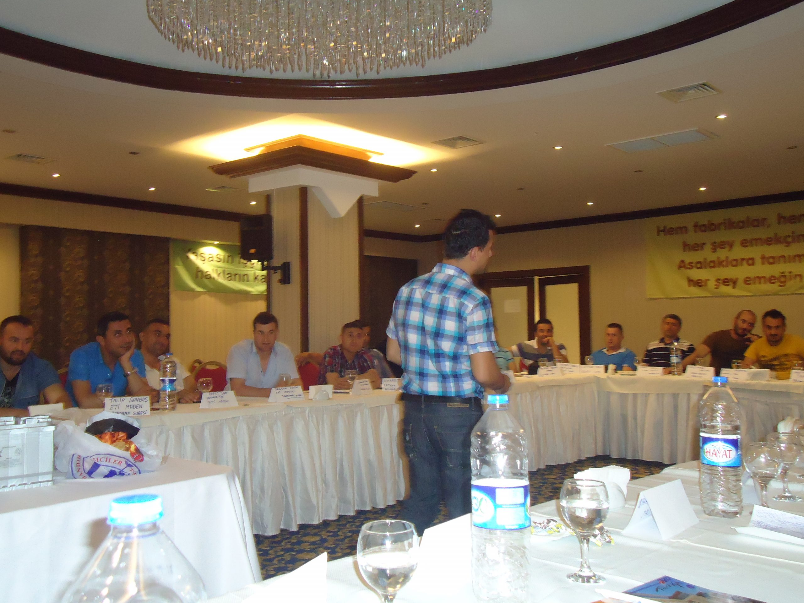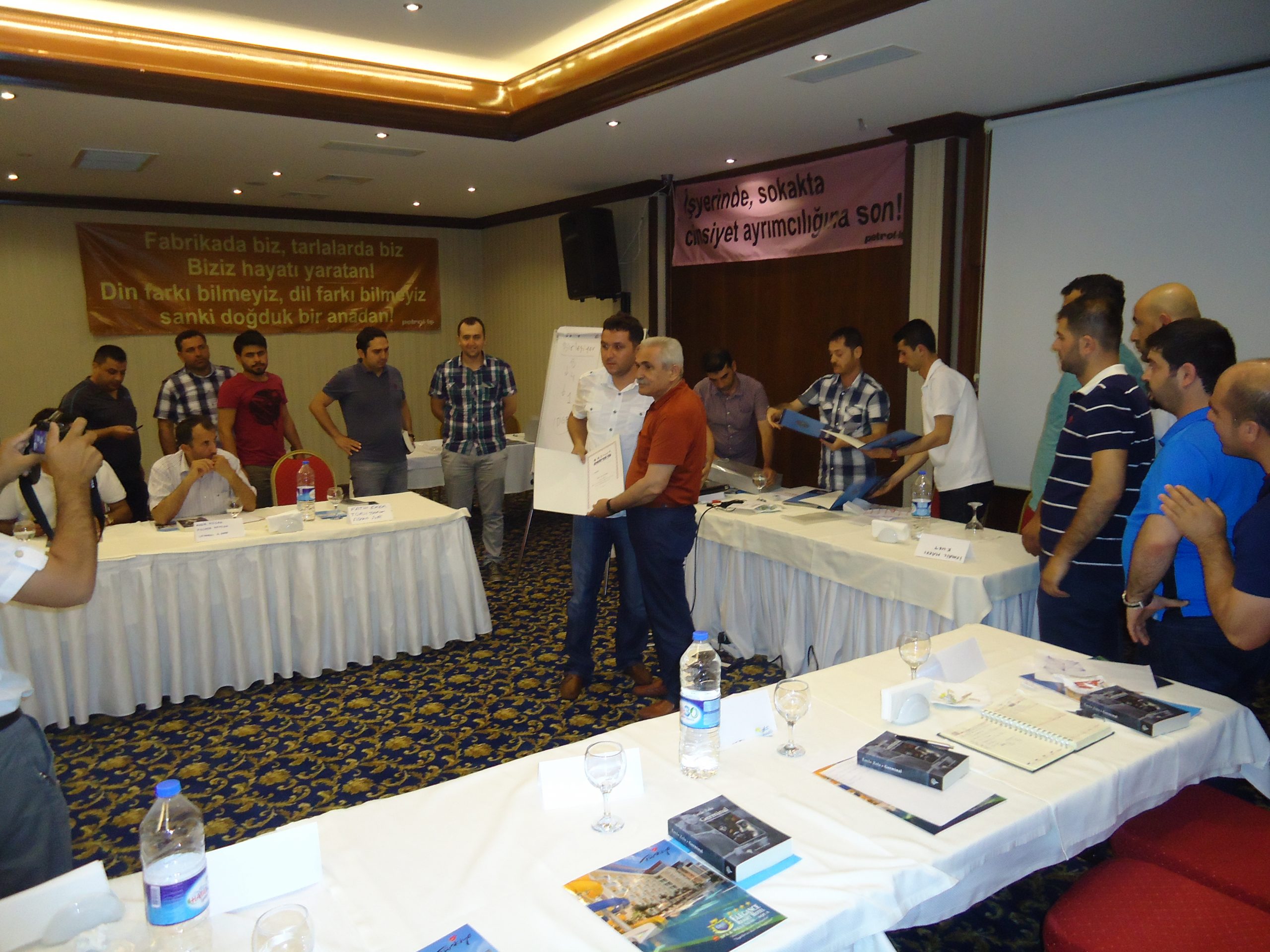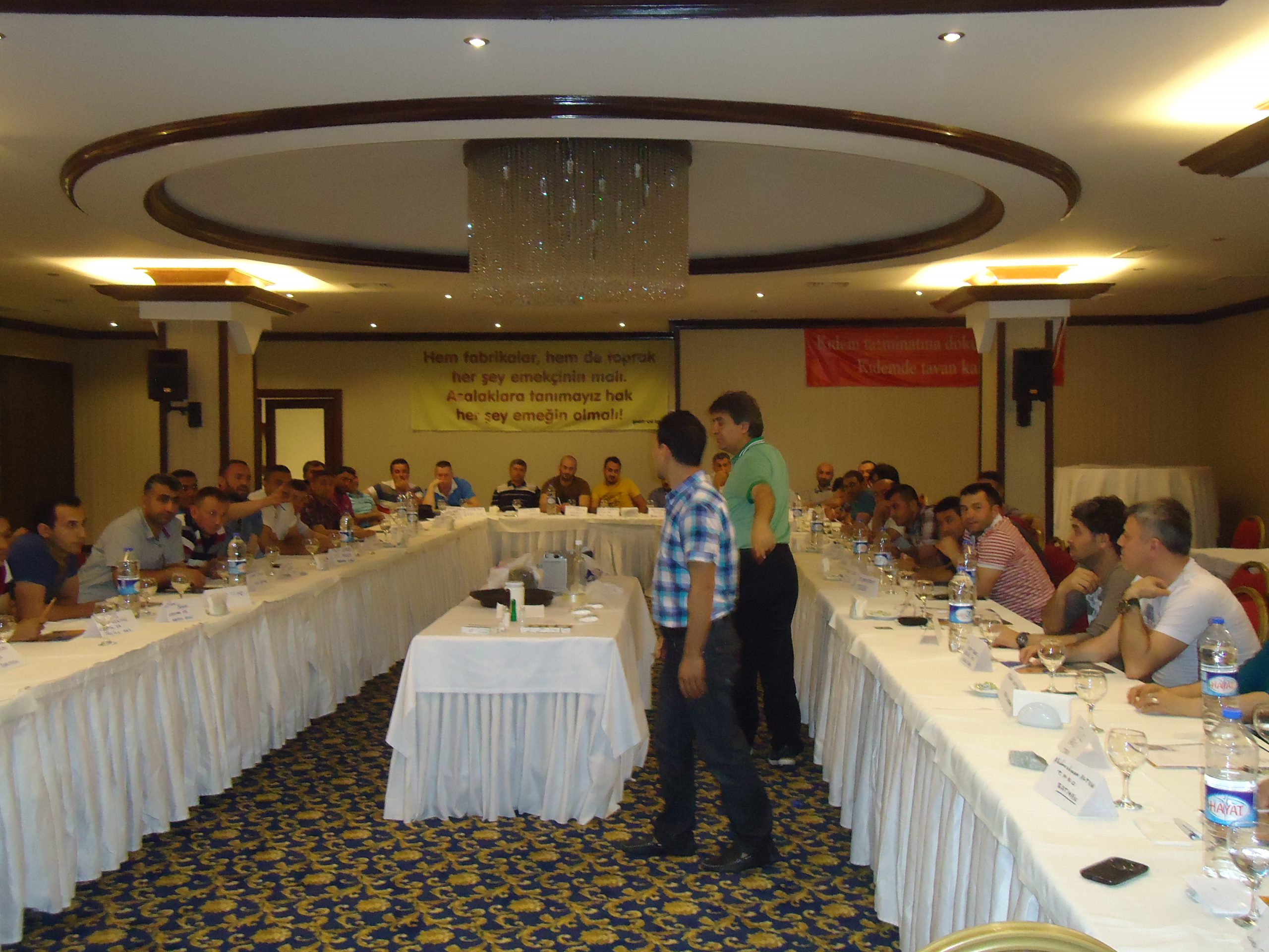 Misafir olarak katkı sunan dostlarımızdan birisi çok uzun yıllardır ortak eğitim yaptığımız Kıbrıs Devrimci İşçi Sendikaları Federasyonu DEV-İŞ genel başkanı Mehmet Seyis’ti. Mehmet Başkan, Kıbrıs yasalarını, Kıbrıslı işçilerin mücadelelerini ayrıntılı olarak aktararak üyelerimizin farklı bir sendikal yapı ile tanışmalarını sağladı. Üyelerimiz böylelikle Kıbrıslı işçilerin artılarını eksilerini görebildiler.