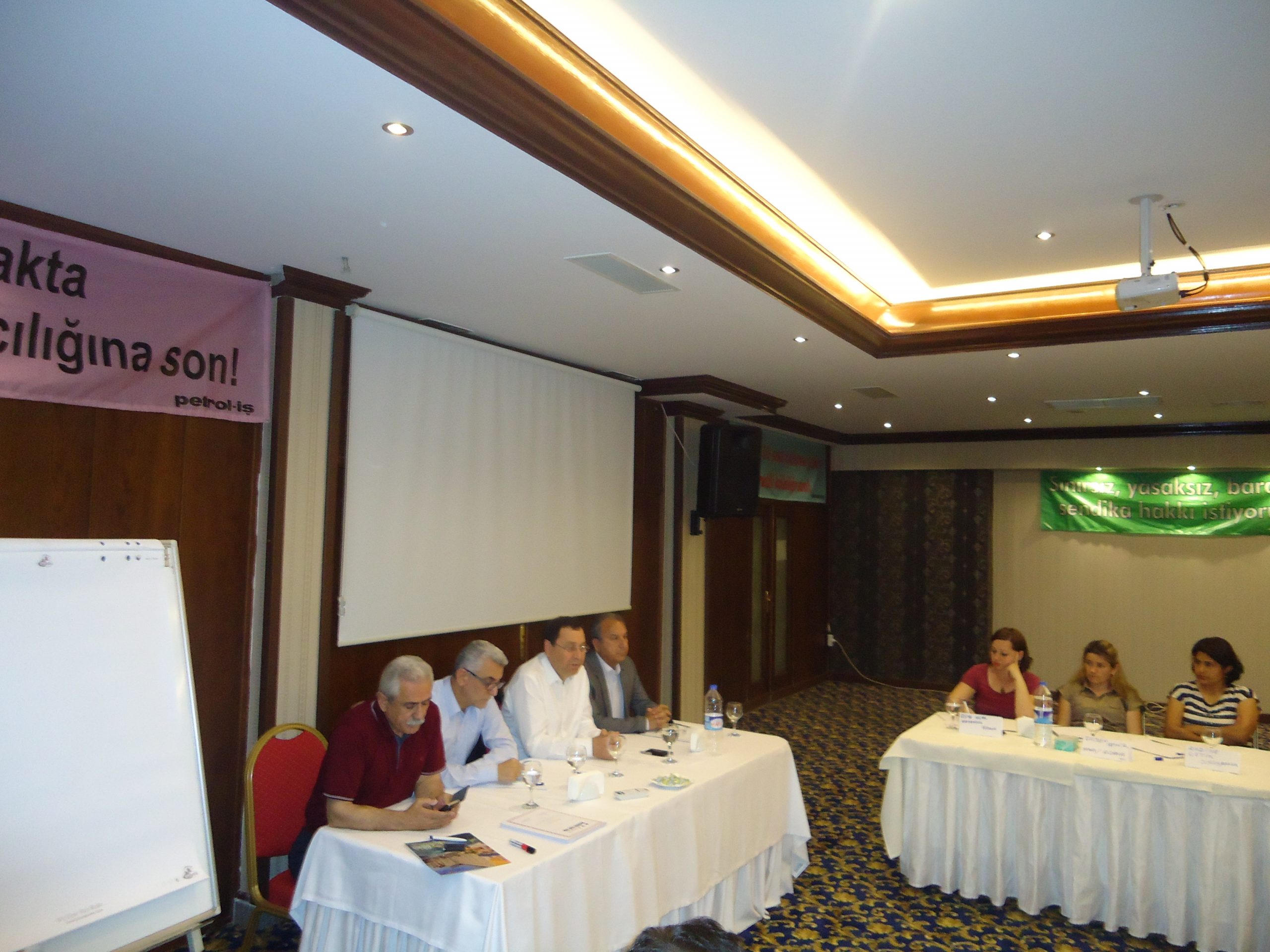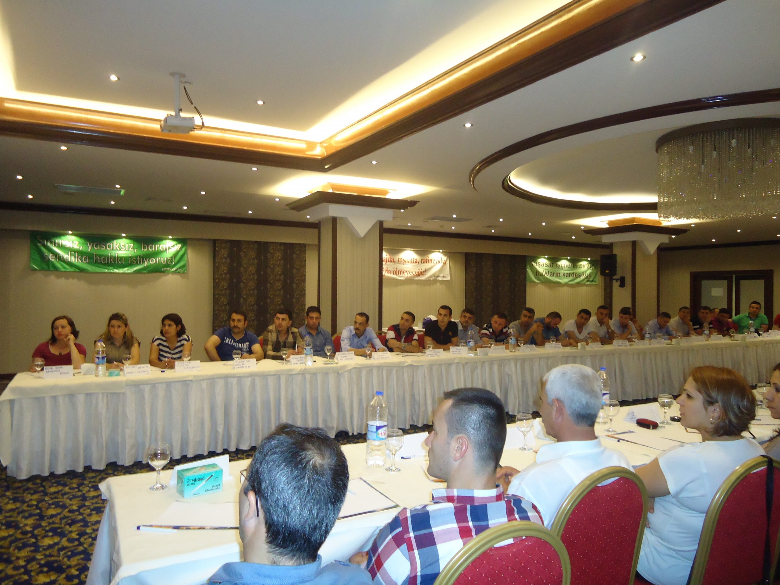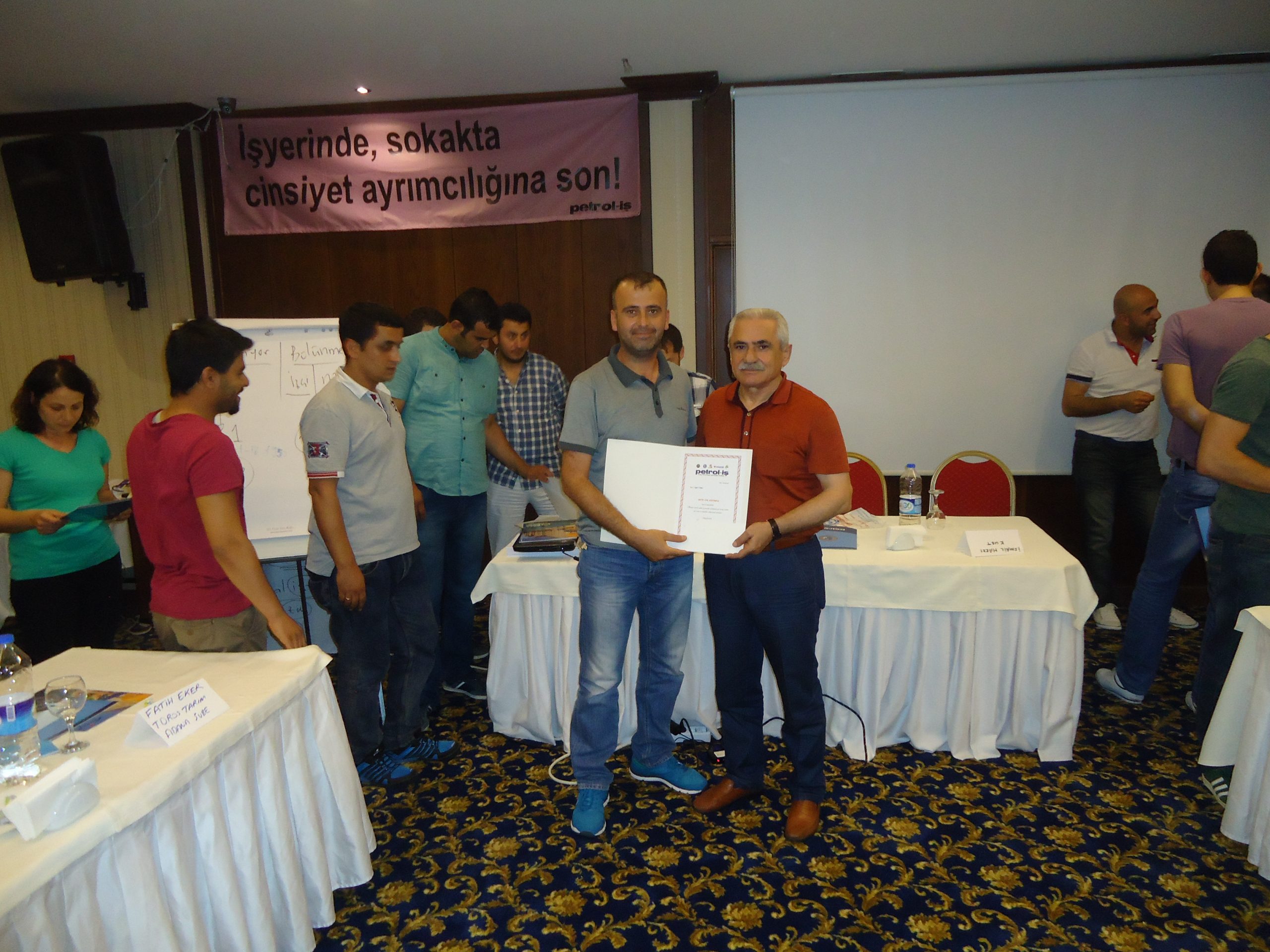 Misafir olarak katkı sunan dostlarımızdan birisi çok uzun yıllardır ortak eğitim yaptığımız Kıbrıs Devrimci İşçi Sendikaları Federasyonu DEV-İŞ genel başkanı Mehmet Seyis’ti. Mehmet Başkan, Kıbrıs yasalarını, Kıbrıslı işçilerin mücadelelerini ayrıntılı olarak aktararak üyelerimizin farklı bir sendikal yapı ile tanışmalarını sağladı. Üyelerimiz böylelikle Kıbrıslı işçilerin artılarını eksilerini görebildiler.