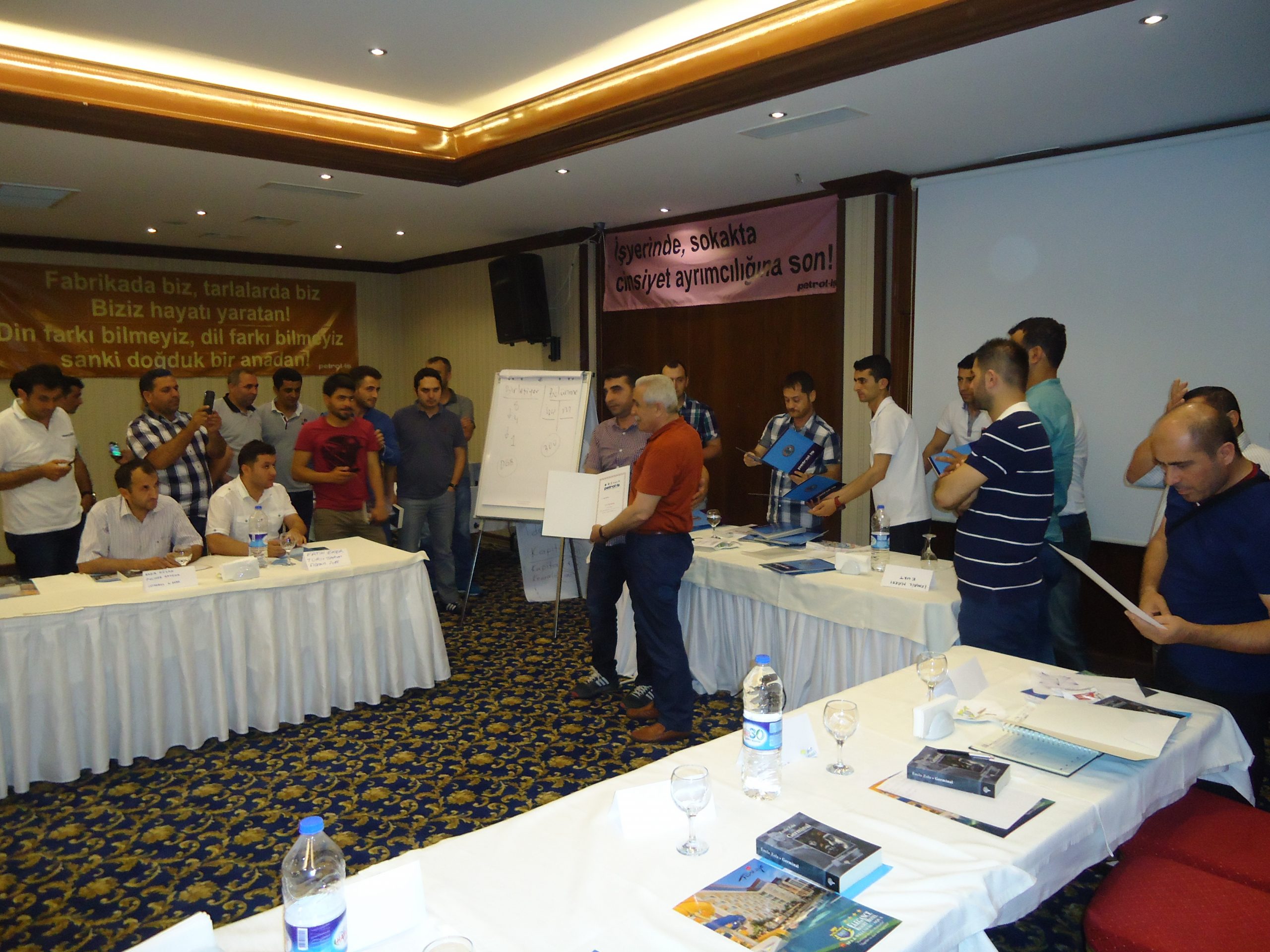 Aktif bir üye nasıl olmalıdır, müteahhit ve taşeron işçiler nasıl üye yapılabilir, bir miting tertiplemek için nelere dikkat etmek gereklidir, farklı sendikalarla ve demokratik kitle örgütleriyle nasıl bir ilişki kurulmalıdır ve son olarak siyasi partilerden işçi sınıfı olarak neler talep edilmeli ve bu taleplerin ne şekilde takipçisi olunmalıdır gibi sorular etrafında çok ayrıntılı grup çalışmaları yapıldı. İkinci kademede ise işin içine bir parça yarışma ruhu da katılan konularda tartışmalar yapıldı. Bu konular etrafında oluşturulan bilgiye ulaşma süreci, katılımcıların tecrübesinde büyük bir sıçrama sağlamaktadır.