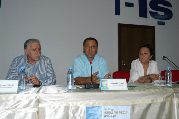 Beş yıl aradan sonra emeğin kenti Aliağa’da tekrar adına ve ruhuna kavuşan şenliklerin hazırlanmasında ve yürütülmesinde emeği geçen herkese teşekkür ediyoruz. Şube olarak gerek programın oluşturulmasında, gerekse yürütülmesinde aktif olarak yer aldık. Aliağa Emek ve Barış Şenlikleri katılımcıların kortej eşliğinde yürüyüşü ile başladı. Yürüyüşe Şube yönetici ve temsilcilerinin yanı sıra Sendikamız Genel Başkanı Mustafa ÖZTAŞKIN ve Genel Mali Sekreter İbrahim DOĞANGÜL de katıldılar. Cumhuriyet meydanındaki açılış konuşmalarından sonra Sendikamız Halk Oyunları Ekibi bir gösteri sundu. Büyük beğeni toplayan halk oyunları ekibimiz coşkuyla alkışlandı. Aynı gün Sendikamız Konferans salonunda, Sendikamız eğitimcilerinden İsmail Hakkı KURT “Kriz ve Sendikalar” konulu bir konferans verdi. Şenliklerin ikinci gününde 15 Ağustos Cumartesi günü Sendikamız iki önemli panele ev sahipliği yaptı. Bunlardan ilki, İbrahim DOĞANGÜL’ün yönettiği “Küresel Kapitalizmin Kıskacında Türkiye” konulu panel idi. Kendi alanlarında, ülkemizin en yetkin bilim insanlarının katıldığı paneli çok sayıda katılımcı ilgiyle dinledi. “Krizin İşçiler Üzerindeki Etkileri” konulu panele sendikamız Genel Başkanı Mustafa ÖZTAŞKIN, DİSK Genel Başkanı Süleyman ÇELEBİ ve Tüm-Bel Sen Genel Başkanı Vicdan BAYKARA katıldı. Ayrıca Cumartesi akşamı Sendikamız Tiyatro Topluluğu Nazım HİKMET’ in “Memleketimden İnsan Manzaraları” eserini Aliağa’ lı tiyatro severlere ikinci kez sundular. Yoğun ve içerik açısından çok zengin etkinliklerle dolu olan 20. Aliağa Emek ve Barış Şenlikleri Edip Akbayram’ ın konseriyle sona erdi.