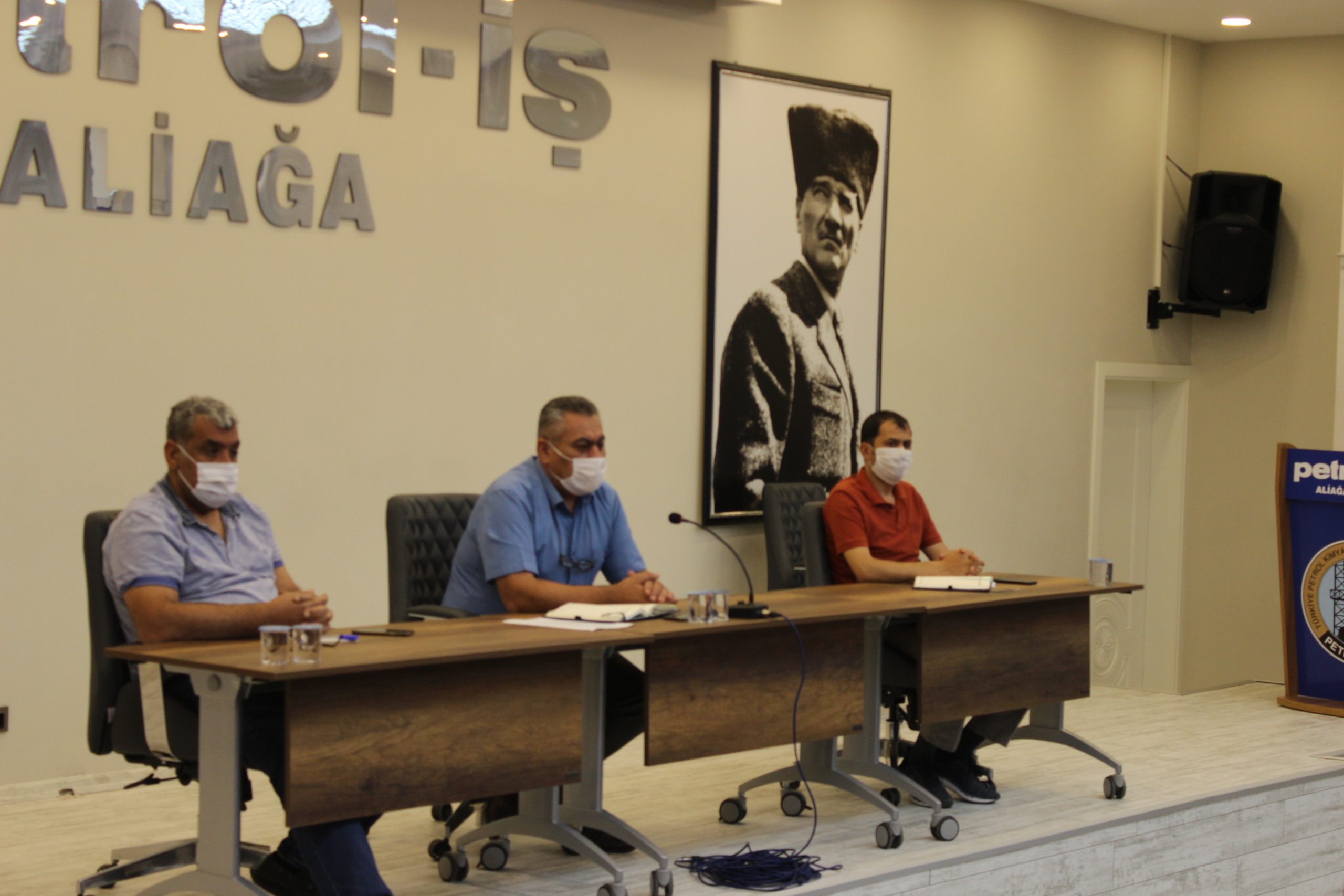 Değerli arkadaşlar, biliyoruz ki bu süre içerisinde çok yorulduk. Zamanımızdan, ailemizden birçok fedakarlık yaparak bu noktaya geldik. Bu süreçte tarihinde ilk defa Tüpraş İzmir Rafinerisi üretimini tamamen durdurarak Kısa Çalışma Ödeneğine başvurmuştur. Yine Ravago Petrokimya işyerimizde kısmi aralıklarla üretimi durdurarak, Kısa Çalışma Ödeneğine başvurmuştur. Bu süreçte üyelerimiz herhangi bir hak kaybı yaşamamıştır. Ama bu süreçte işverenlerin krizi nasıl fırsata çevirmeye çalıştıklarını da hep birlikte görmüş olduk. Yapılan bu kriz fırsatçılığı hesabının da sorulacağı gün yakındır.
