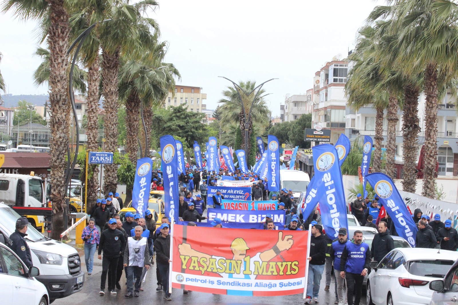 Demokrasi Meydanında yapılan basın açıklaması boyunca emekçiler, “Biz çocuklarımıza onurlu bir gelecek bırakacağız, ya siz?”, “Kurtuluş yok tek başına ya hep beraber ya hiçbirimiz” ve “Hak verilmez alınır, zafer sokakta kazanılır” gibi sloganlarla taleplerini haykırdı. Aliağa’daki 1 Mayıs kutlamaları, sınıf dayanışması ve mücadele ruhuyla dolu bir atmosfer sonrasında Gündoğdu Meydanında devam etti.