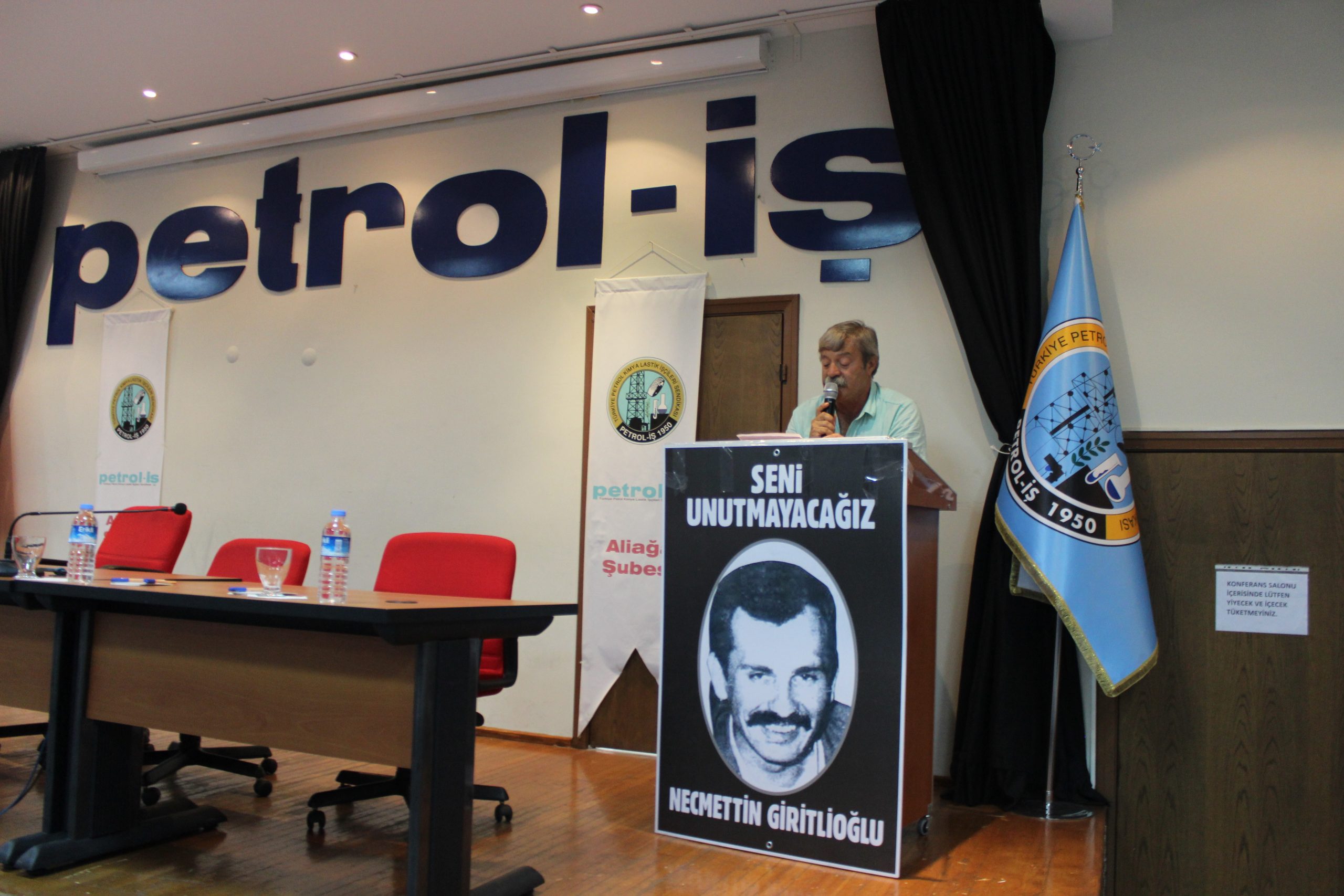 Aliağa Şubemiz, Aliağa Rafinerisin’de faaliyet yürüten Rus firmasına ait ve Yapı-Yol İş Sendikası üyesi işçiler grevdeyken işverenin kiralık katili tarafından 22 Ağustos 1970 tarihinde katledilen Yapı Yol-İş Sendikası Genel Başkanı Necmettin Giritlioğlu’nu katledilişinin 47.Yıl dönümü anısına Aliağa Emek ve Demokrasi Platformu Bileşenleri olarak 22 Ağustos 2017 tarihinde bir panel düzenlendi. Panelde Türkiyede sendikal hareketin değerlendimeleri yapıldı.