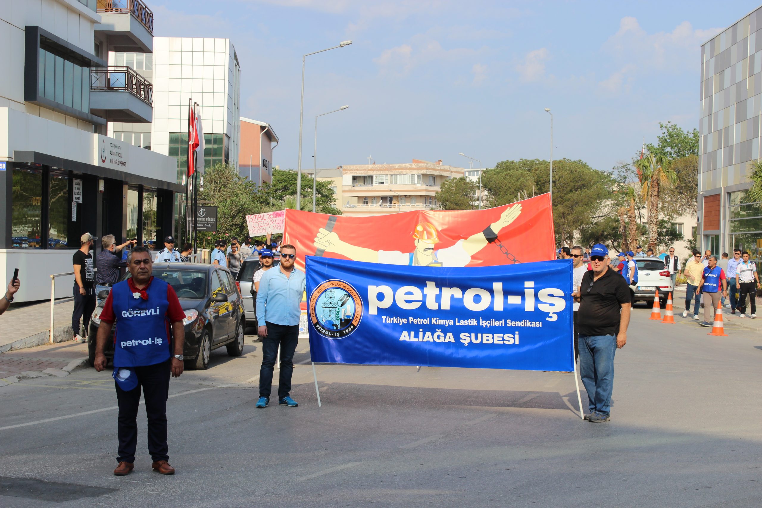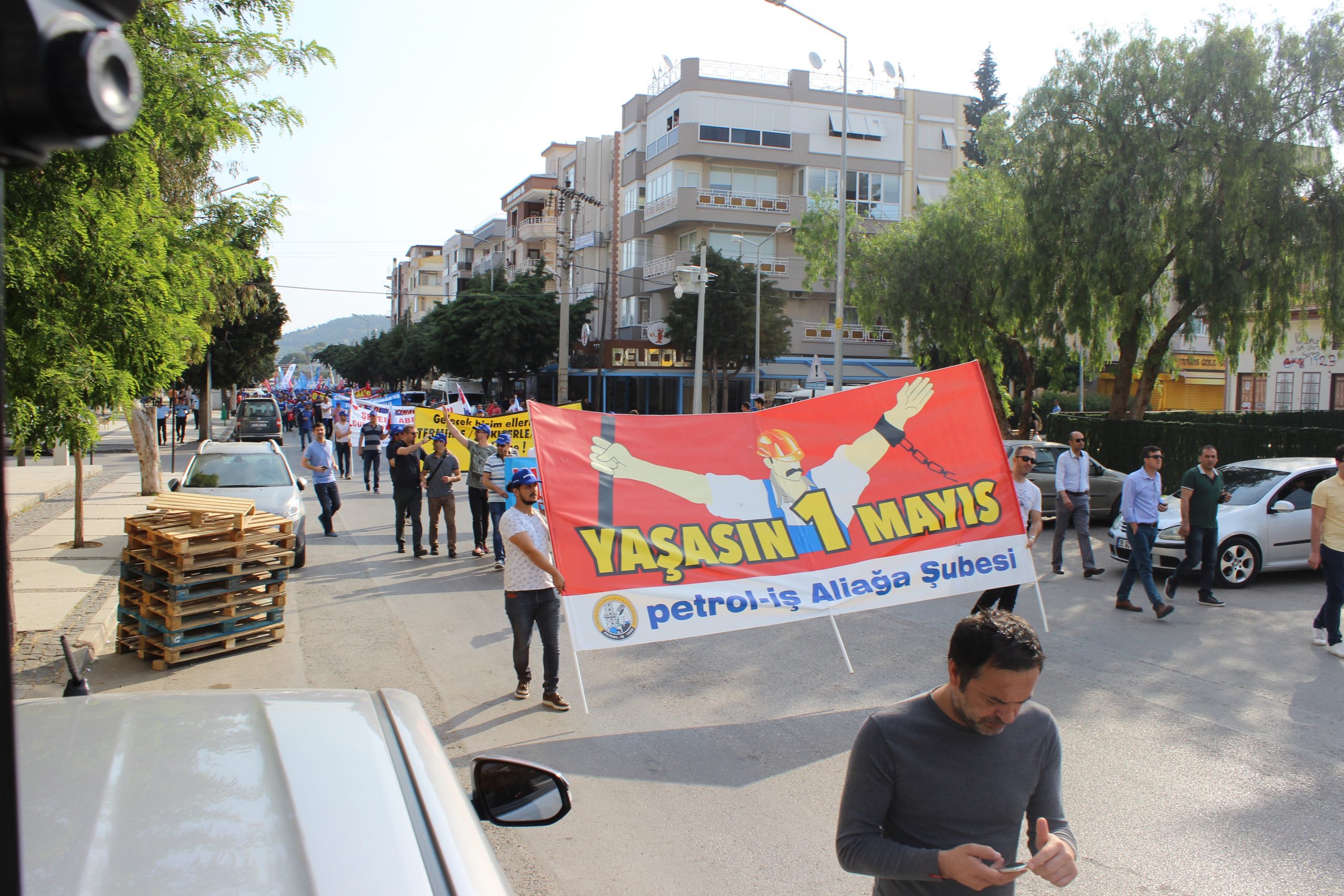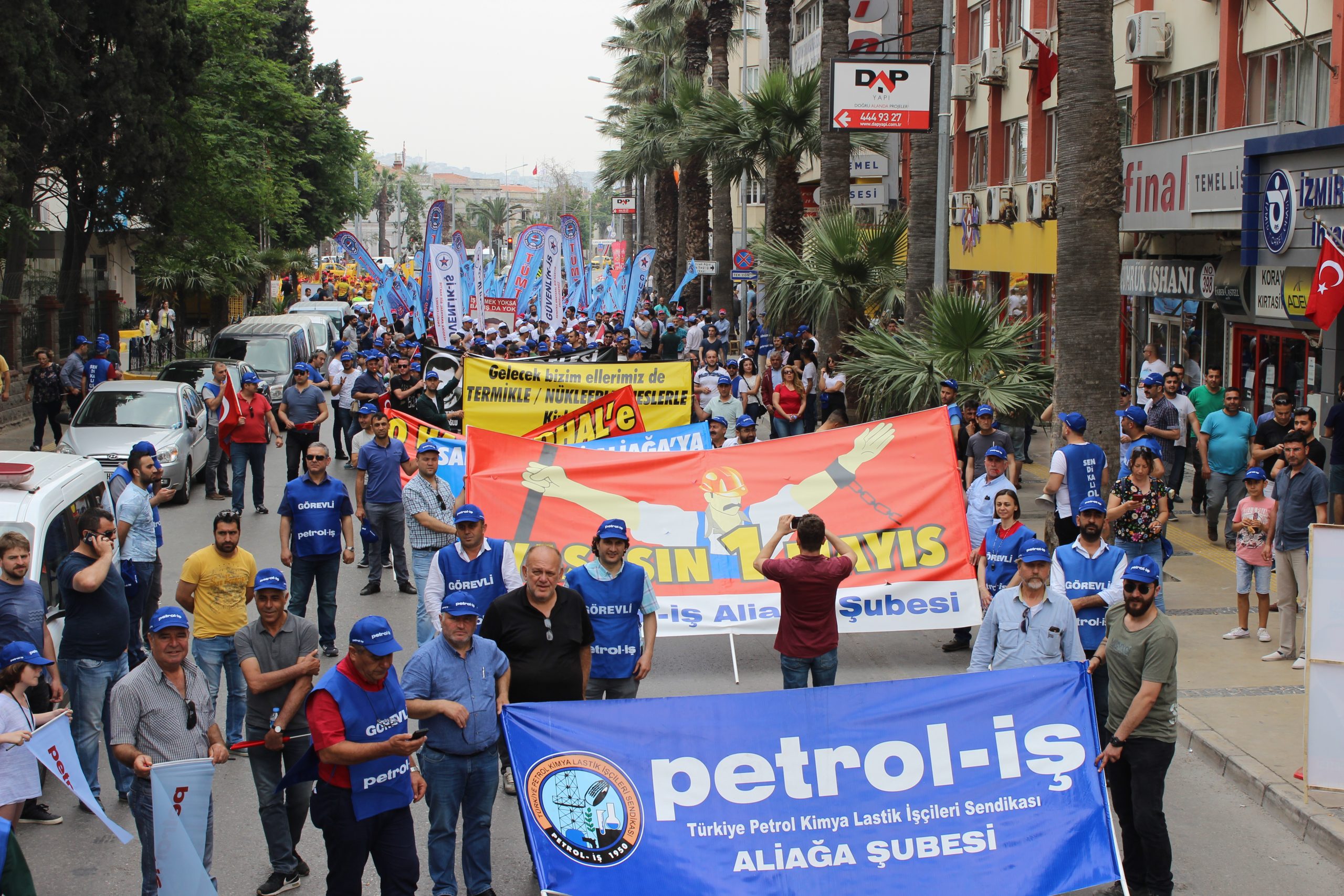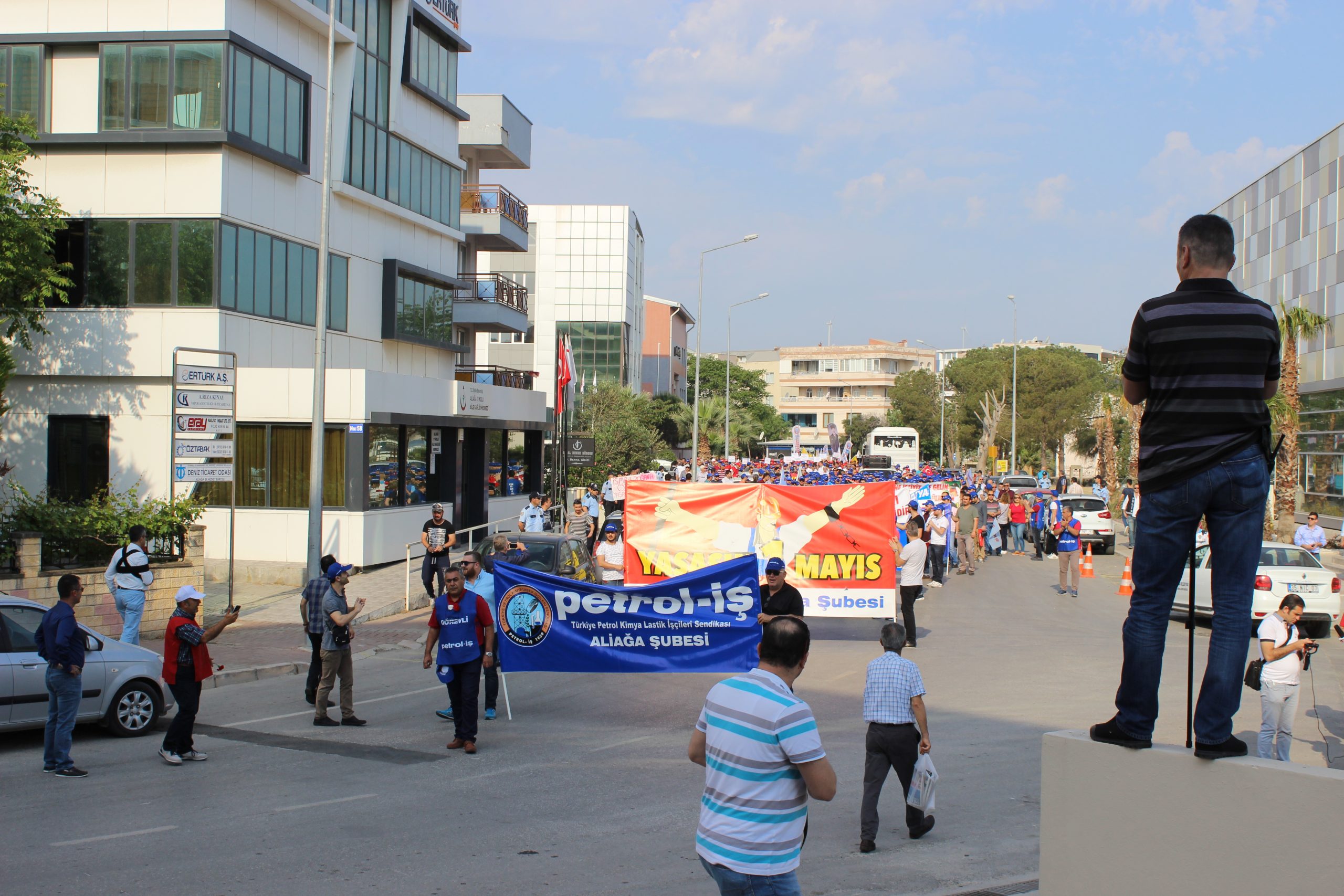 Aliağa Şubemiz örgütlü olduğu işyerlerinde başlayan kutlamalar,vardiyadan çıkan üyelerimizin ve Emek ve Demokrasi Platformu bileşenleriyle Aliağa Şube önünde buluşarak devam etti. ‘-Yaşasın 1 Mayıs, İşte 1 Mayıs Alanlardayız, sloganlarıyla Petrol-iş önünden başlayan kortej,Aliağa esnafının ve vatandaşların alkışlarıyla Demokrasi Meydanı’na kadar devam etti.