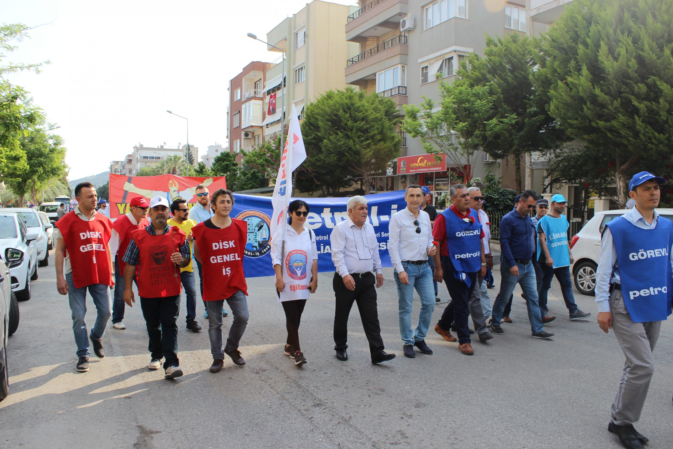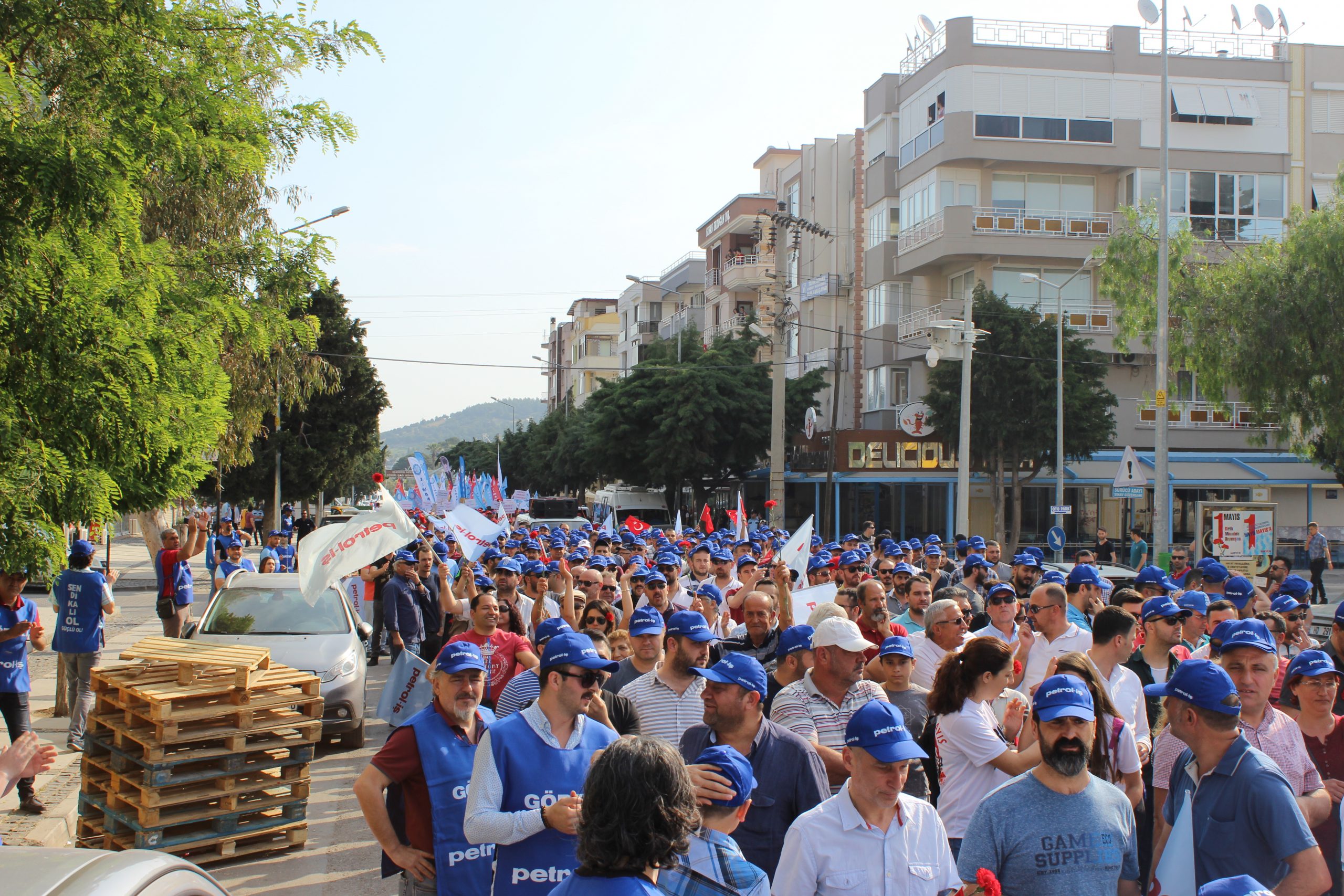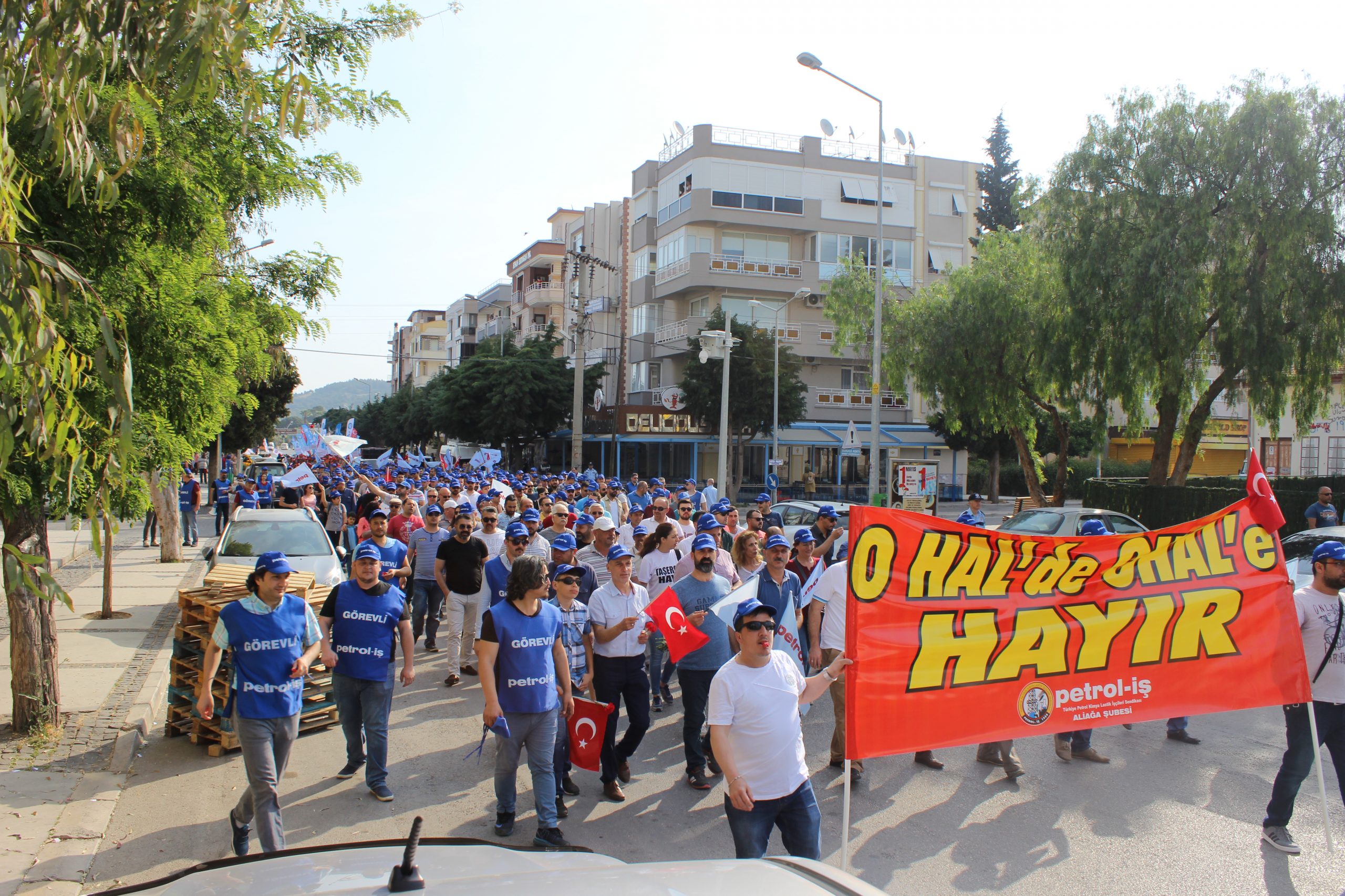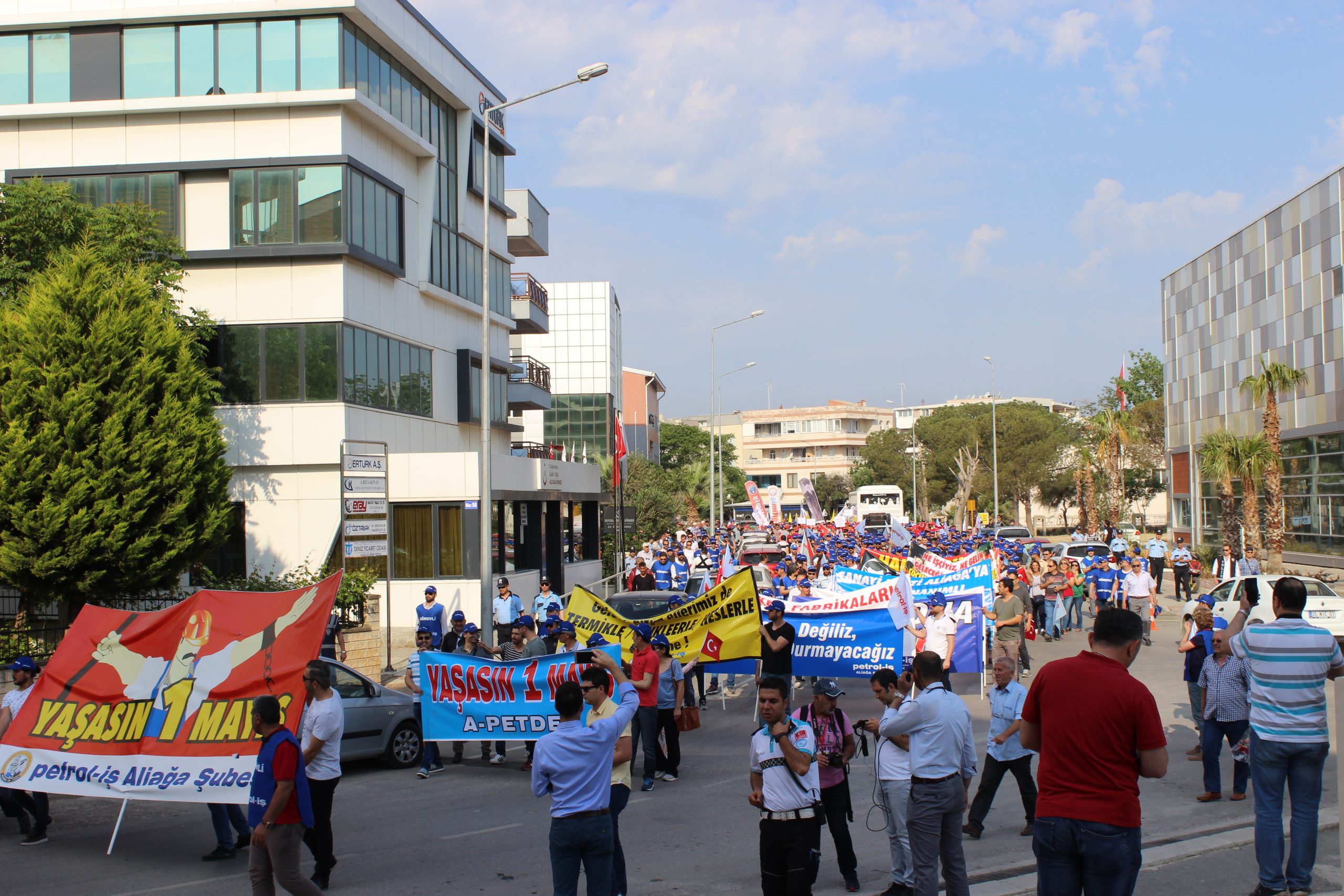 Aliağa Şubemiz örgütlü olduğu işyerlerinde başlayan kutlamalar,vardiyadan çıkan üyelerimizin ve Emek ve Demokrasi Platformu bileşenleriyle Aliağa Şube önünde buluşarak devam etti. ‘-Yaşasın 1 Mayıs, İşte 1 Mayıs Alanlardayız, sloganlarıyla Petrol-iş önünden başlayan kortej,Aliağa esnafının ve vatandaşların alkışlarıyla Demokrasi Meydanı’na kadar devam etti.