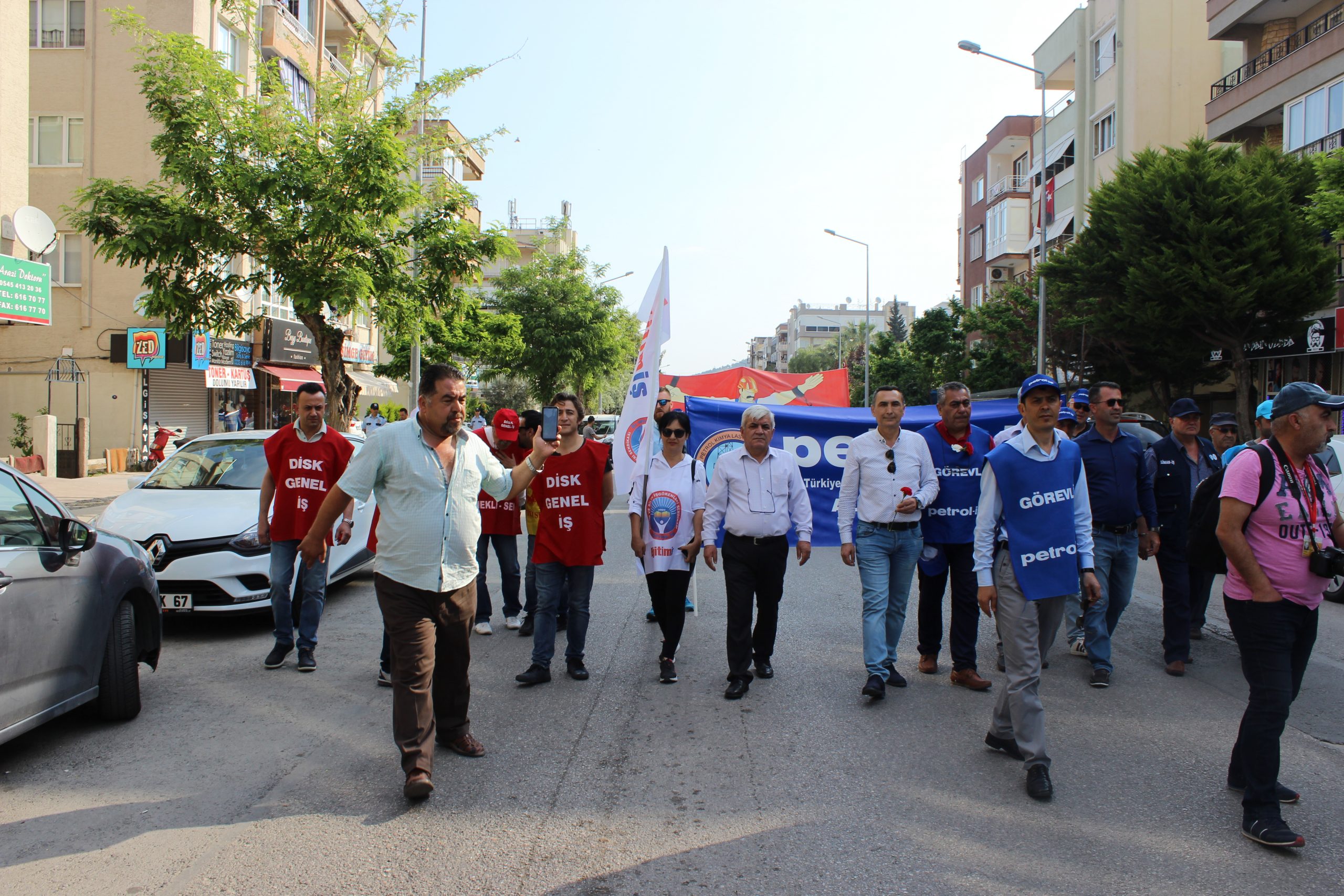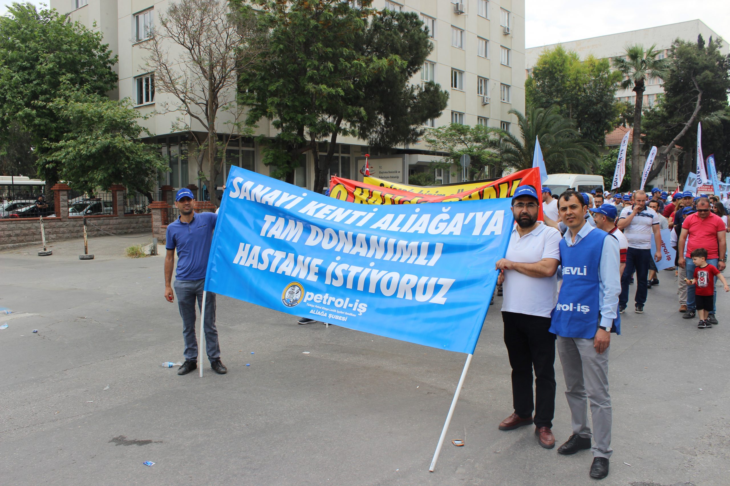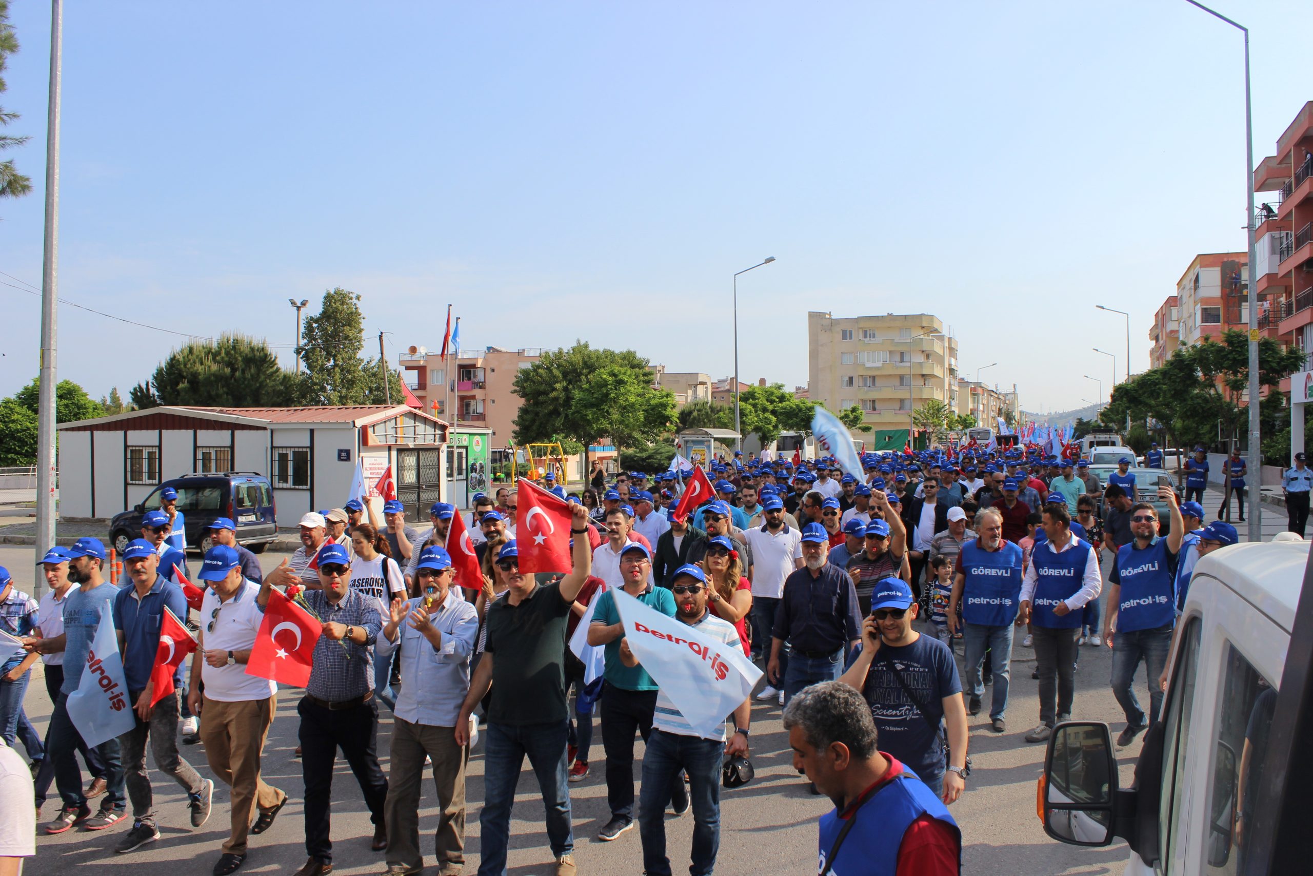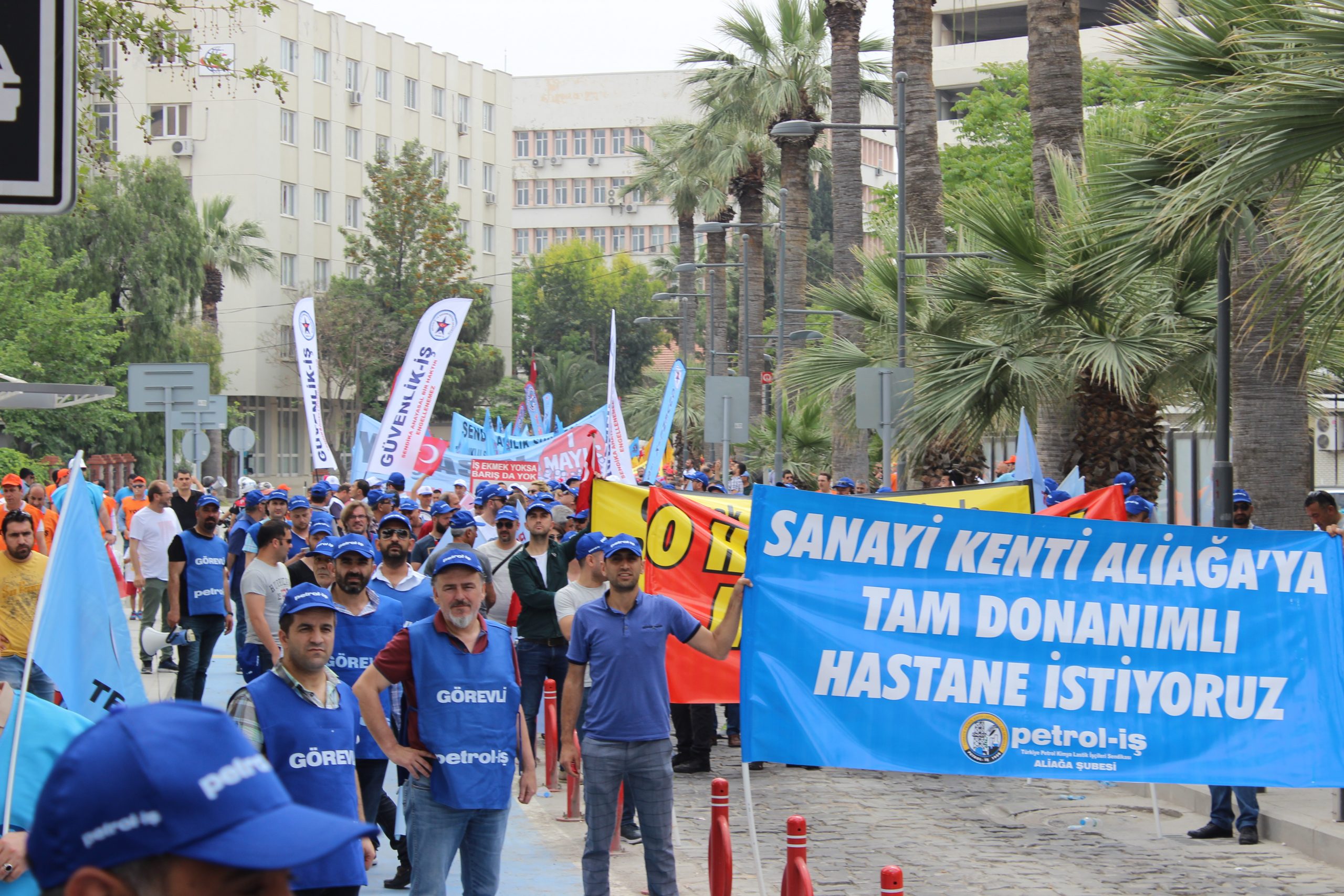 Aliağa Şubemiz örgütlü olduğu işyerlerinde başlayan kutlamalar,vardiyadan çıkan üyelerimizin ve Emek ve Demokrasi Platformu bileşenleriyle Aliağa Şube önünde buluşarak devam etti. ‘-Yaşasın 1 Mayıs, İşte 1 Mayıs Alanlardayız, sloganlarıyla Petrol-iş önünden başlayan kortej,Aliağa esnafının ve vatandaşların alkışlarıyla Demokrasi Meydanı’na kadar devam etti.