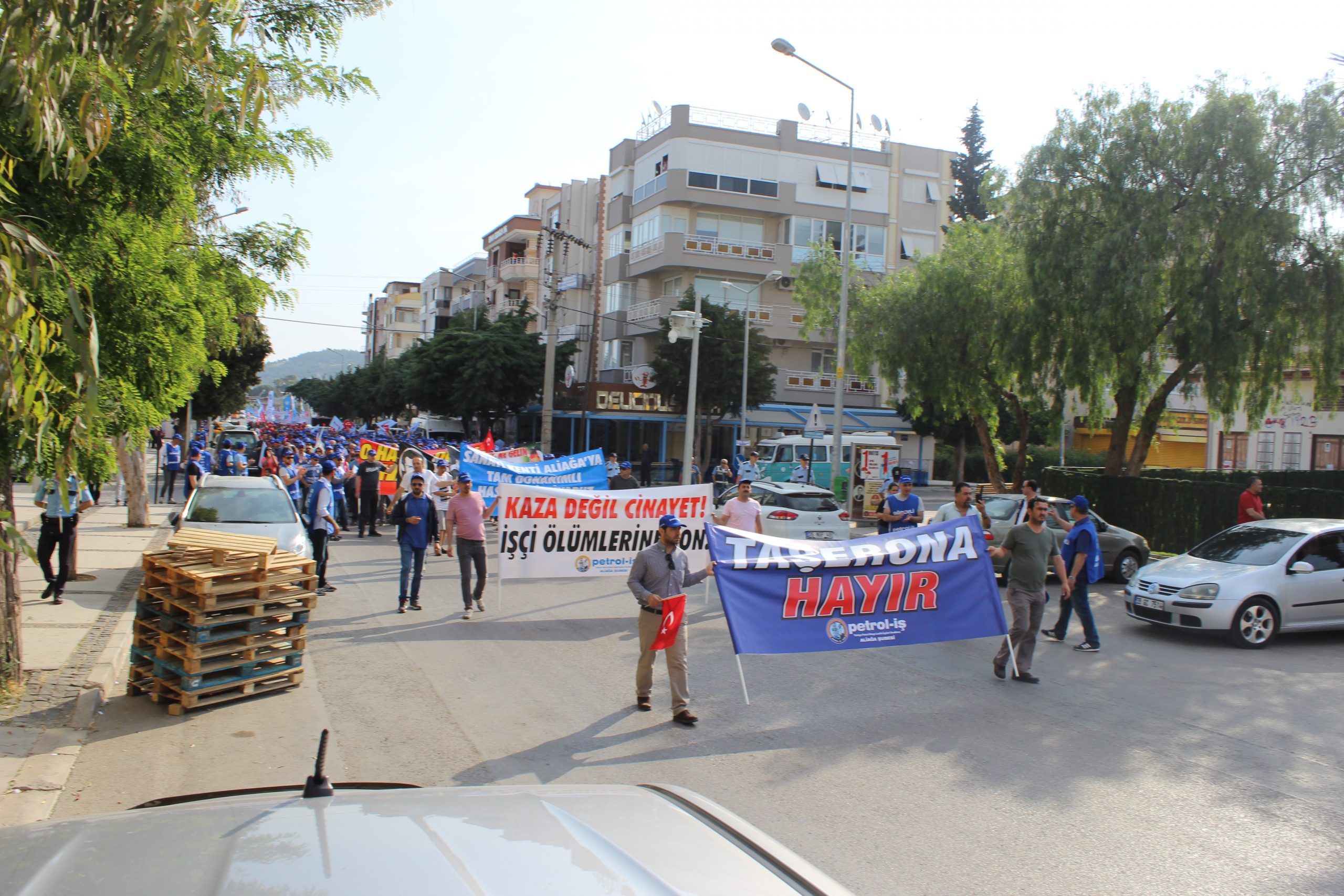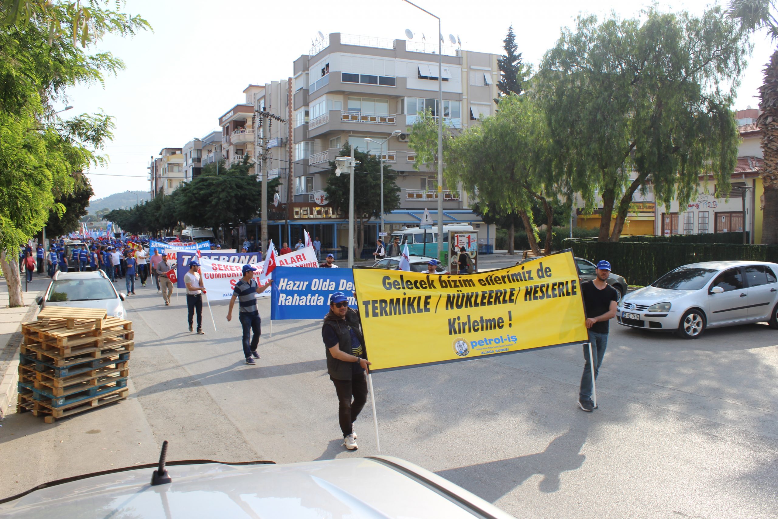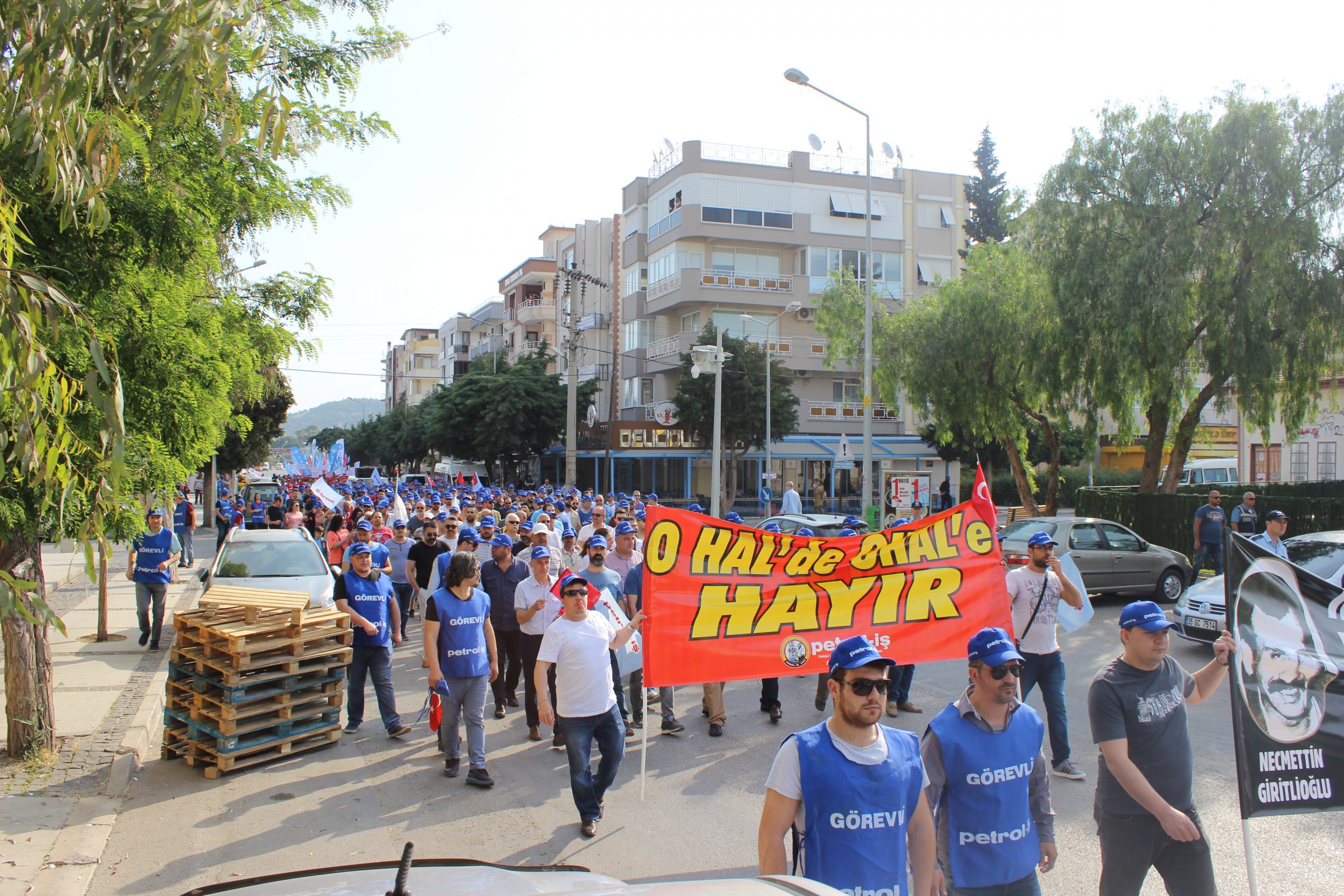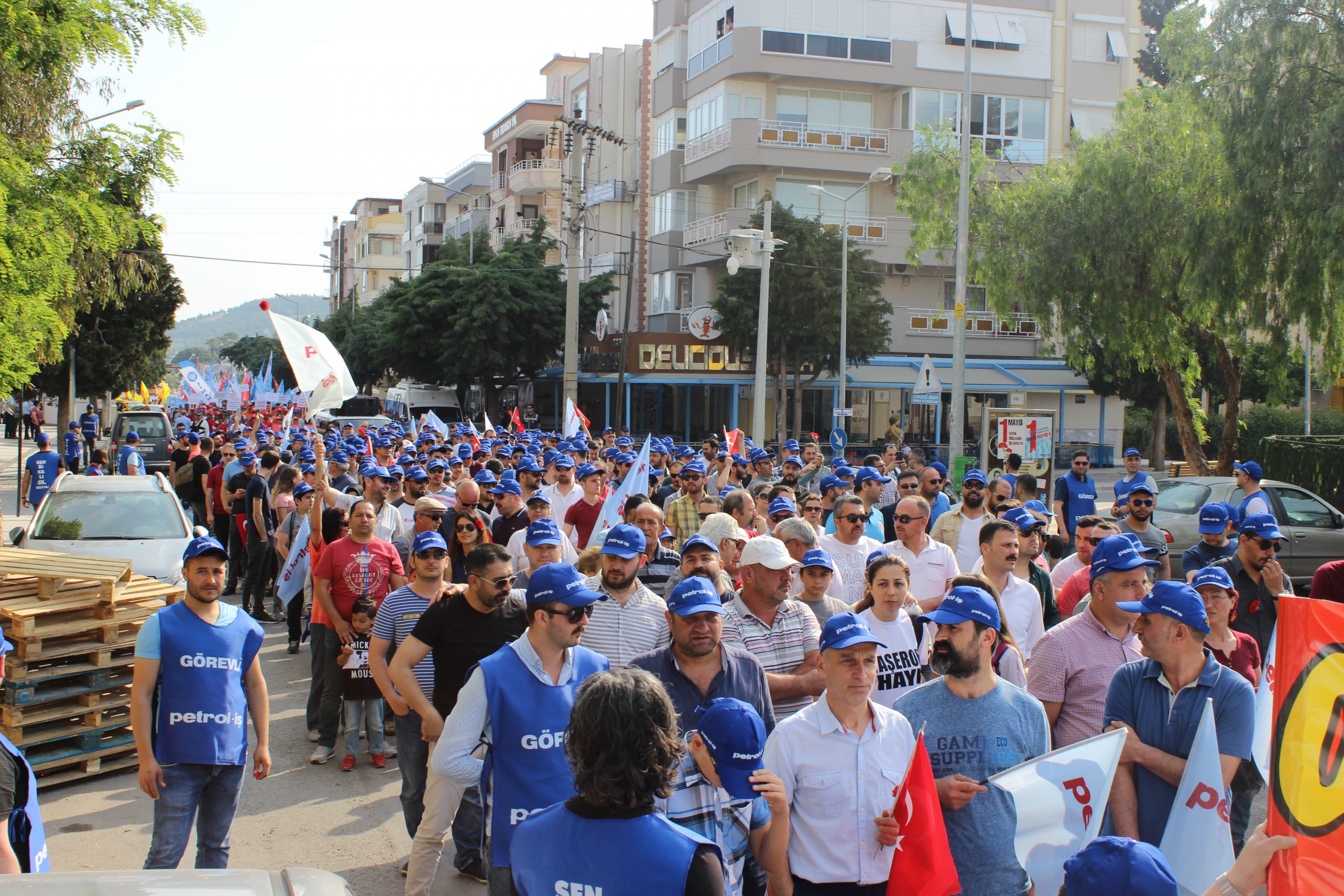 Aliağa Şubemiz örgütlü olduğu işyerlerinde başlayan kutlamalar,vardiyadan çıkan üyelerimizin ve Emek ve Demokrasi Platformu bileşenleriyle Aliağa Şube önünde buluşarak devam etti. ‘-Yaşasın 1 Mayıs, İşte 1 Mayıs Alanlardayız, sloganlarıyla Petrol-iş önünden başlayan kortej,Aliağa esnafının ve vatandaşların alkışlarıyla Demokrasi Meydanı’na kadar devam etti.
