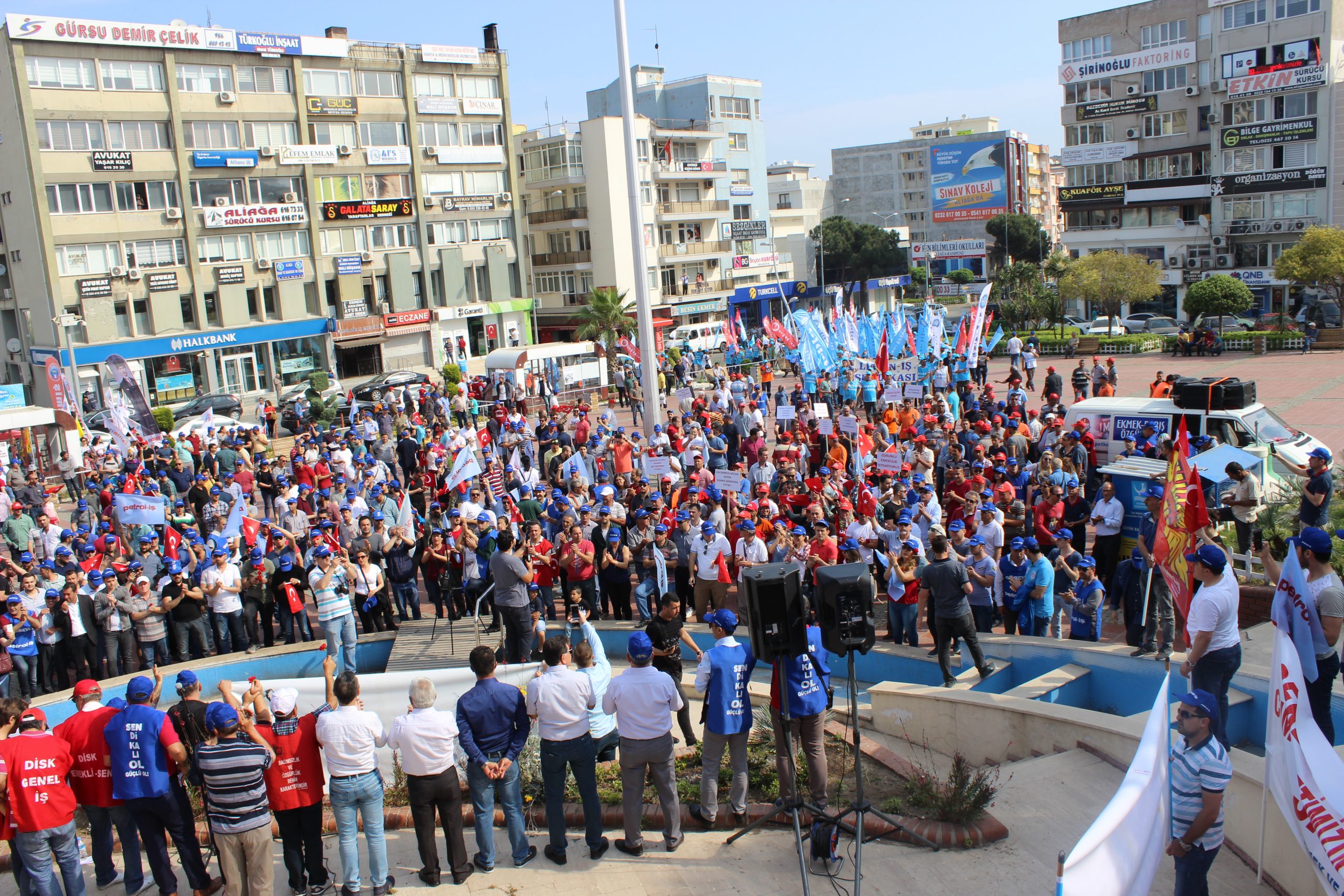 Aliağa Şube Başkanımız Ahmet Oktay;Taşeron çalışma sisteminden,iş cinayetlerine,kıdem tazminatlarına ve işçi sınıfını ilgilendiren birçok konuya değinerek işçi sınıfının birlik ve beraberlik içinde birçok sorunun üstesinden geleceğini belirtti.