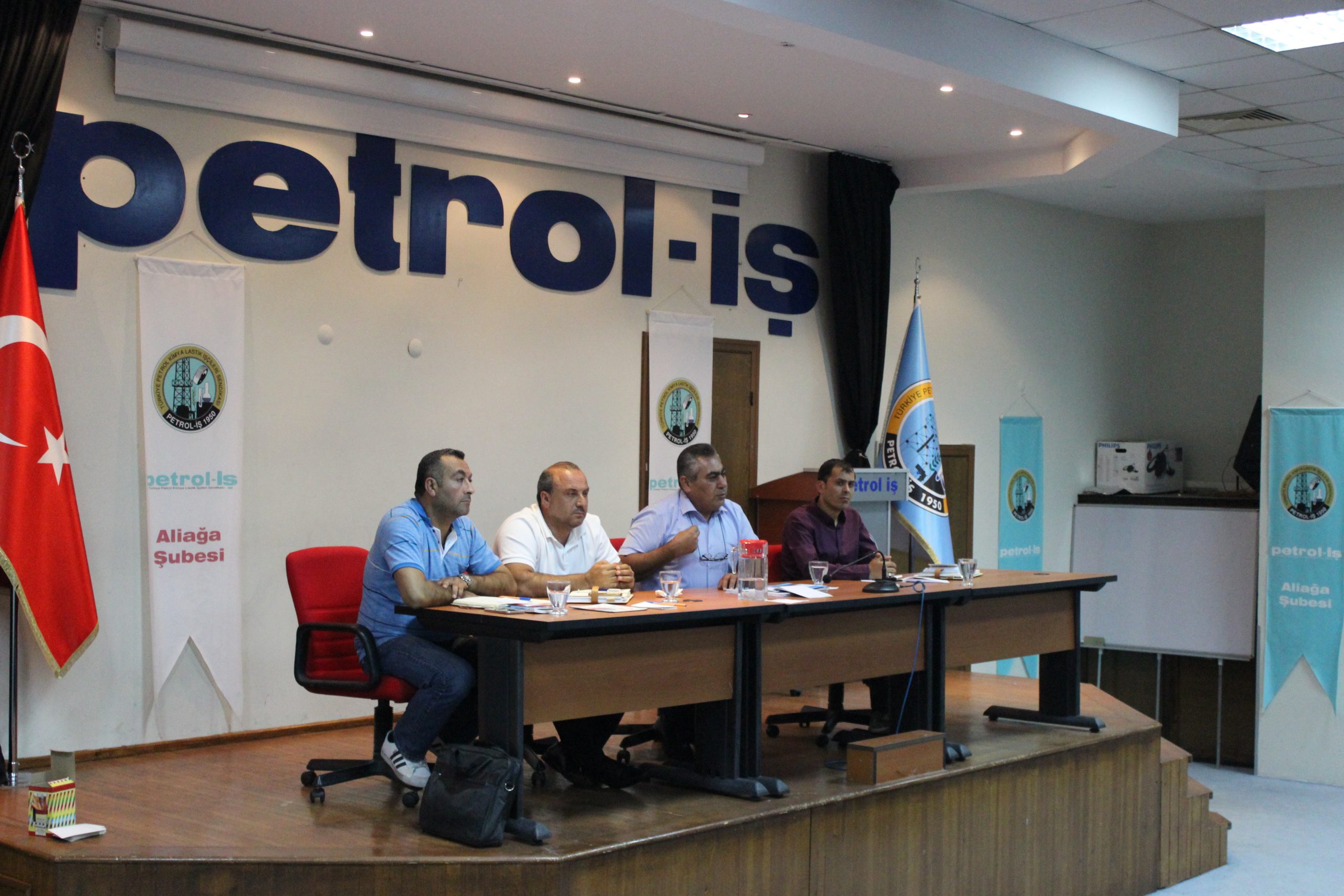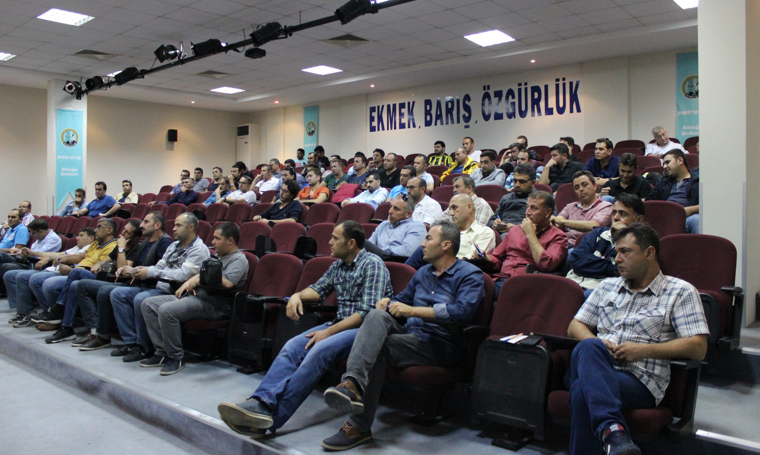 Aliağa Şubemizin örgütlü olduğuTüpraş İzmir Rafinerisi işyerinde çalışan üyelerimizle 29 Eylül Perşembe günü Aliağa Şubemizin Konferans Salonu’nda geniş katılımlı bir toplantı yapıldı.Toplantı esnasında Tüpraş işyerinde yaşanan sorunlar ve 2017-2018 dönemini kapsayacak olan toplu iş sözleşmesi süreci değerlendirildi.