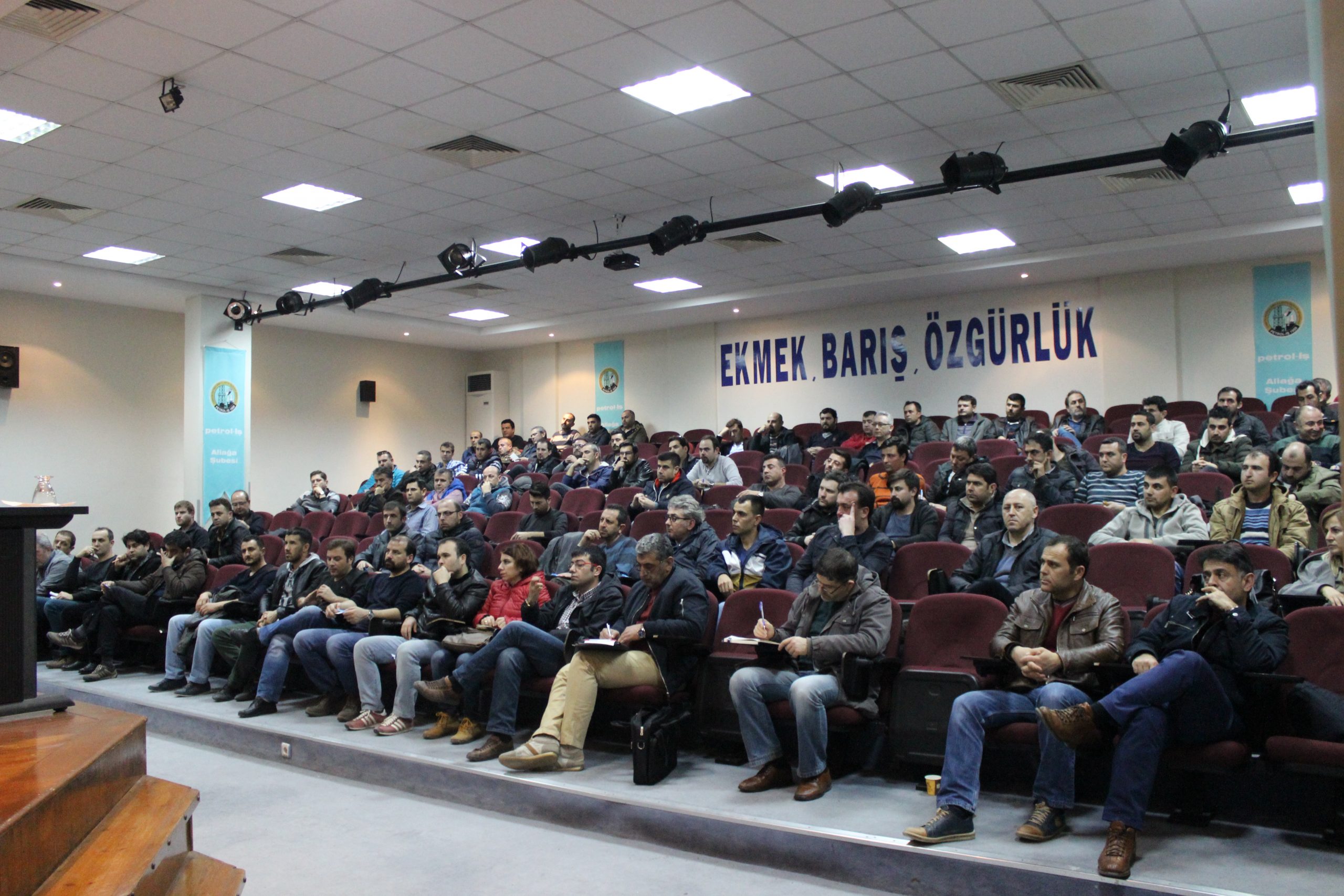 Aliağa Şubemiz 24 Şubat Cuma günü Tüpraş Rafinerisi A.Ş işyerindeki üyelerimizle Aliağa Şubemizin konferans salonumuzda geniş katılımlı bir üye toplantısı yaptı.