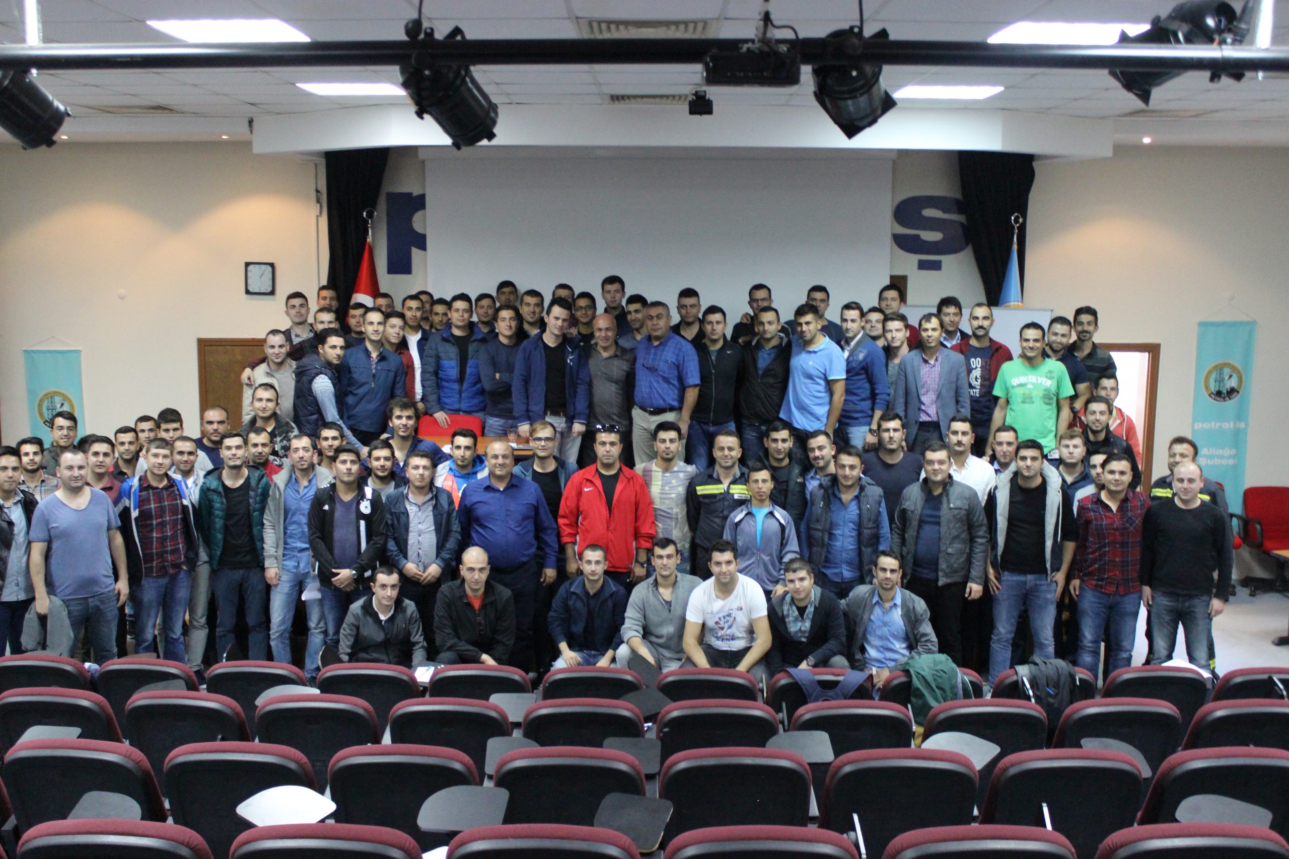 Örgütlü olduğumuz Tüpraş İzmir Rafinerisinde 18 Ekim 2016 tarihinde yeni işbaşı yapan 83 üyemizin üye kayıt işlemleri yapıldıktan sonra, Sendikamız Eğitim Uzmanı İsmail Hakkı Kurt tarafından “Temel Sendikal Konular” başlığı altında eğitim verildi.