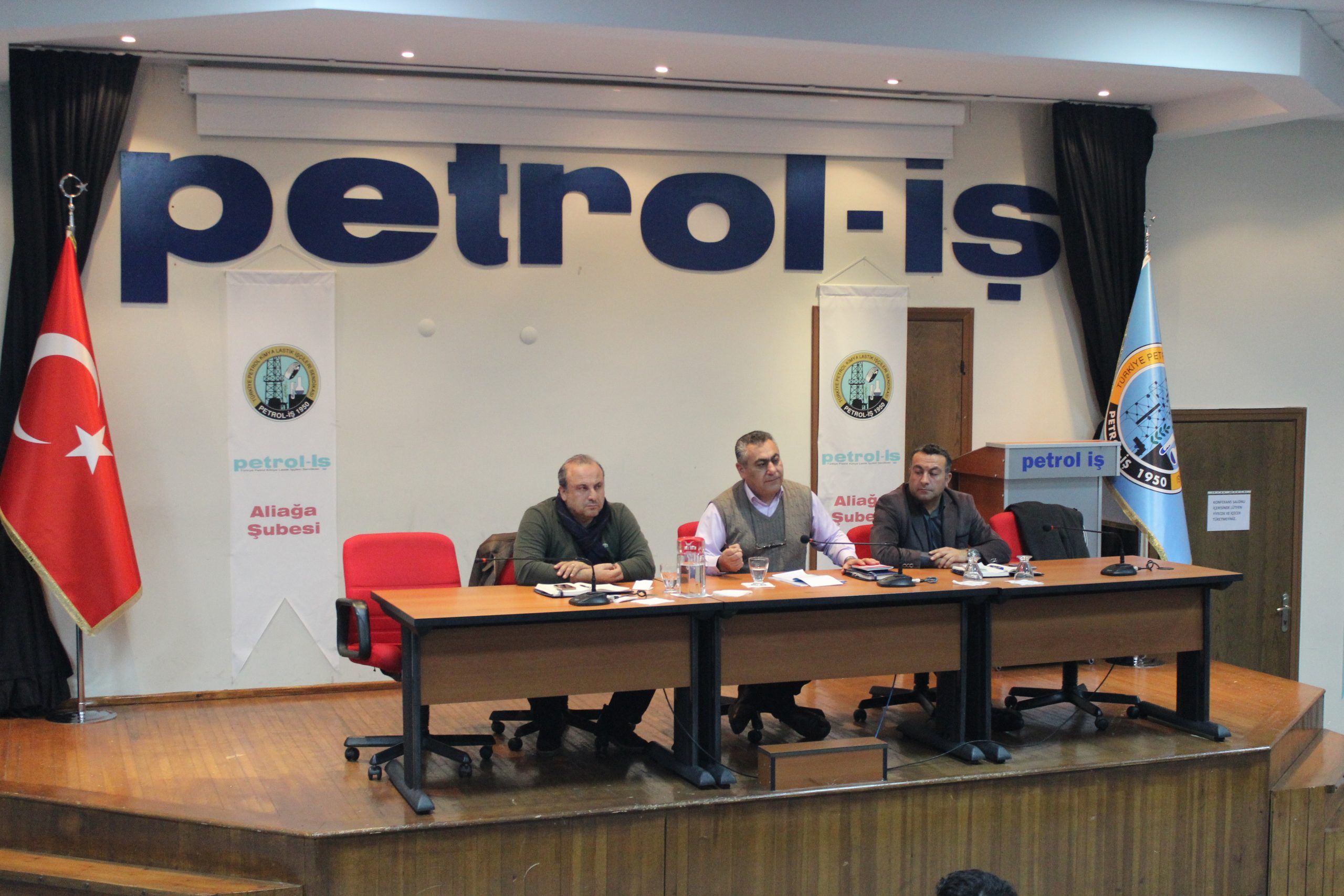 Aliağa Şubemiz kapsamında bulunan Tüpraş işyerimiz için devam eden TİS görüşmeleri ile ilgili değerlendirme toplantısı Şube Başkanımız Ahmet Oktay, Şube Başkan yardımcılarımız, işyeri temsilcilerimiz ve üyelerimizin geniş katılımı ile 27 Ocak Cuma günü şubemizin konferans salonunda yapıldı.